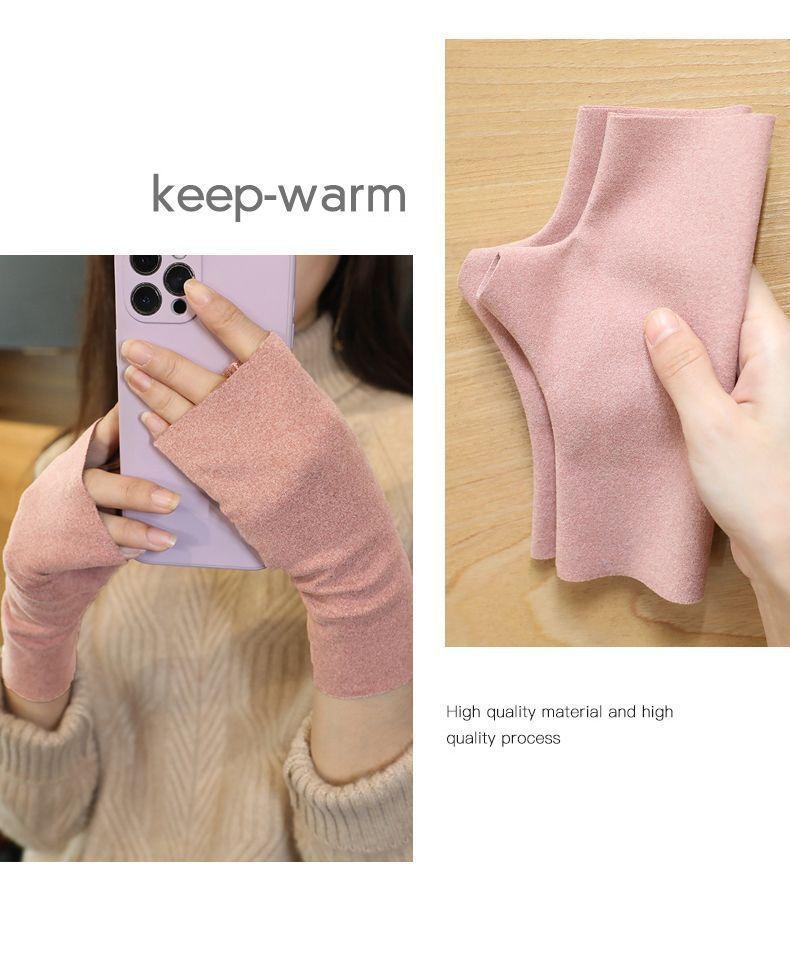 Guantes De Rong de invierno con forro polar, medio dedo, doble cara, cálidos, calefactores, finos, para mecanografía, estudiantes, escritura, dedos abiertos, oficina, cortos