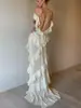 Vestido blanco estilo sal francesa, vestido de gasa con volantes y corte entallado de nicho de moda para mujer