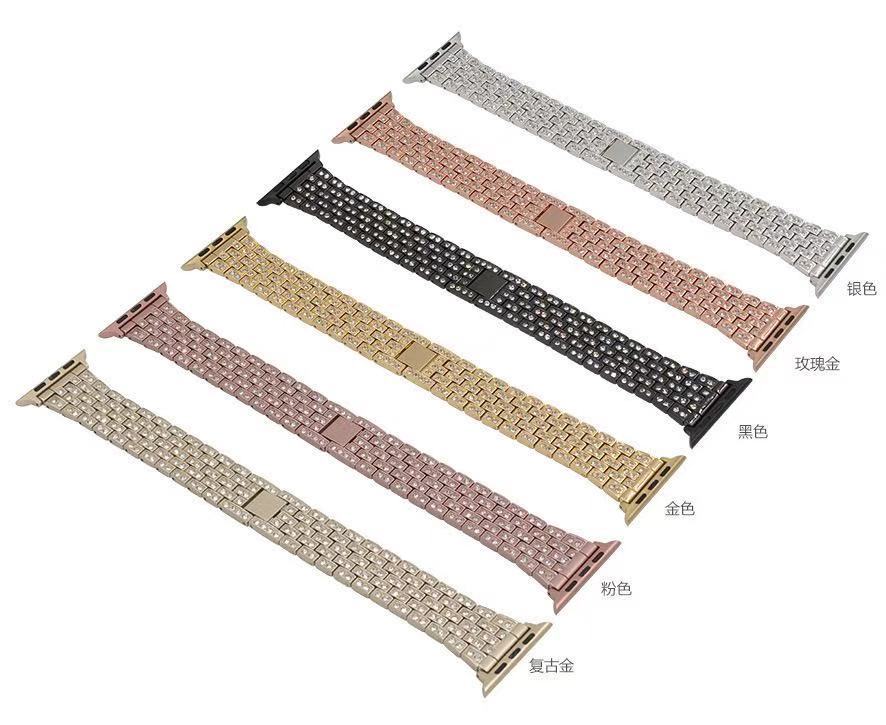 Nombre del producto: Adecuado para Apple watch 4/5/6 generación correa de metal con diamantes correa de diamantes de cinco cuentas con diamantes completos