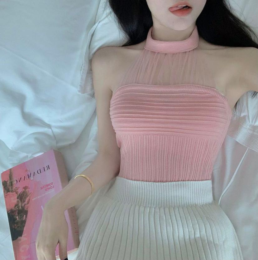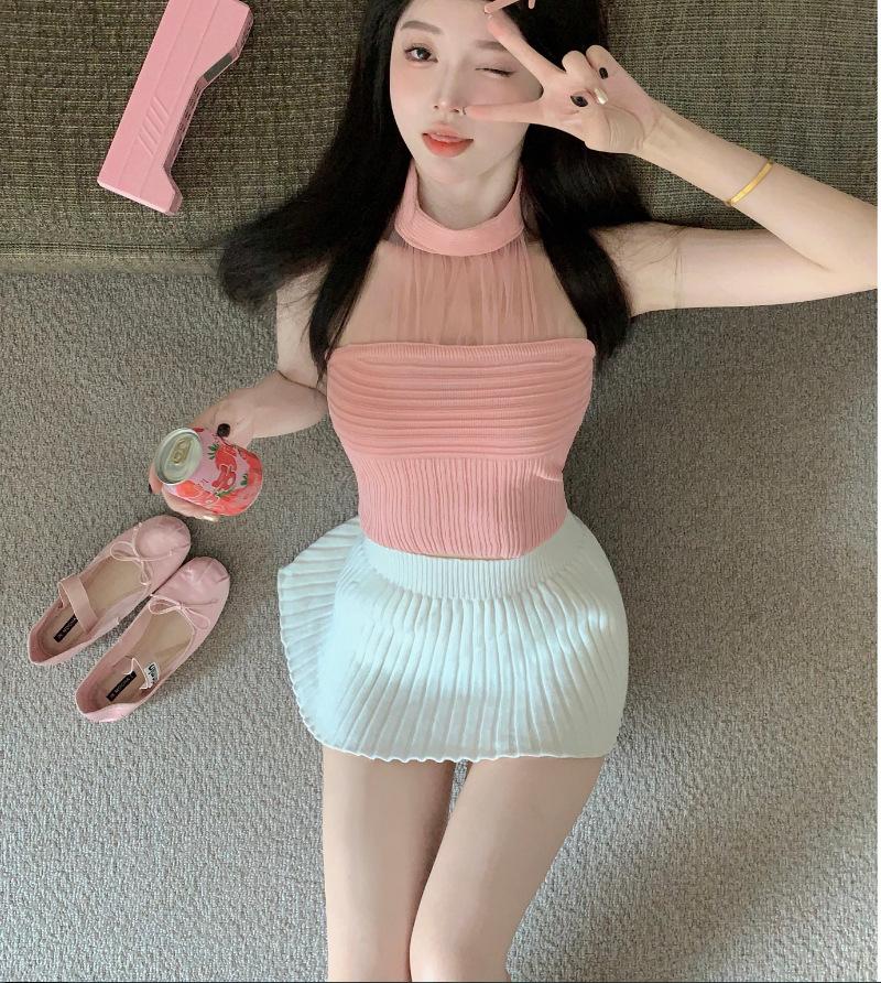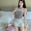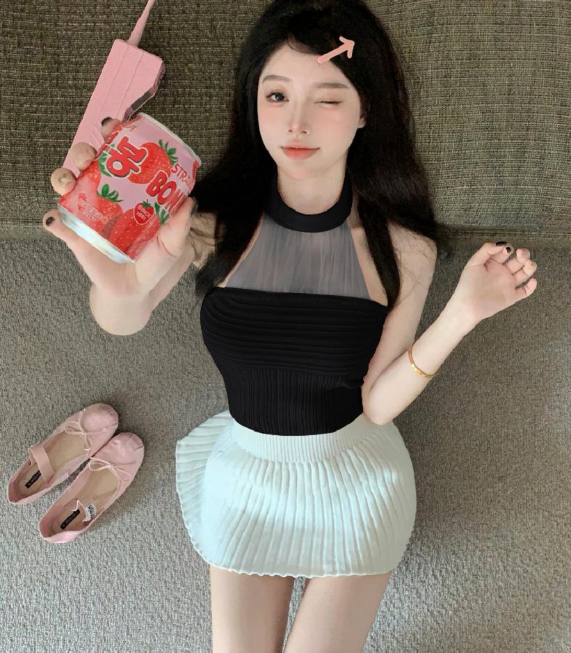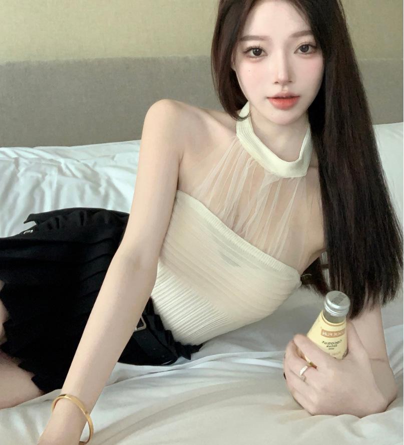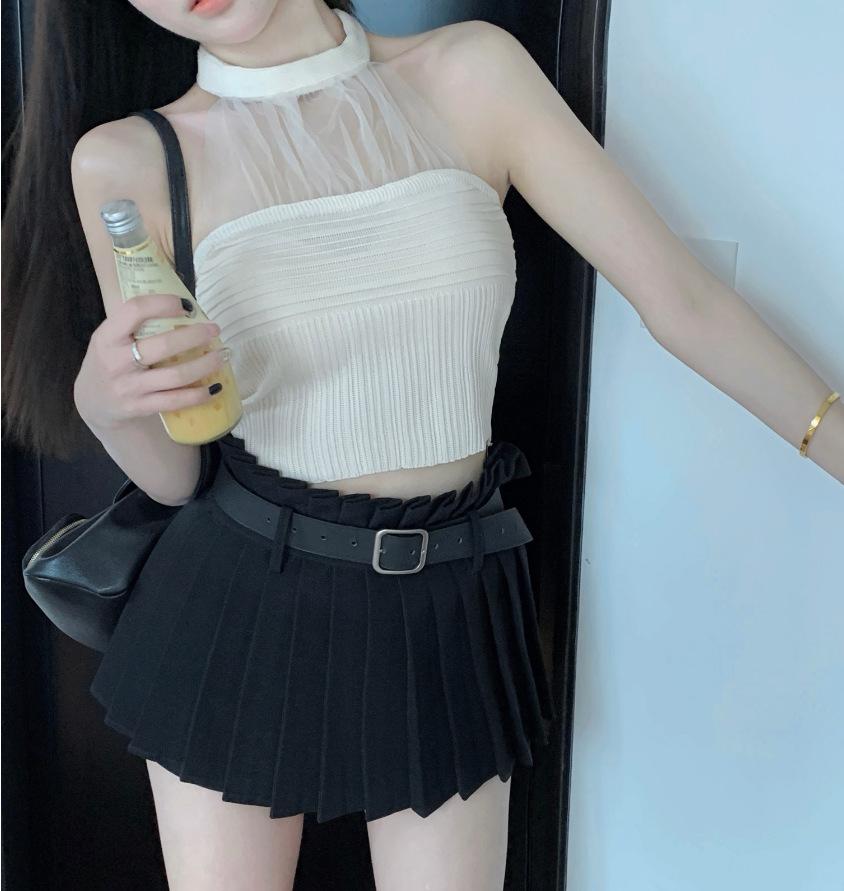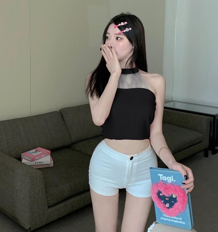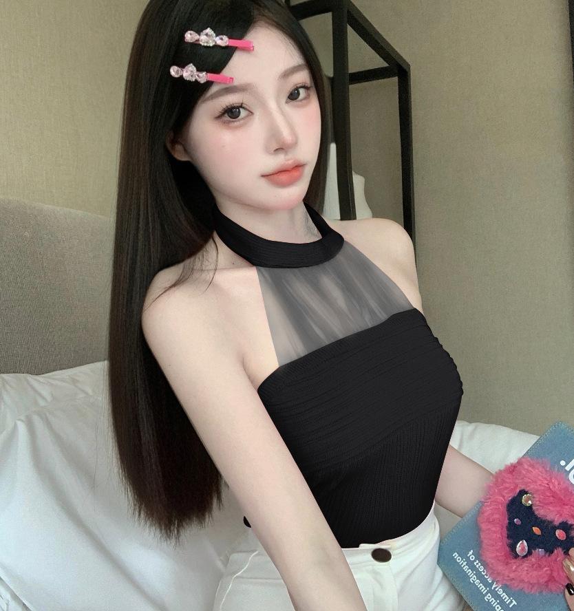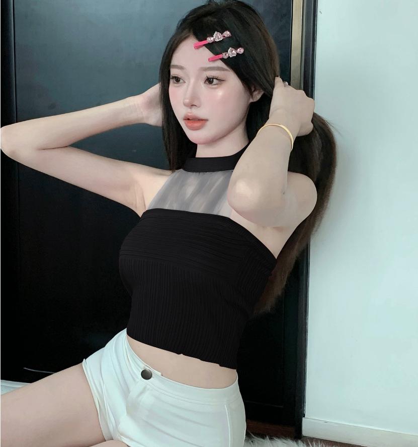Camisola de verano estilo europeo y americano, corte entallado, sexy, para chica, con costuras de malla