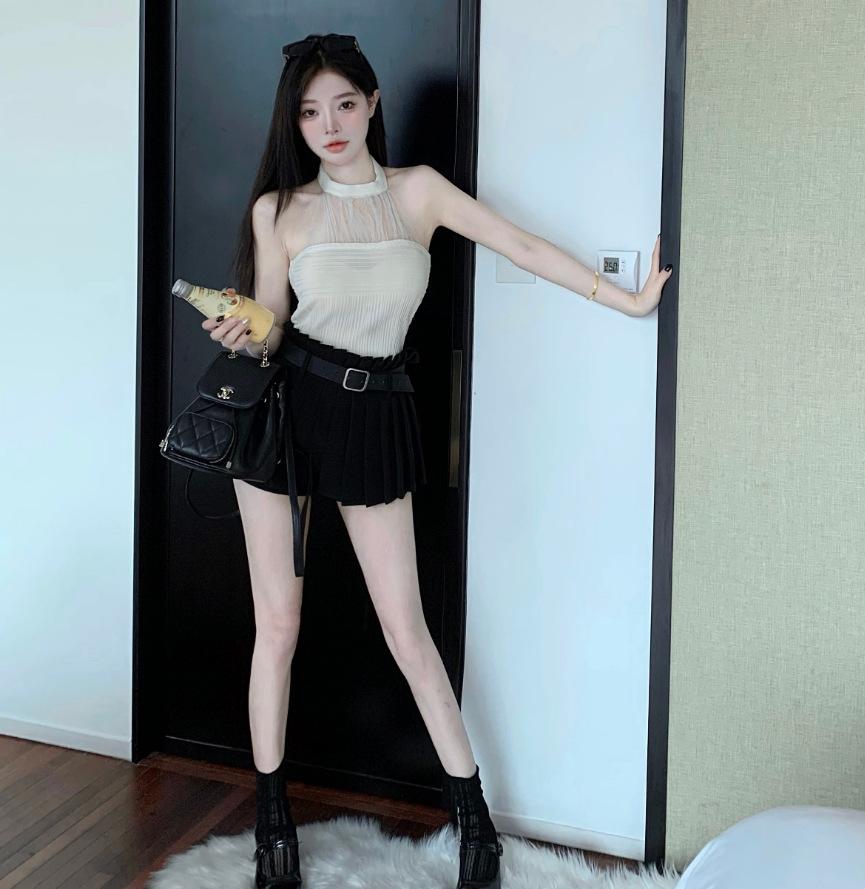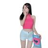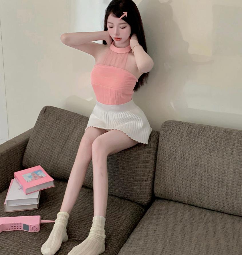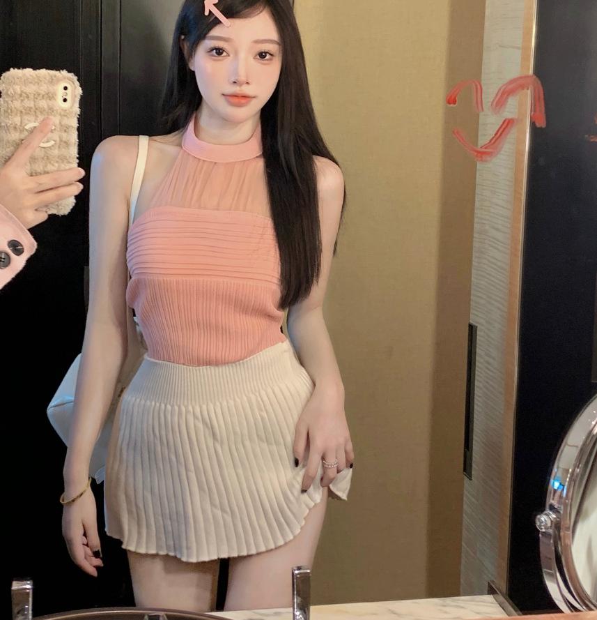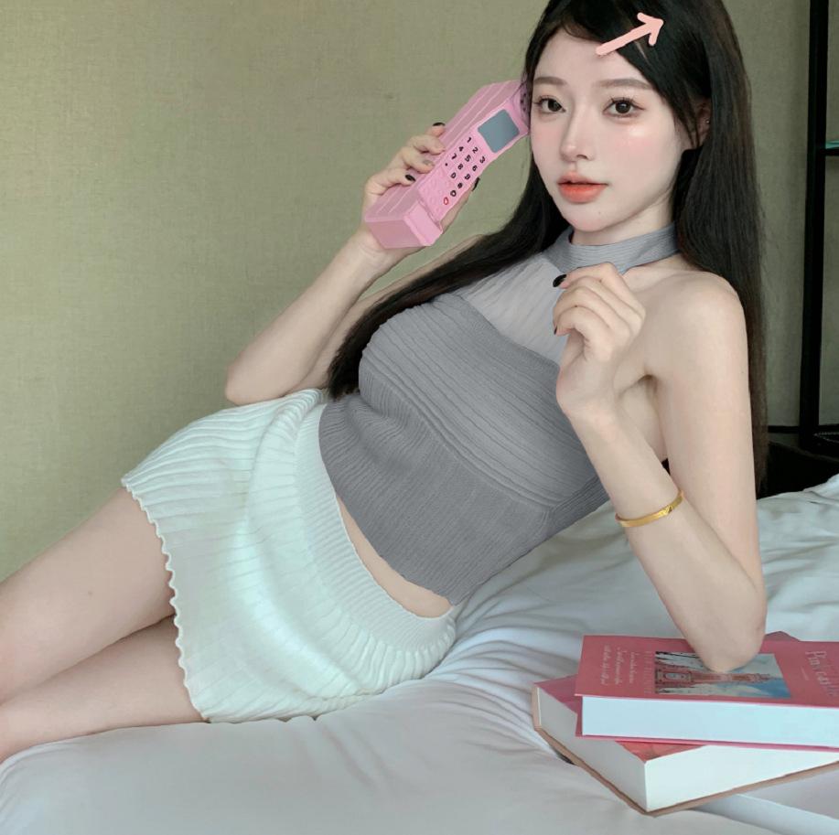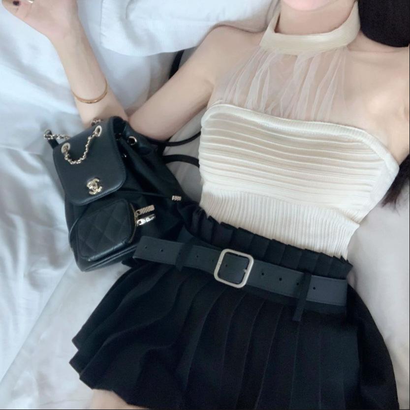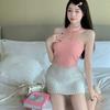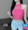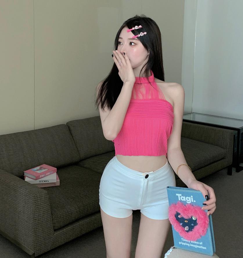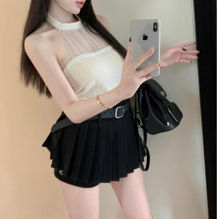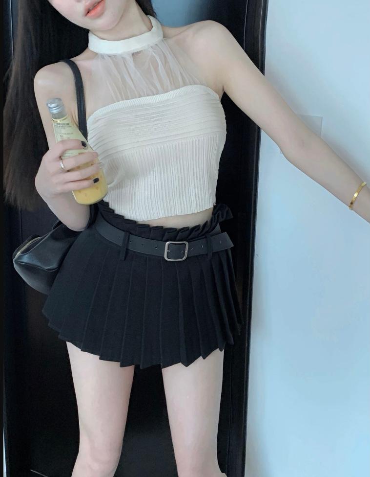 Camisola de verano estilo europeo y americano, corte entallado, sexy, para chica, con costuras de malla