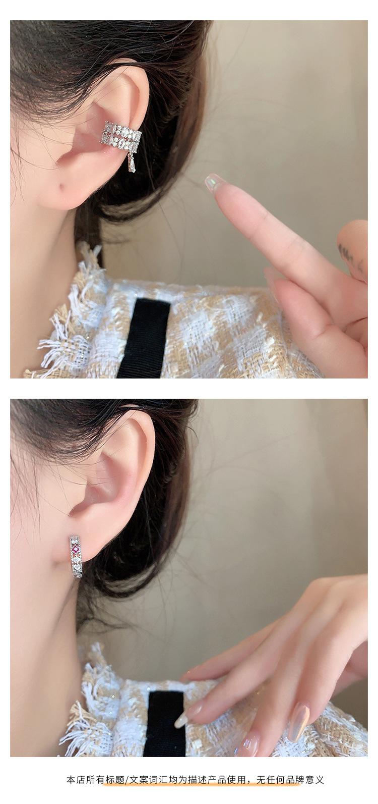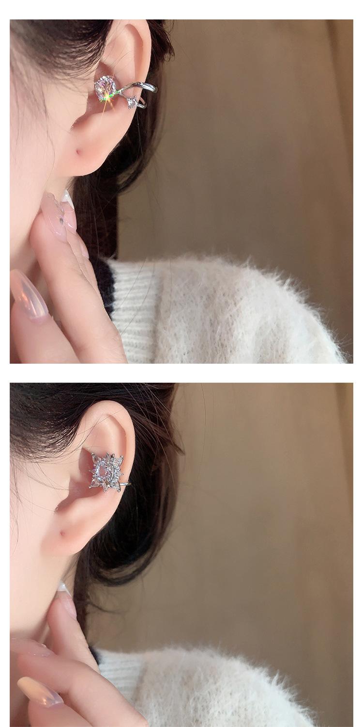 Double row sparkling diamond single ear clip (a2428), Semi-circular zircon single ear clip (a2429), Silver zir...