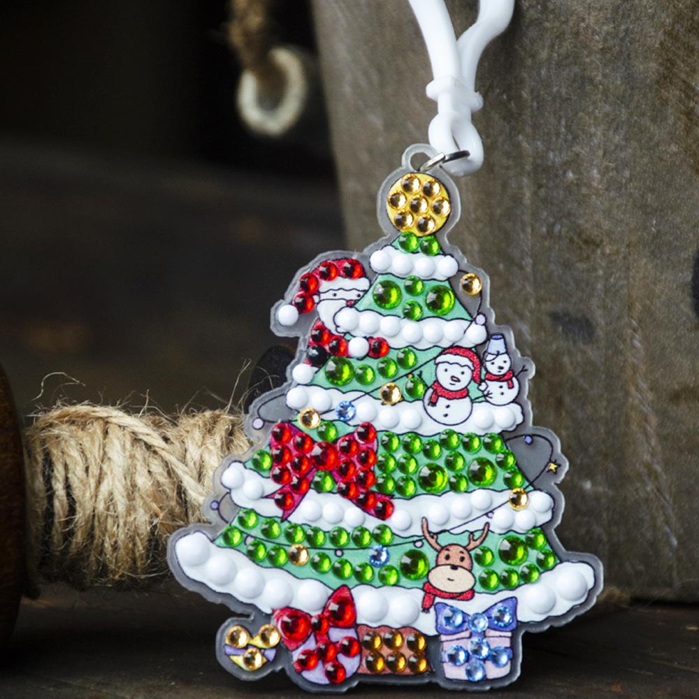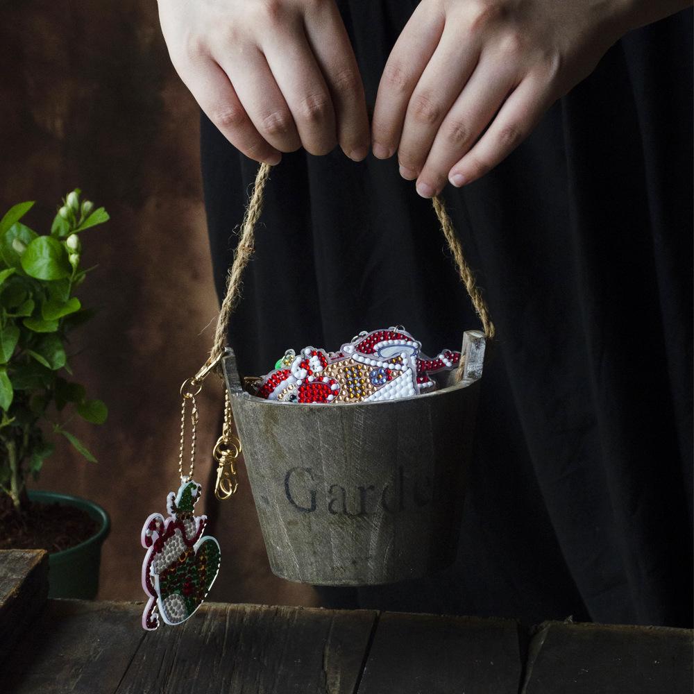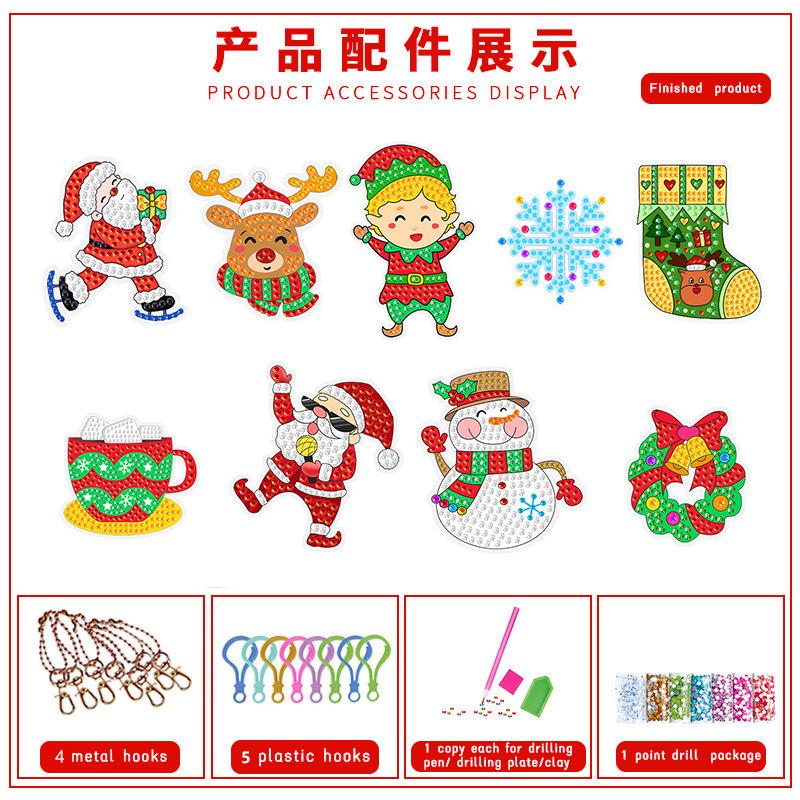 Nueva caja ciega navideña transfronteriza, pintura de diamantes acrílica, llavero de diamantes, colgante de diamantes de imitación hecho a mano.