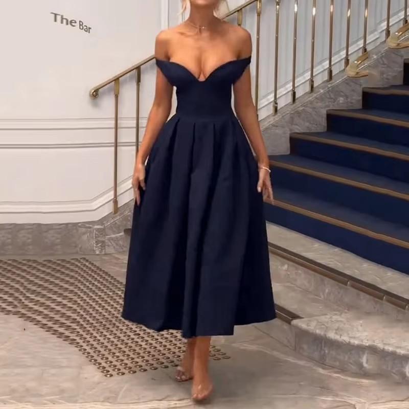2025 Comercio Exterior Transfronterizo Europa y América Amazon Verano Nuevo Moda Elegante Cuello en V Sin Espalda Vestido Tubo Largo vestido