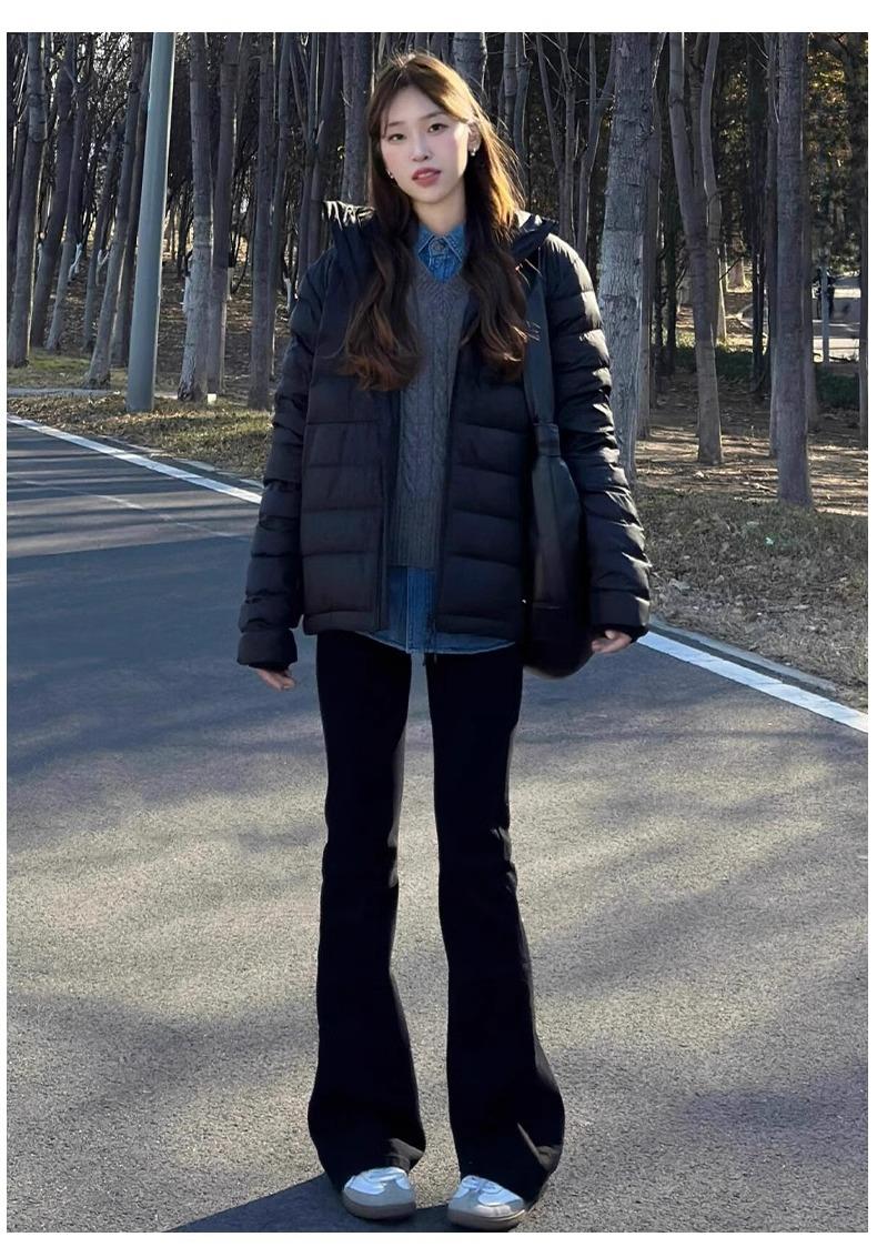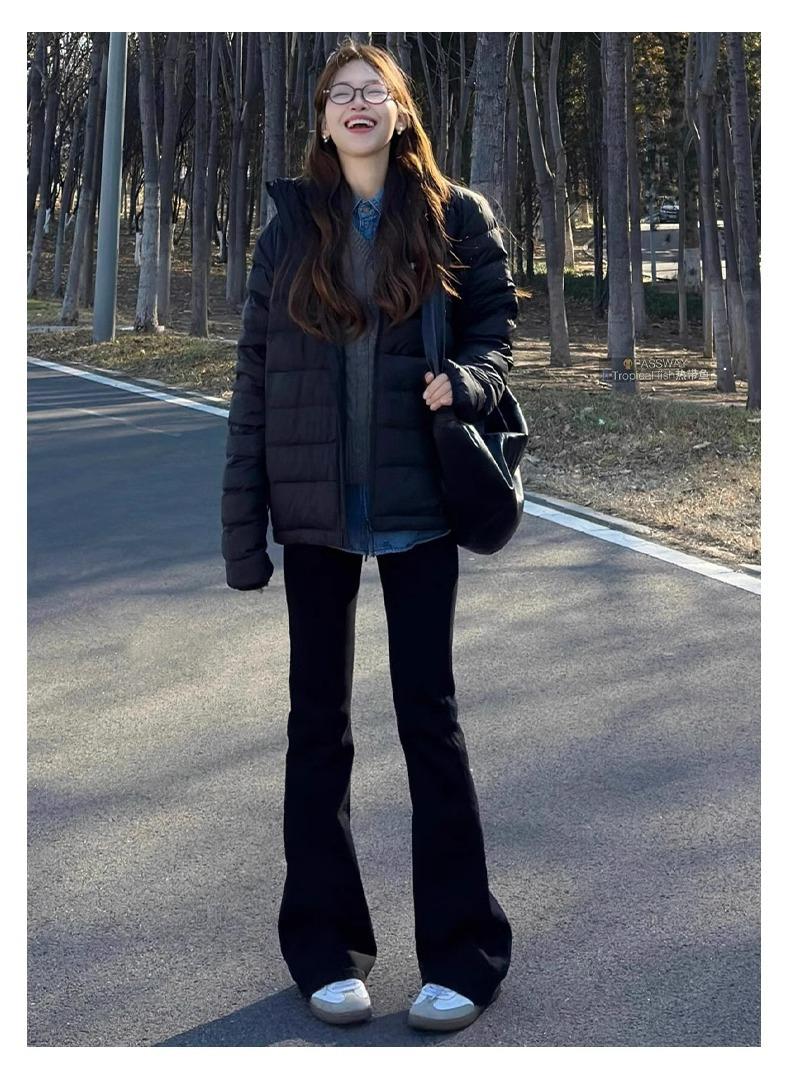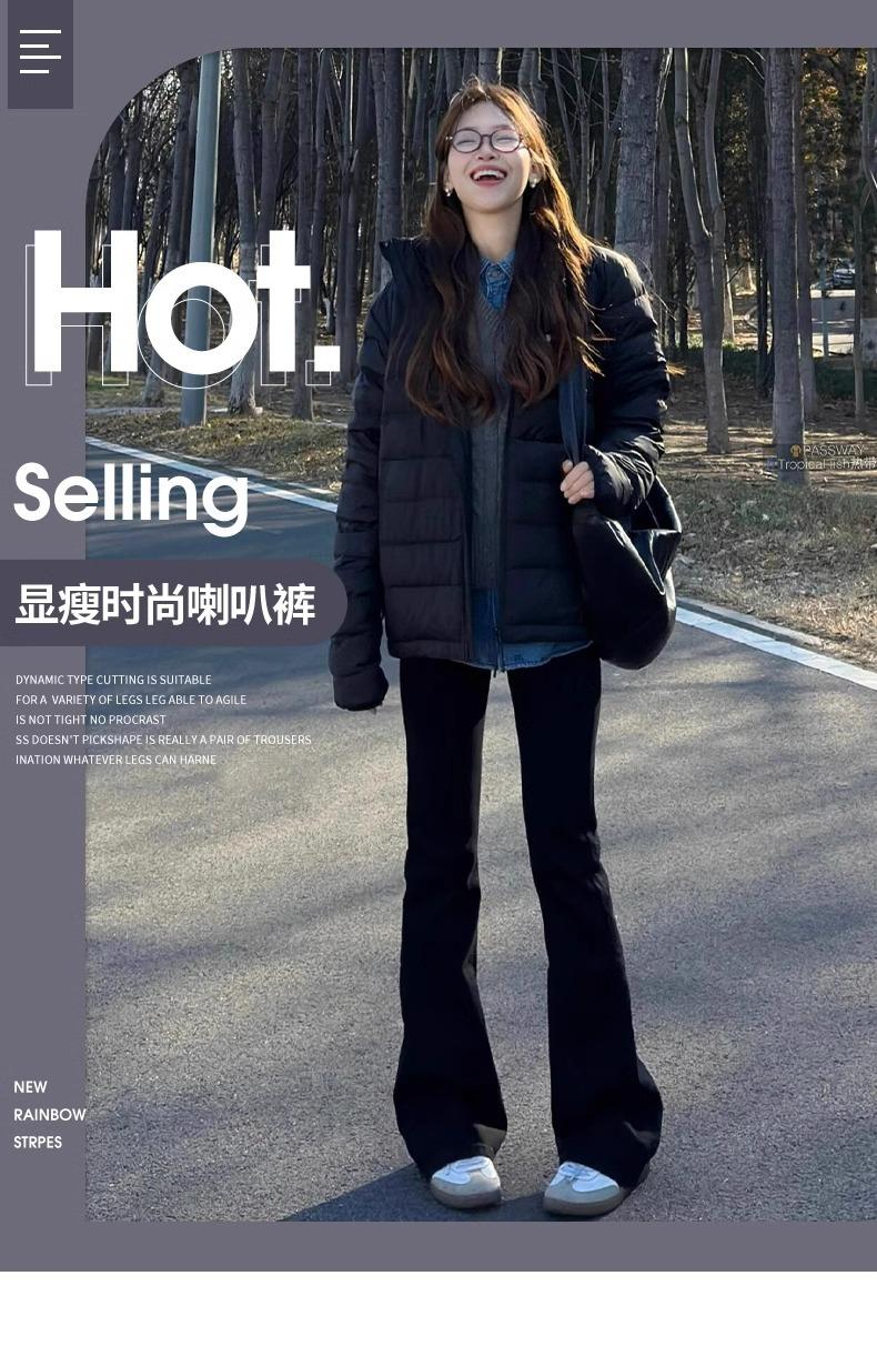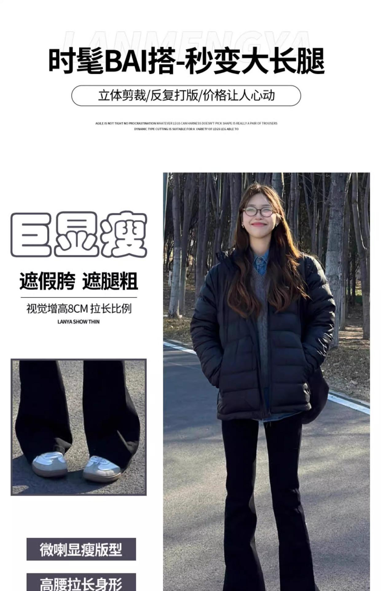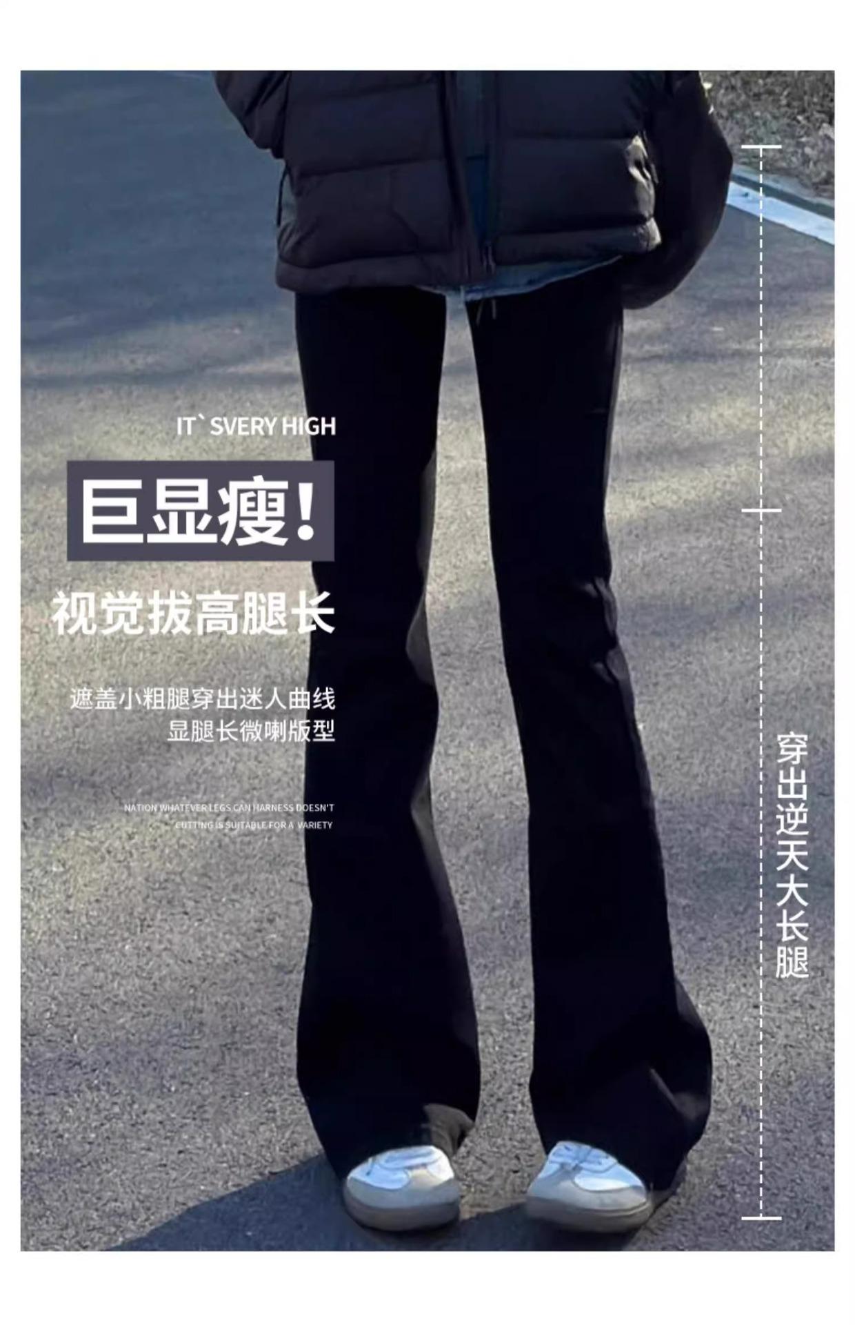 Pantalones negros retro micro acampanados primavera y otoño 145 pantalones rectos ajustados elásticos de cintura alta pequeños con herraduras 150