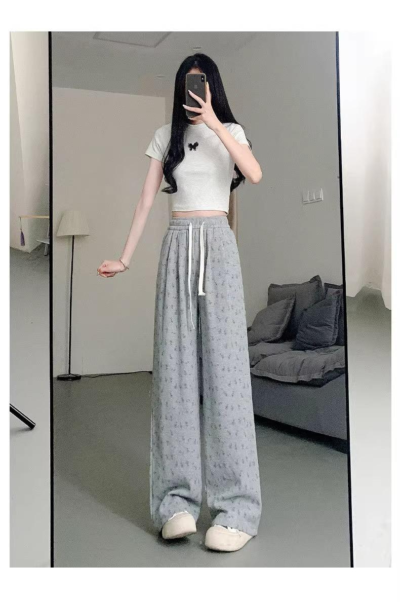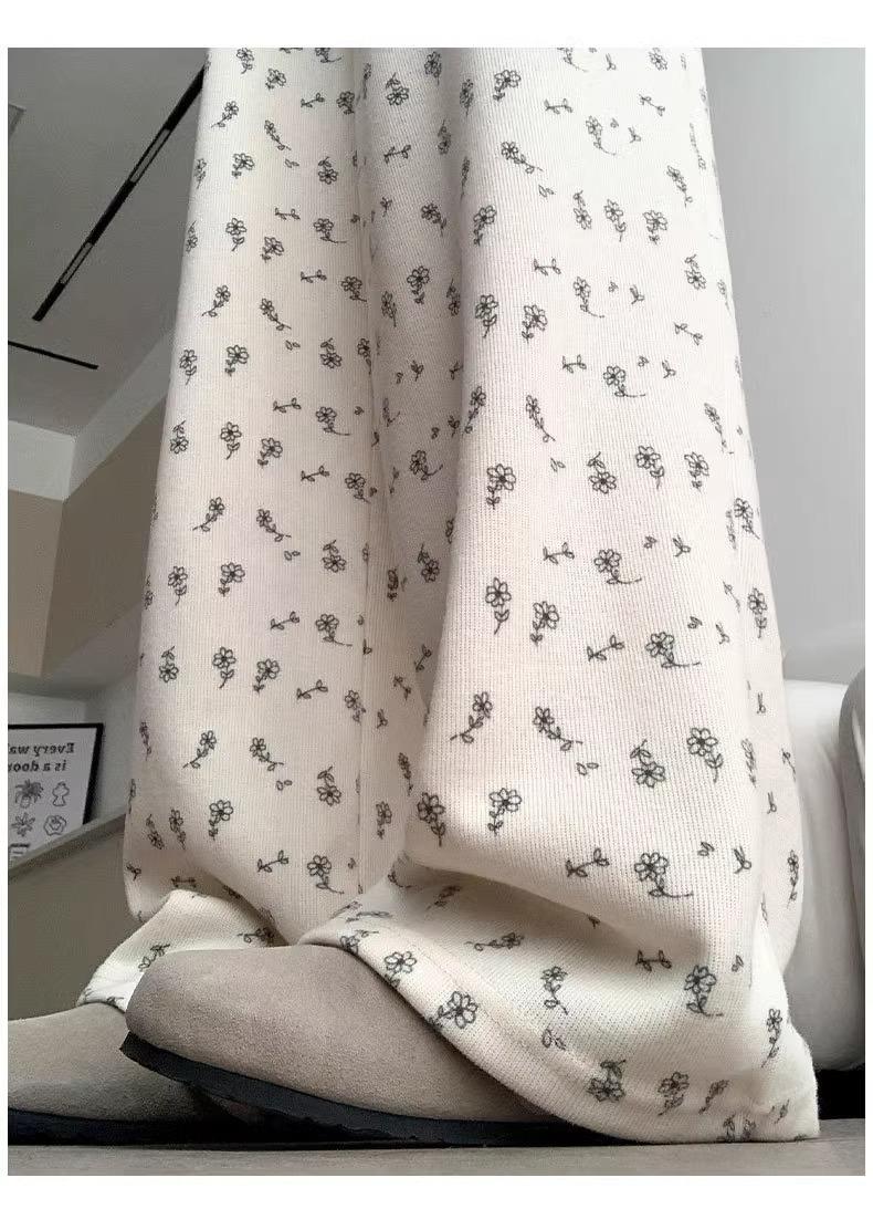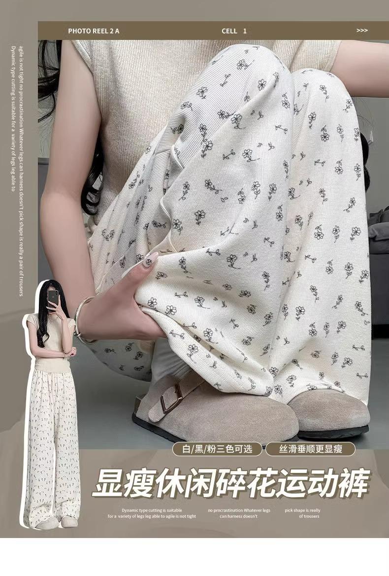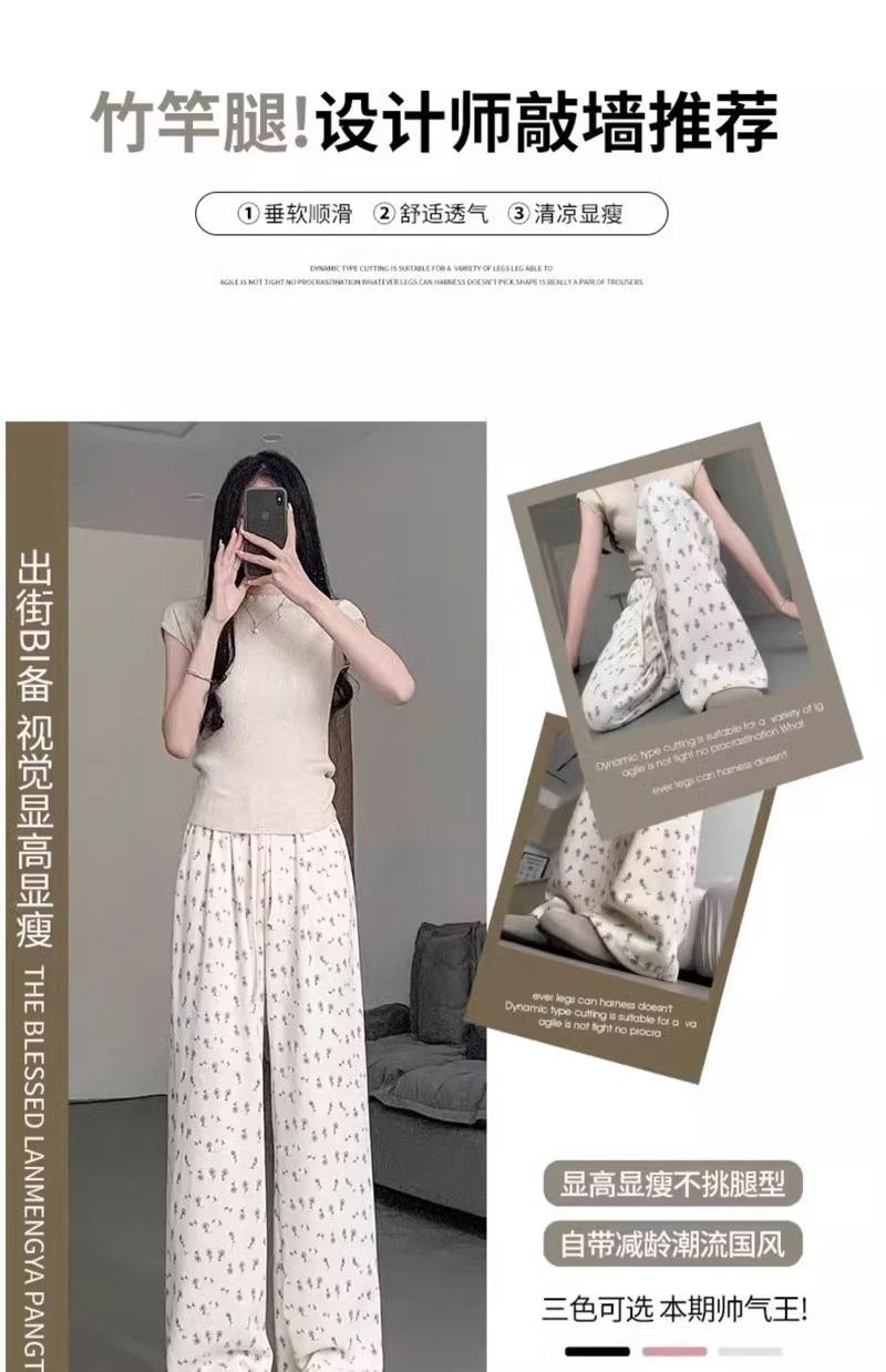 150 Pantalones de Pierna Ancha Florales de Estilo Fresco para Mujer Nuevo Cintura Alta Combinable Casual Ajustado 145 Pantalones Casuales