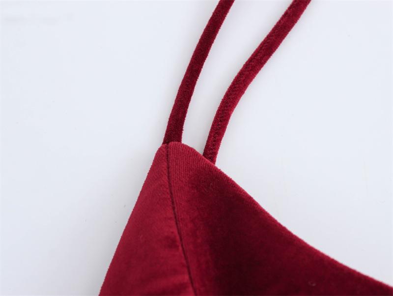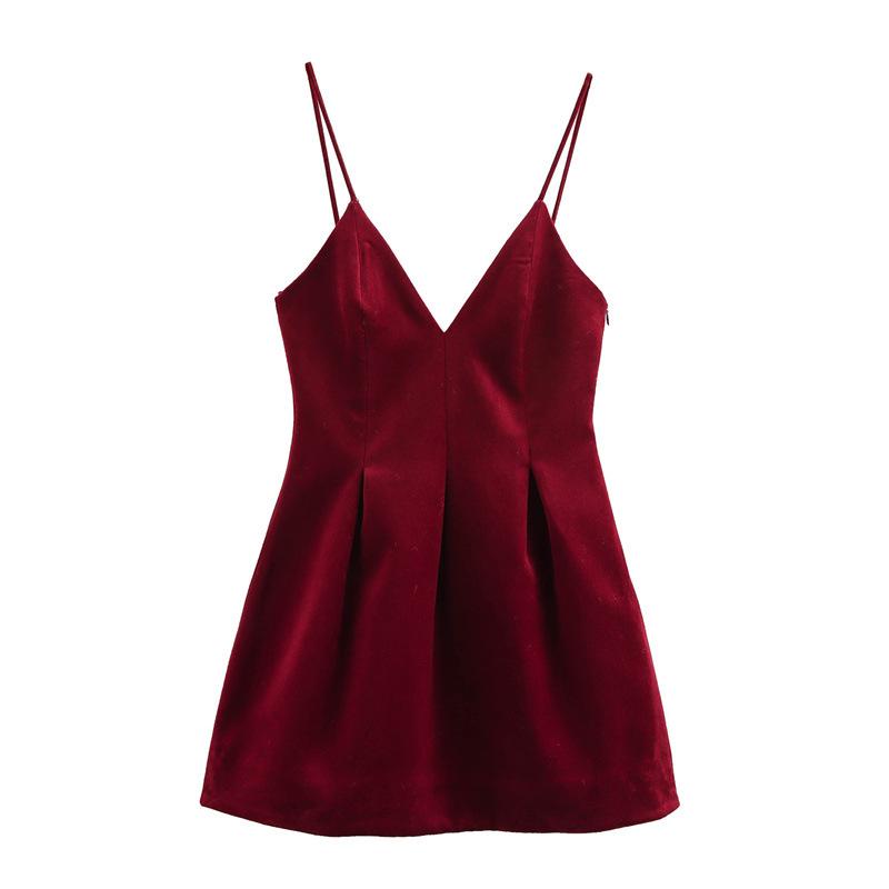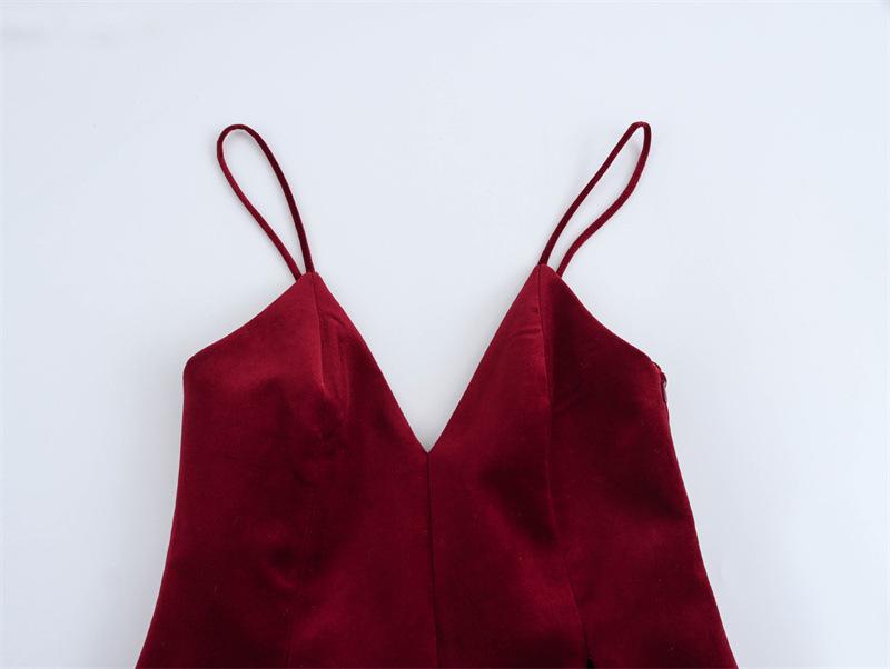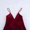 Vestido sexy de terciopelo rojo con tirantes para mujer, estilo europeo y americano, nuevo, color sólido, informal, con cuello en V, 2025