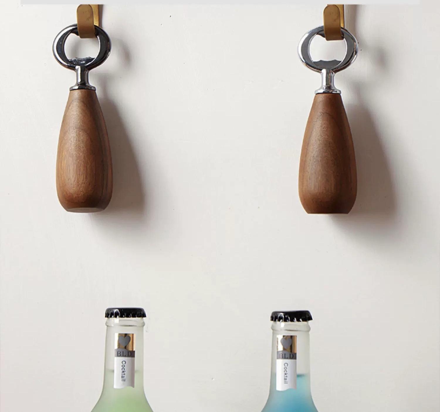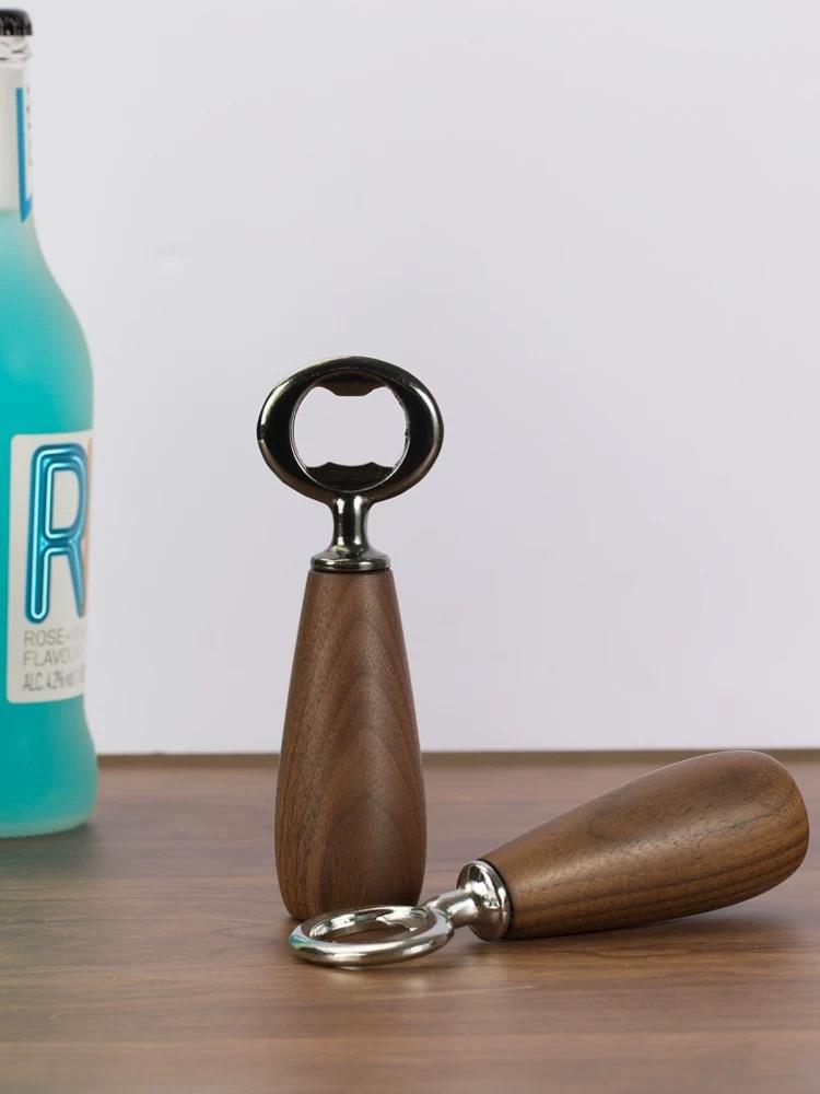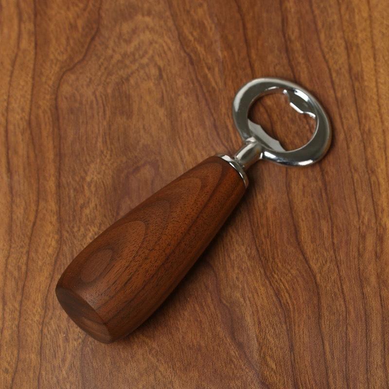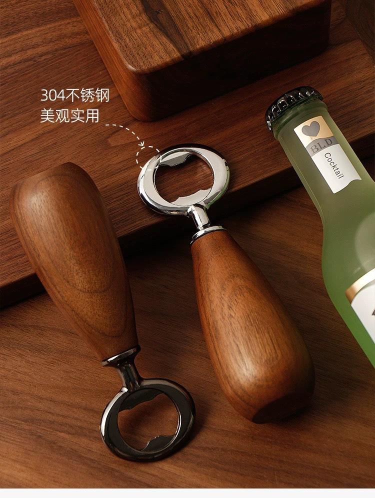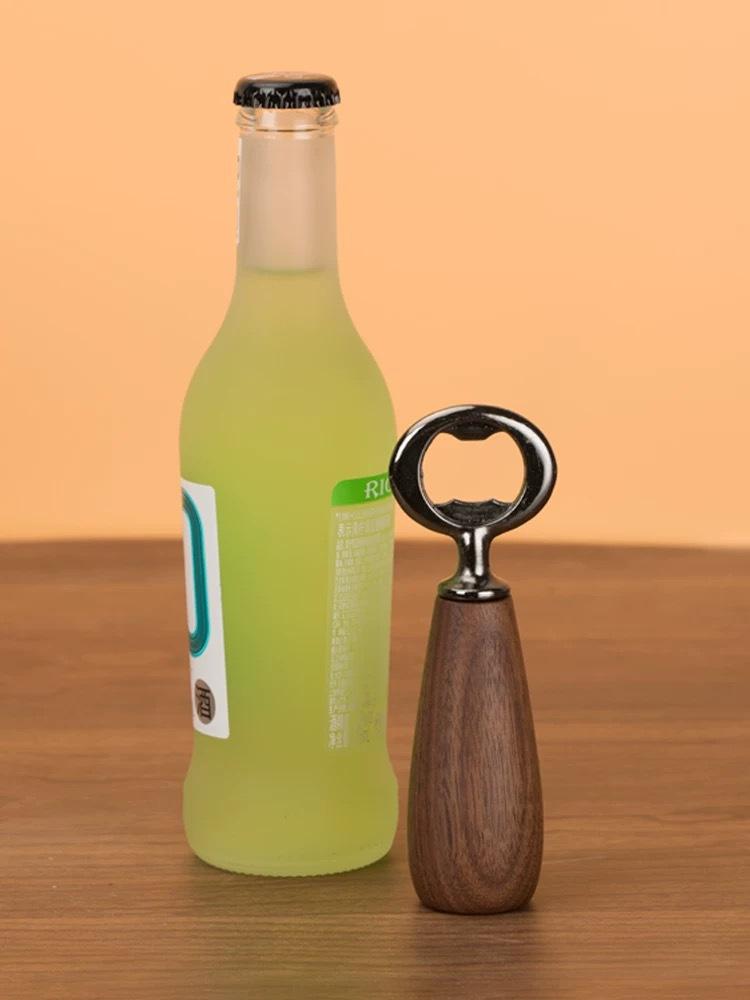 Abridor de botellas de madera maciza, abridor de botellas de cerveza, bebidas y refrescos, abridor de botellas doméstico, abridor distintivo y creativo con mango de madera, acero inoxidable