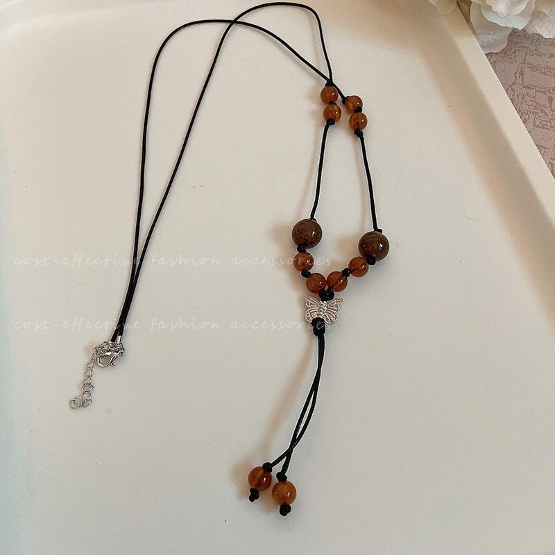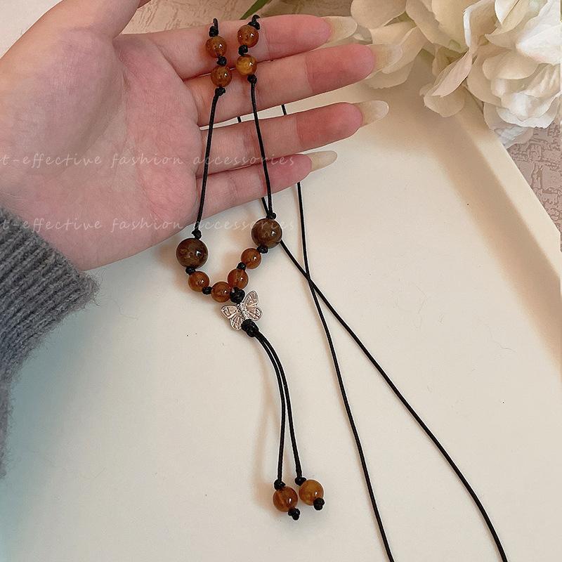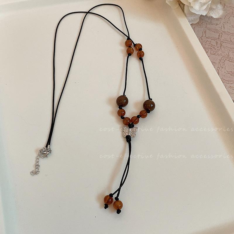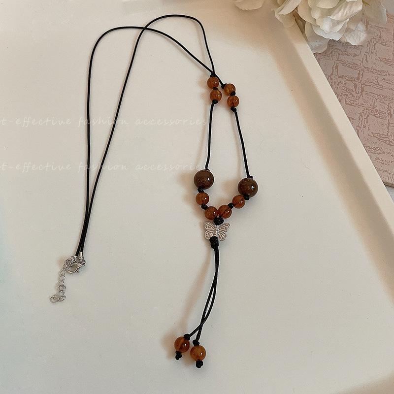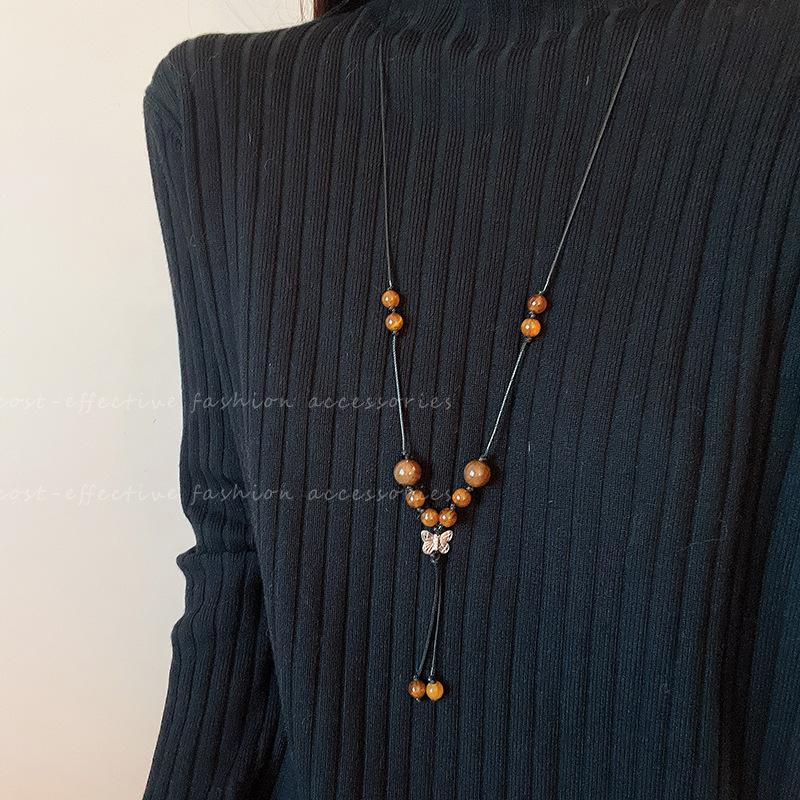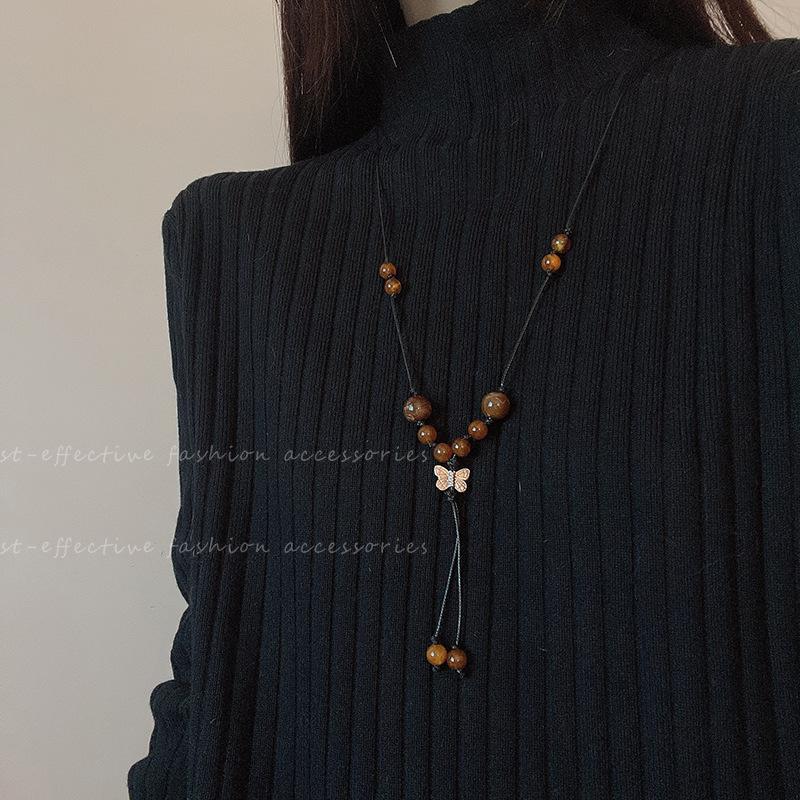 Collar con colgante de mariposa retro estilo coreano, estilo nicho, combina con todo, bonito y sencillo, cadena larga para clavícula, accesorios para mujer.