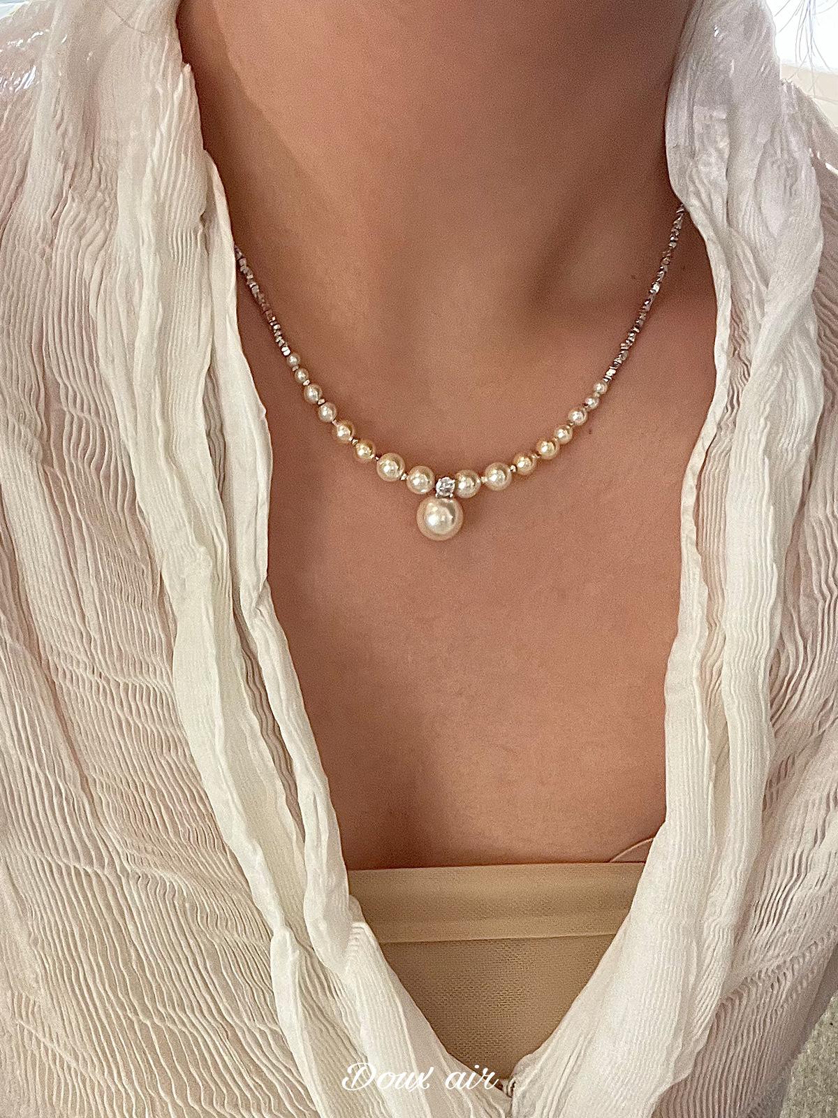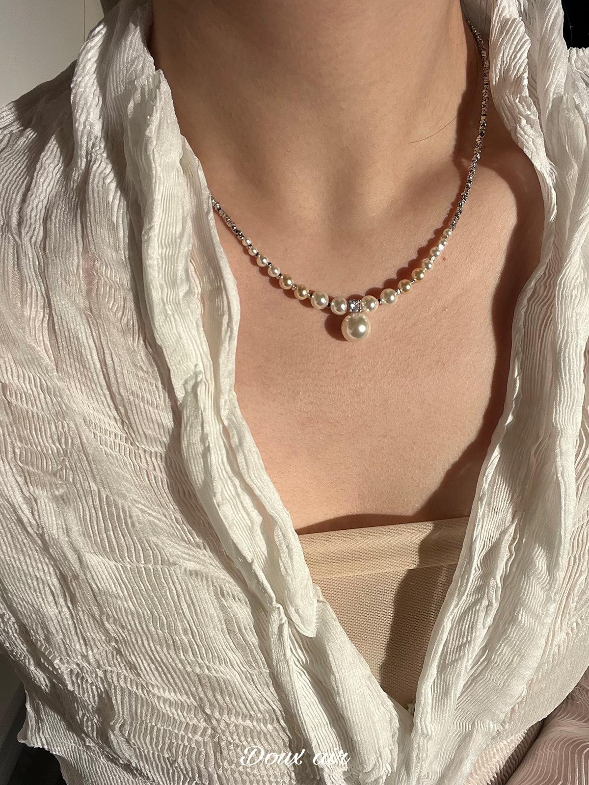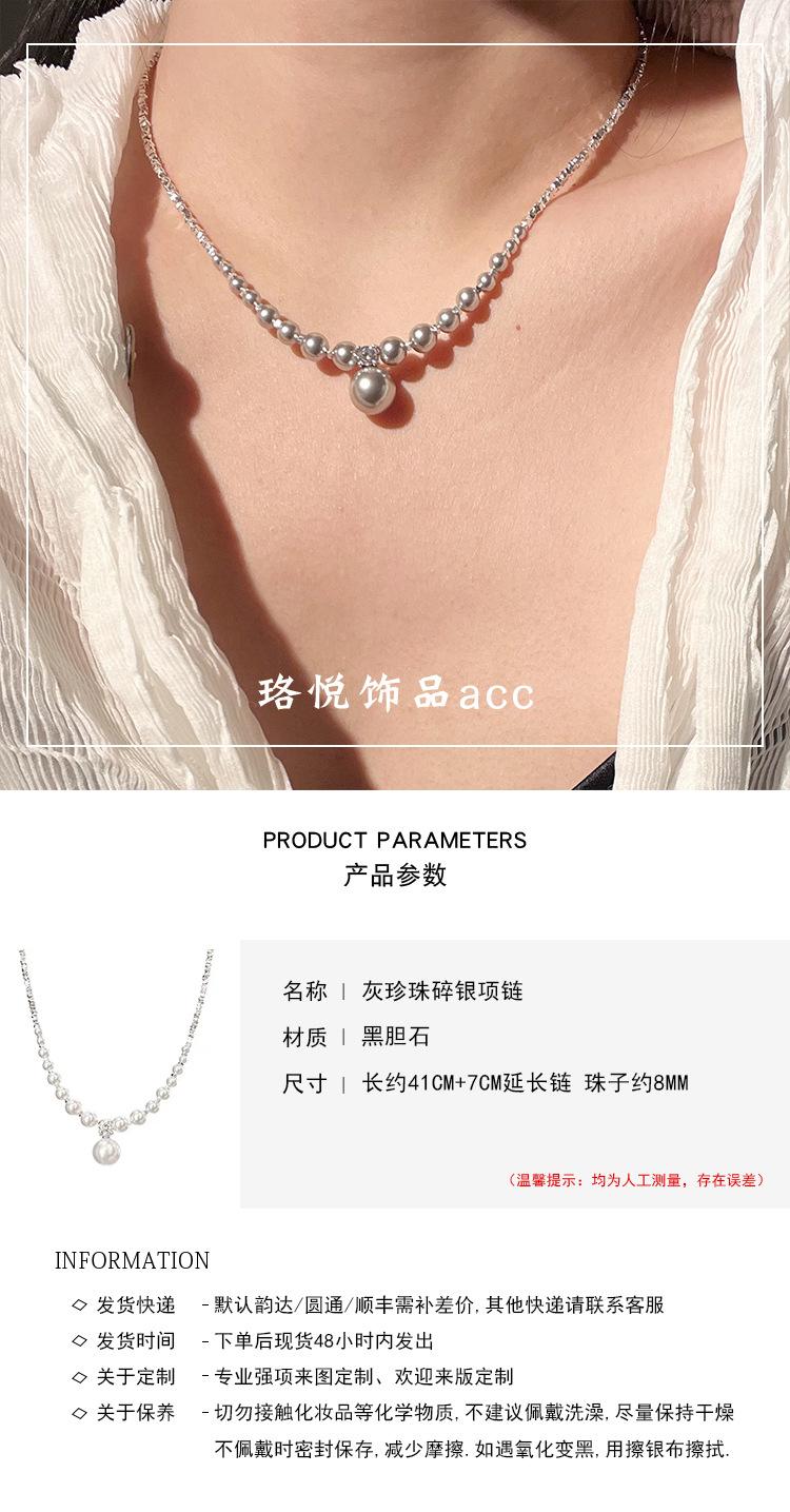 Grey pearl broken silver necklace, White pearl broken silver necklace