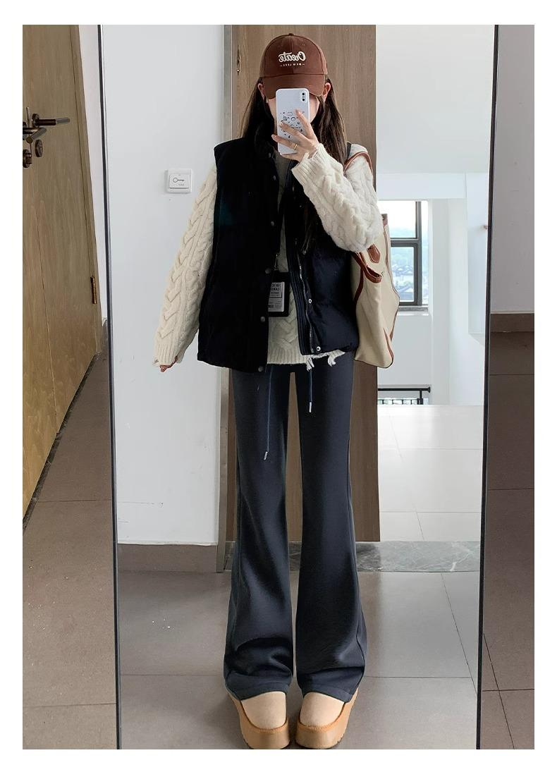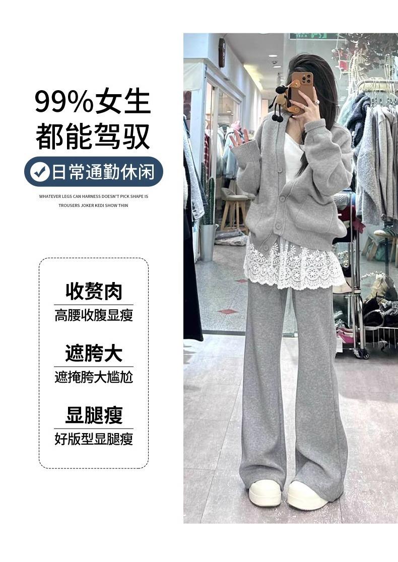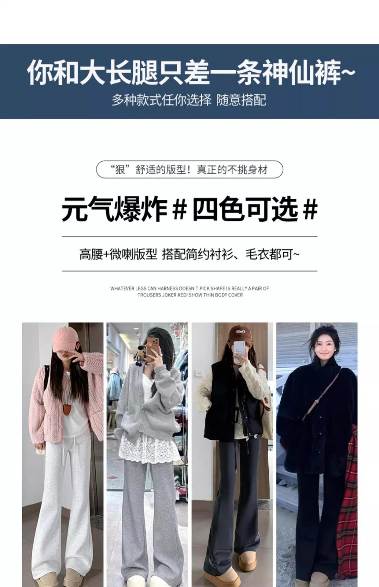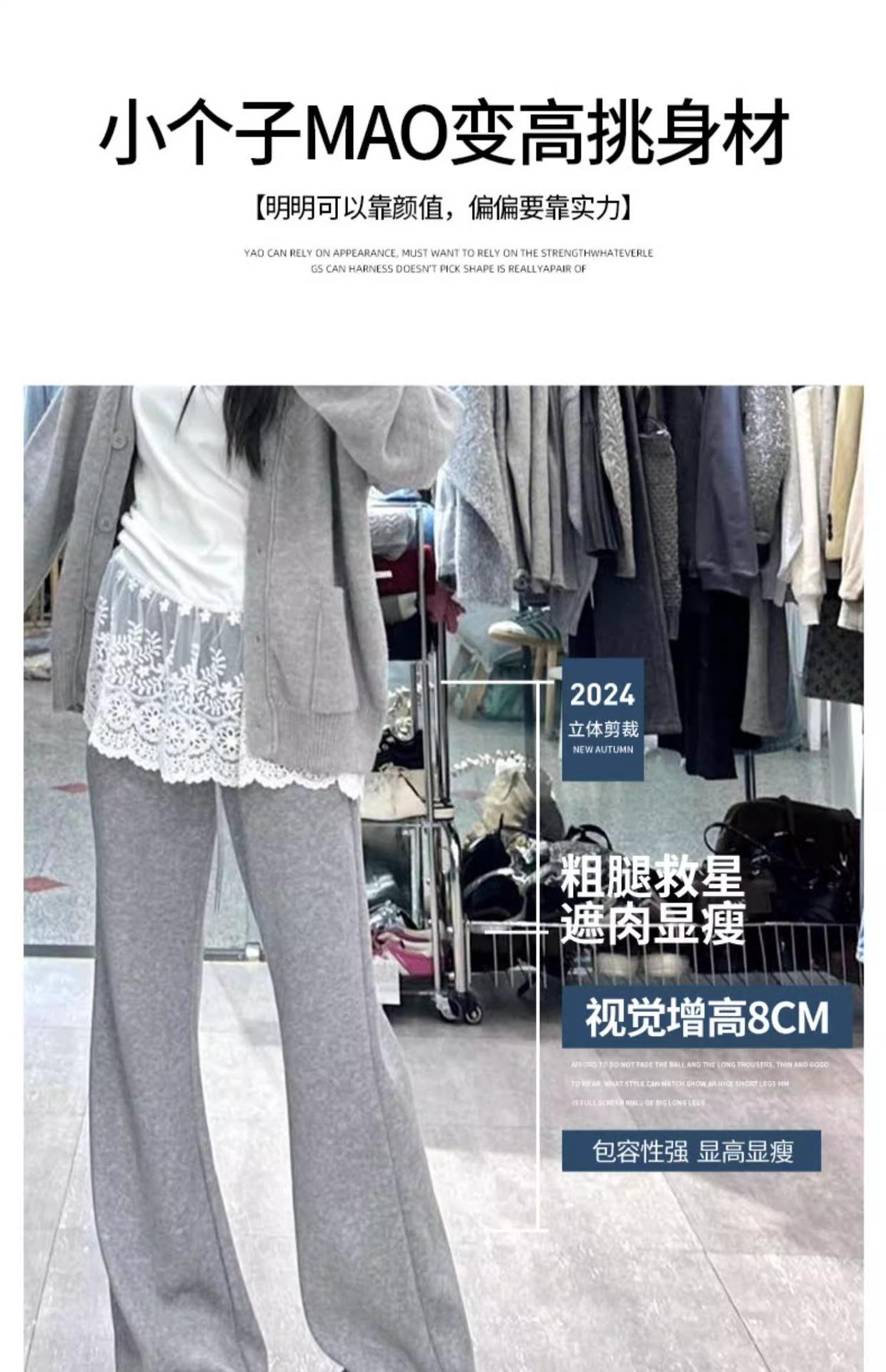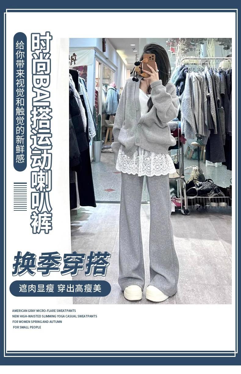 Pantalón de chándal gris microbocina para mujer primavera y otoño cintura alta adelgazante pequeño 145 nuevo casual americano herradura pantalones deportivos