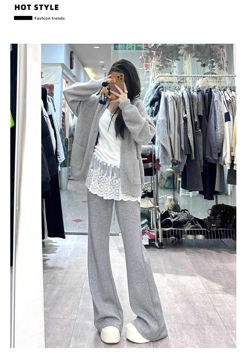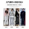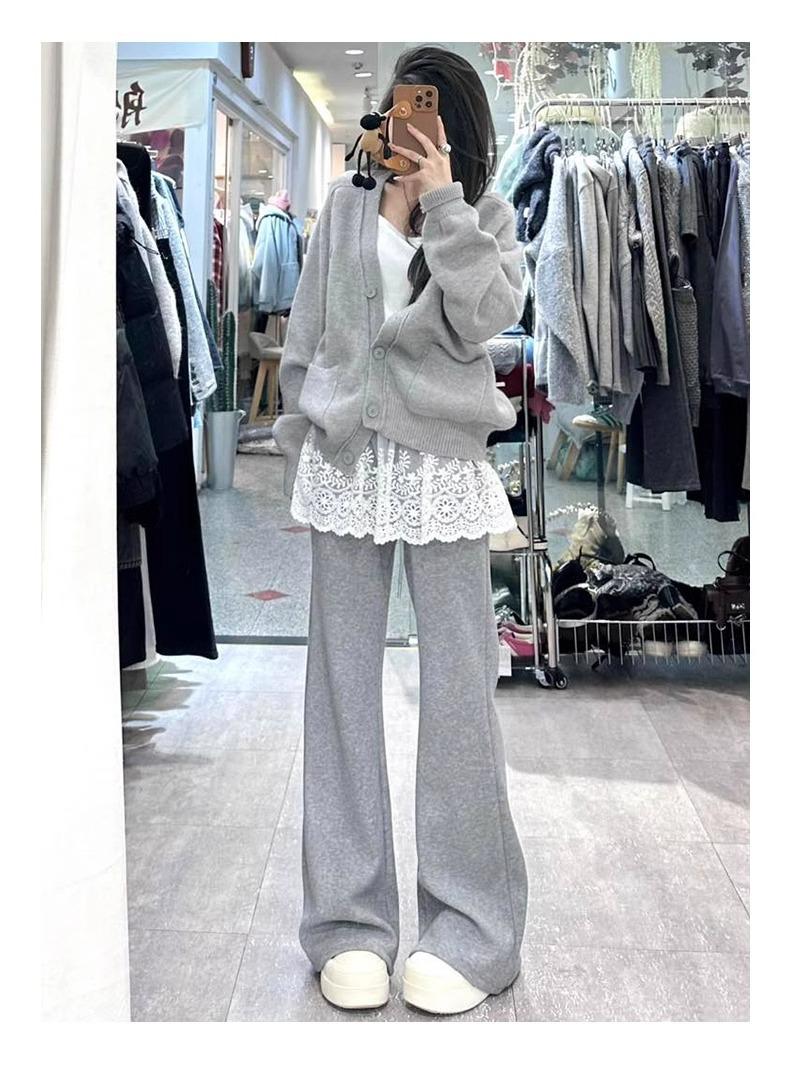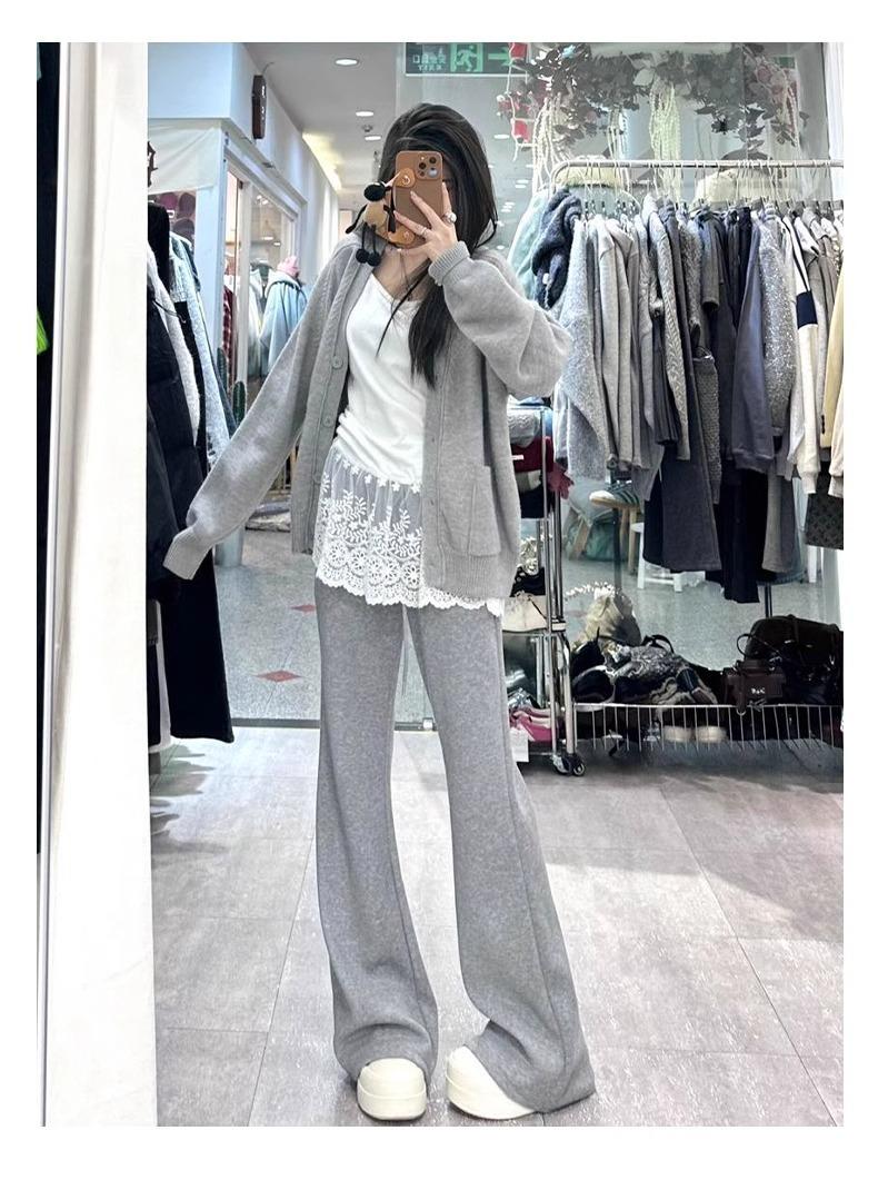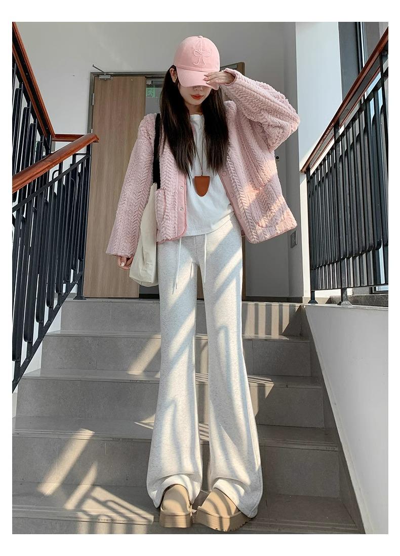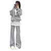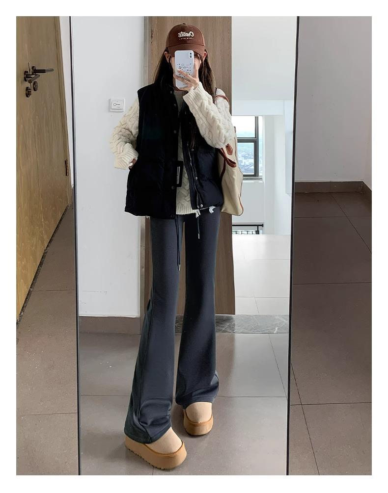 Pantalón de chándal gris microbocina para mujer primavera y otoño cintura alta adelgazante pequeño 145 nuevo casual americano herradura pantalones deportivos