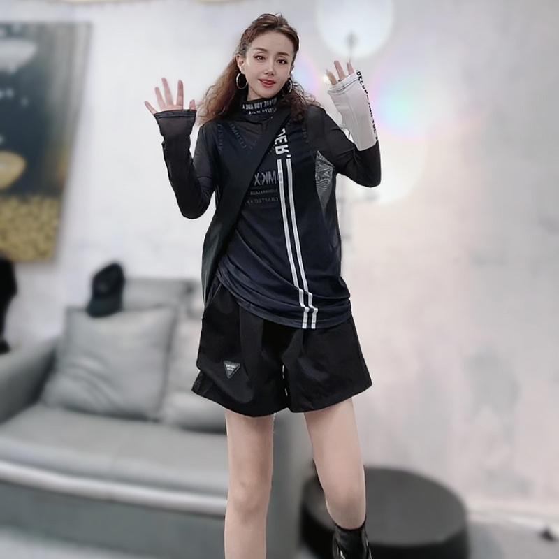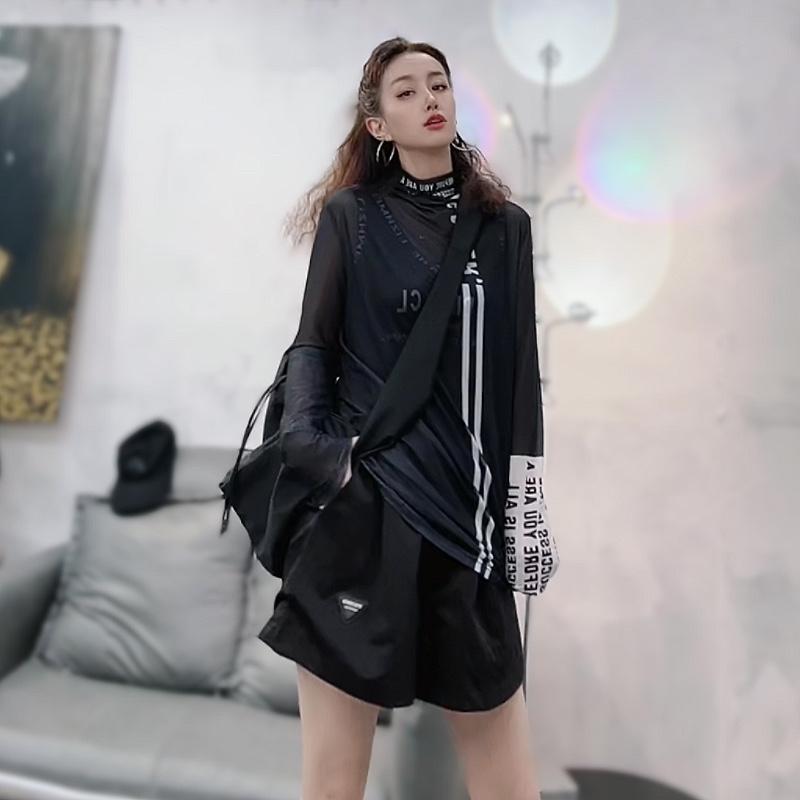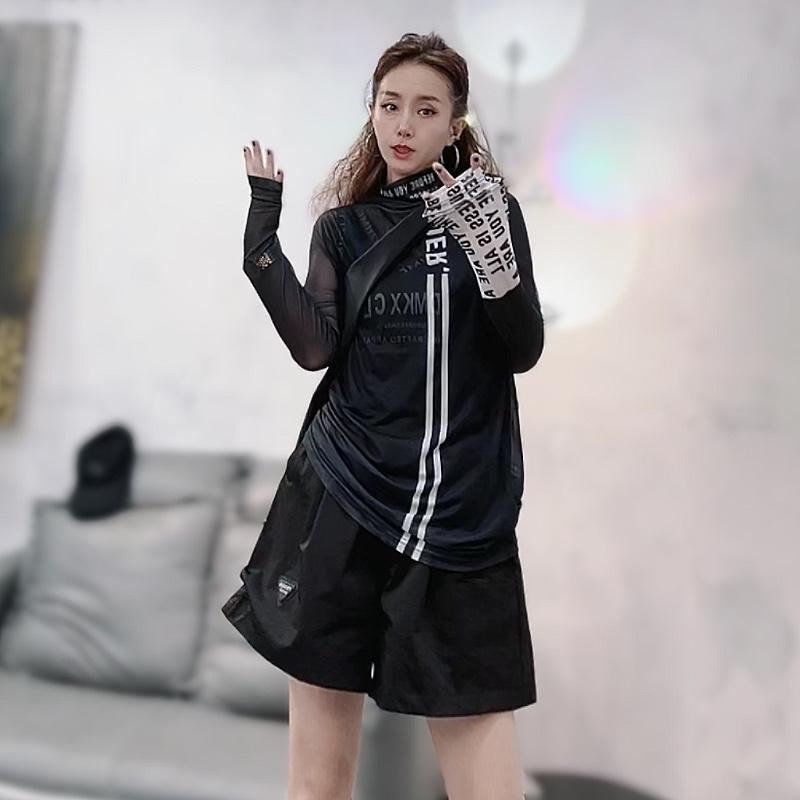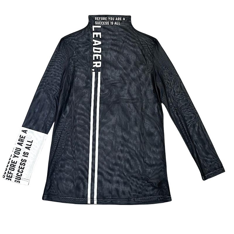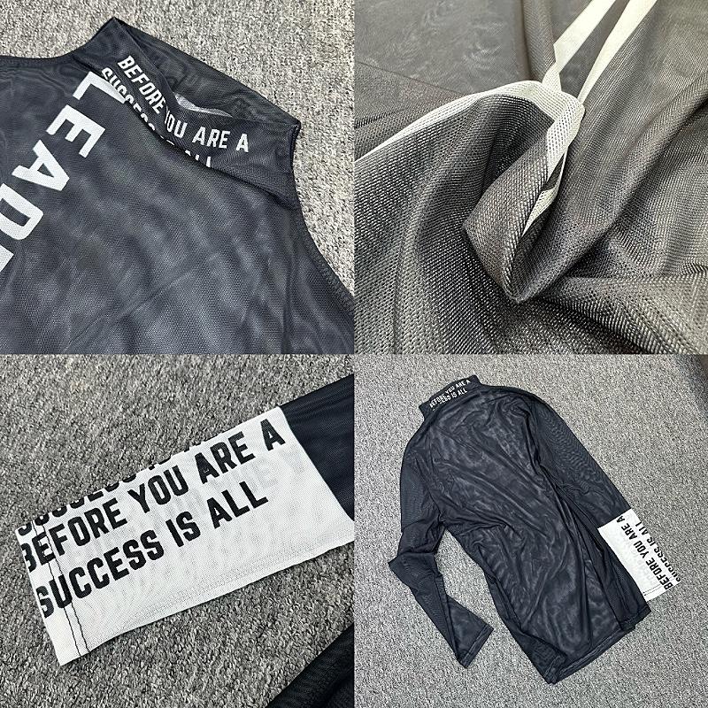Camiseta básica de malla de estilo europeo con cuello medio alto para mujer con letras blancas y negras, nueva camiseta elástica de punto para otoño y primavera 2025