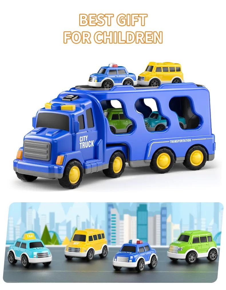 En stock, venta al por mayor, coche de policía de ciudad cinco en uno, camión con inercia, luz y música, simulación de coche de policía, camión, juguetes para niños