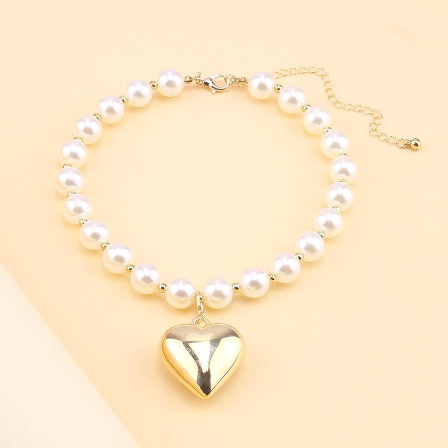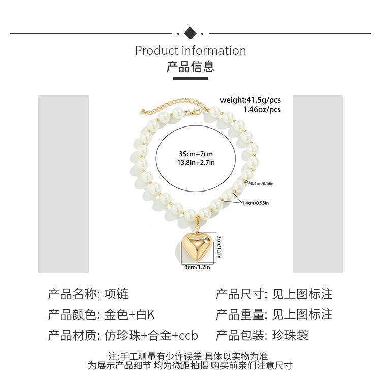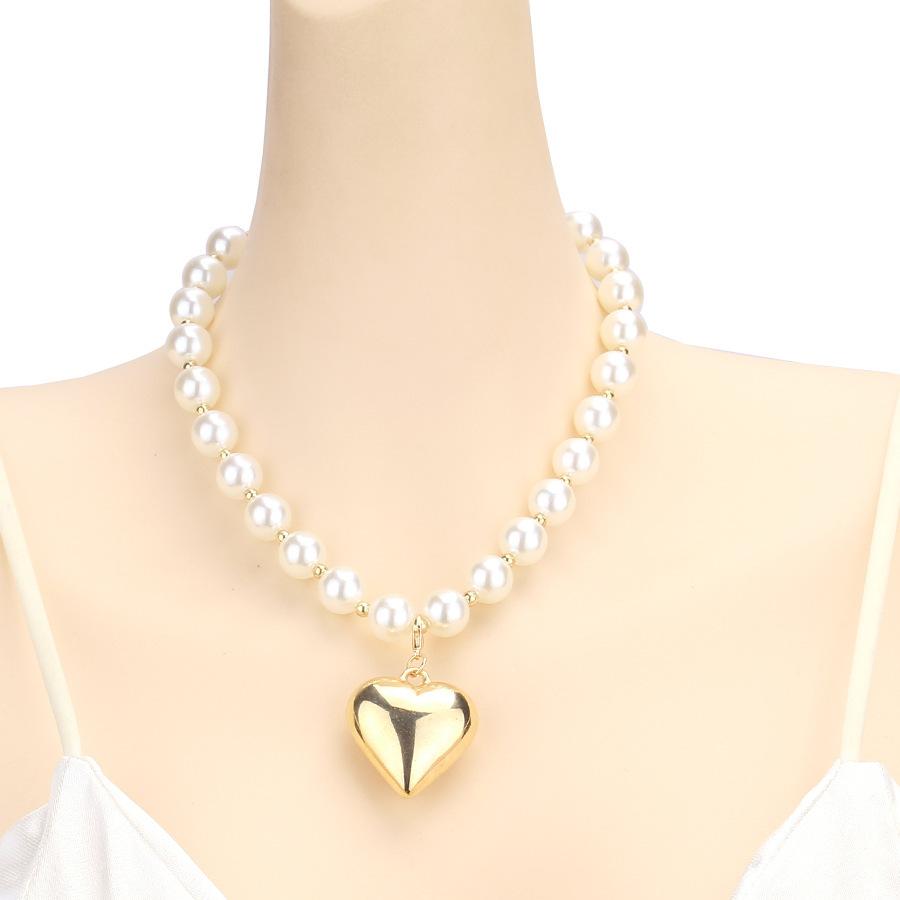 Classic love imitation pearl necklace gold, Classic love imitation pearl necklace white k