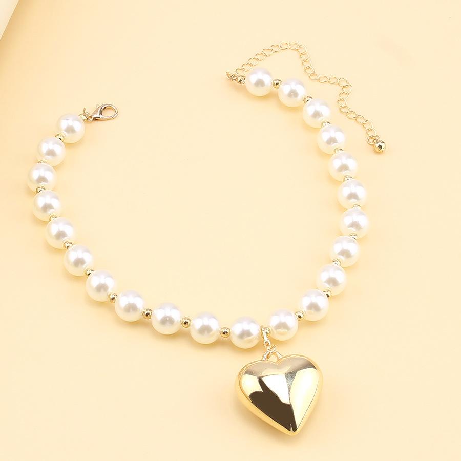 Collar geométrico caliente transfronterizo de Europa y Estados Unidos, perla de imitación, amor, cadena para clavícula, punk femenino, cuentas redondas, cadena para el cuello de cuentas femeninas al por mayor