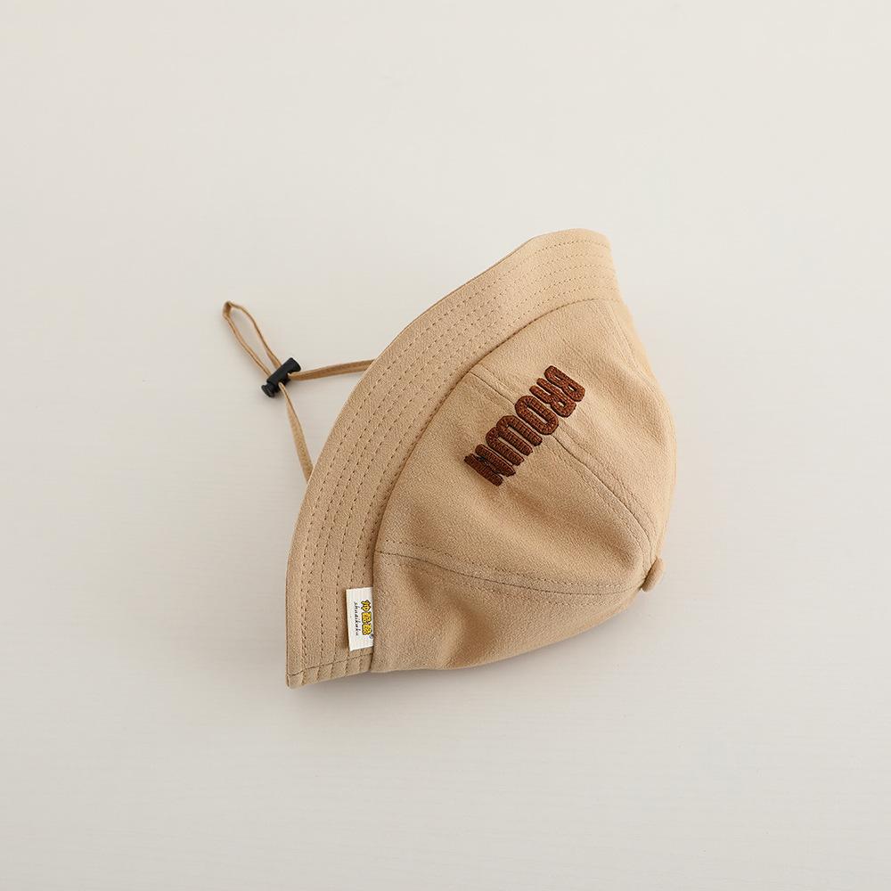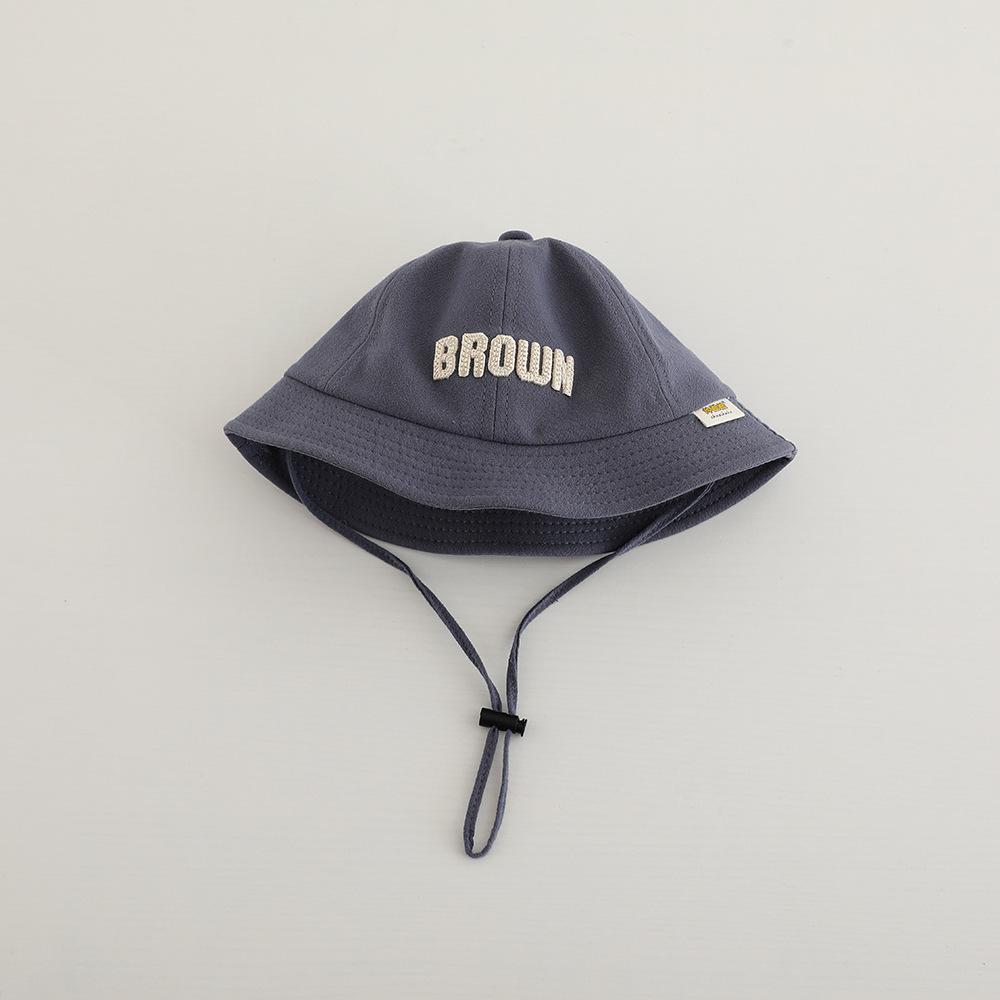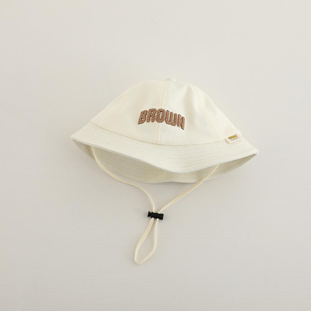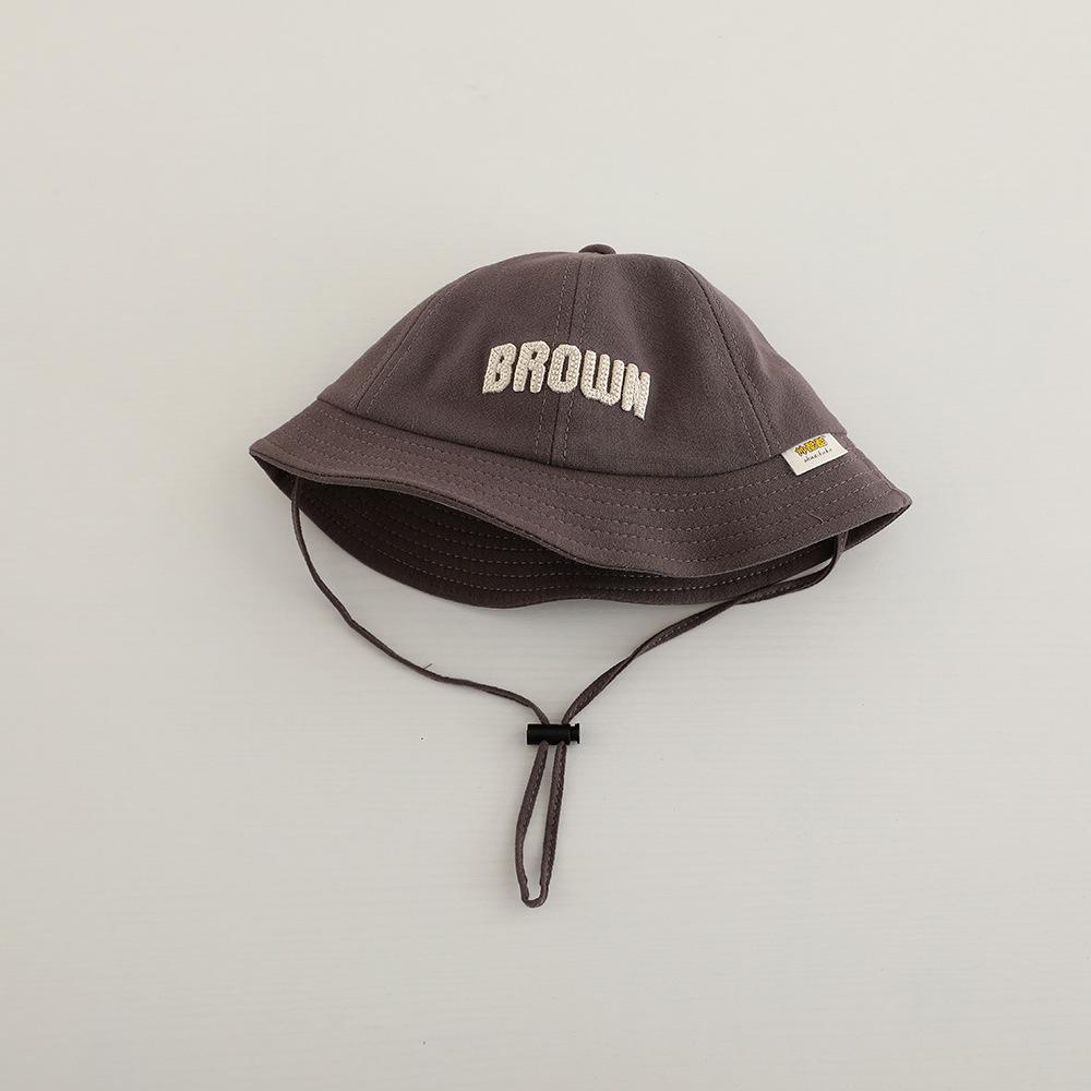 Sombrero de pescador para niños, primavera y otoño, nuevo, con letras bordadas, estilo coreano, para exteriores, de ala ancha, resistente al viento, con cuerda, venta al por mayor