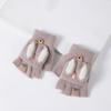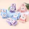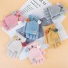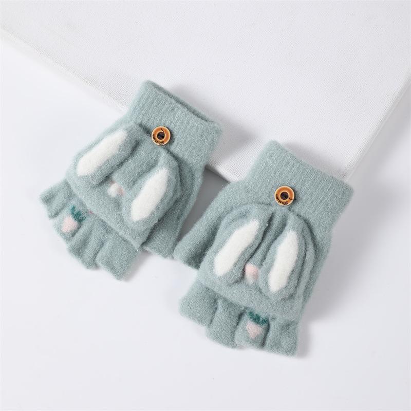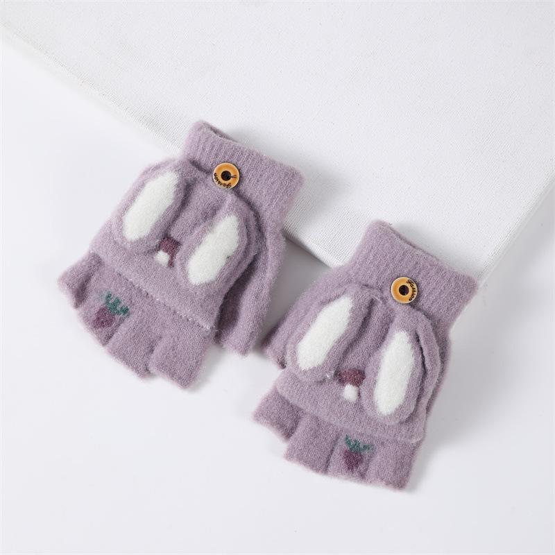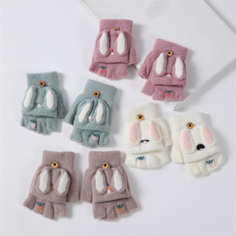 Guantes de invierno para niños con forro polar grueso, bonitos guantes de medio dedo con orejas de conejo y dibujos animados, cálidos y abatibles, venta al por mayor