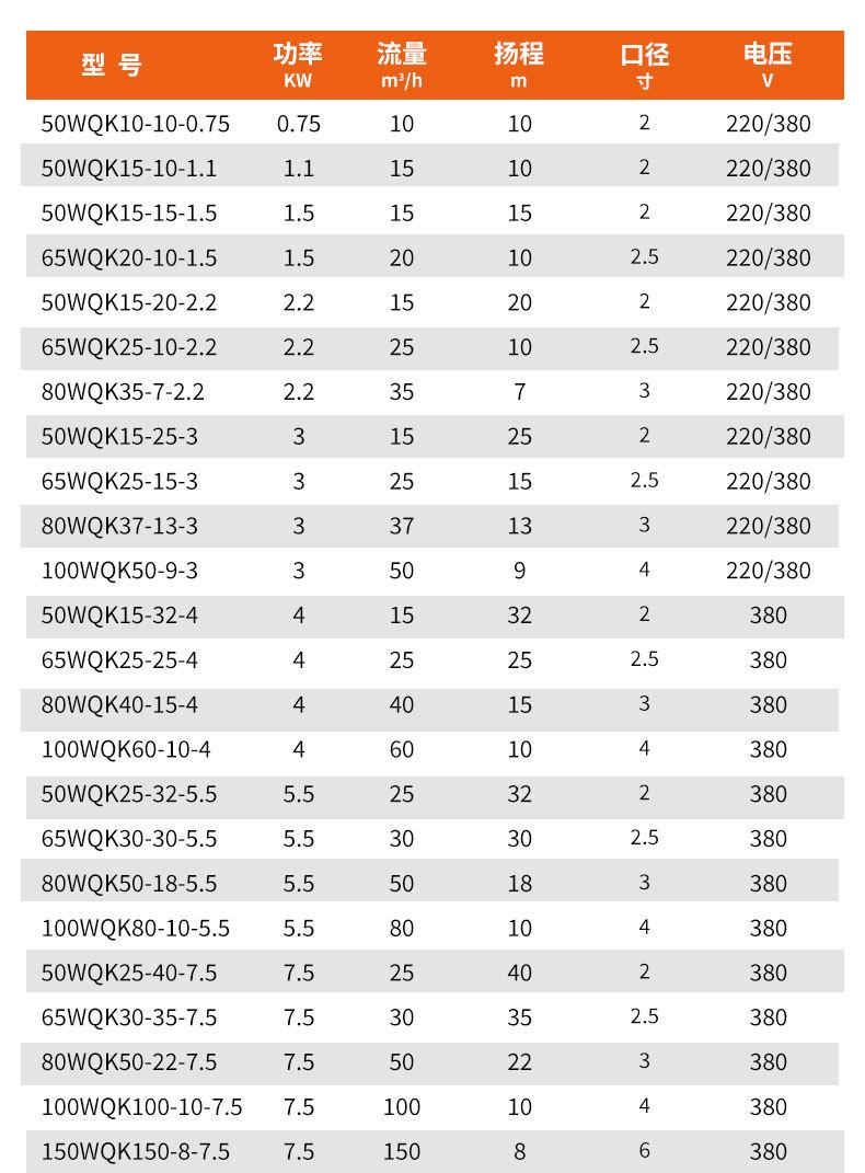 50WQAS10-10 thread, 50WQAS10-10, 50WQAS12-12, 50WQAS15-15, 50WQAS15-20, 65WQAS35-12, 80WQAS40-10, 50WQAS20-25,...