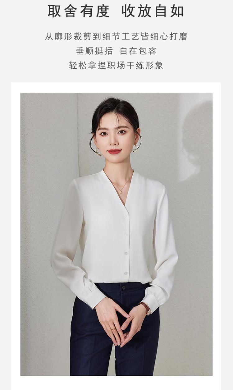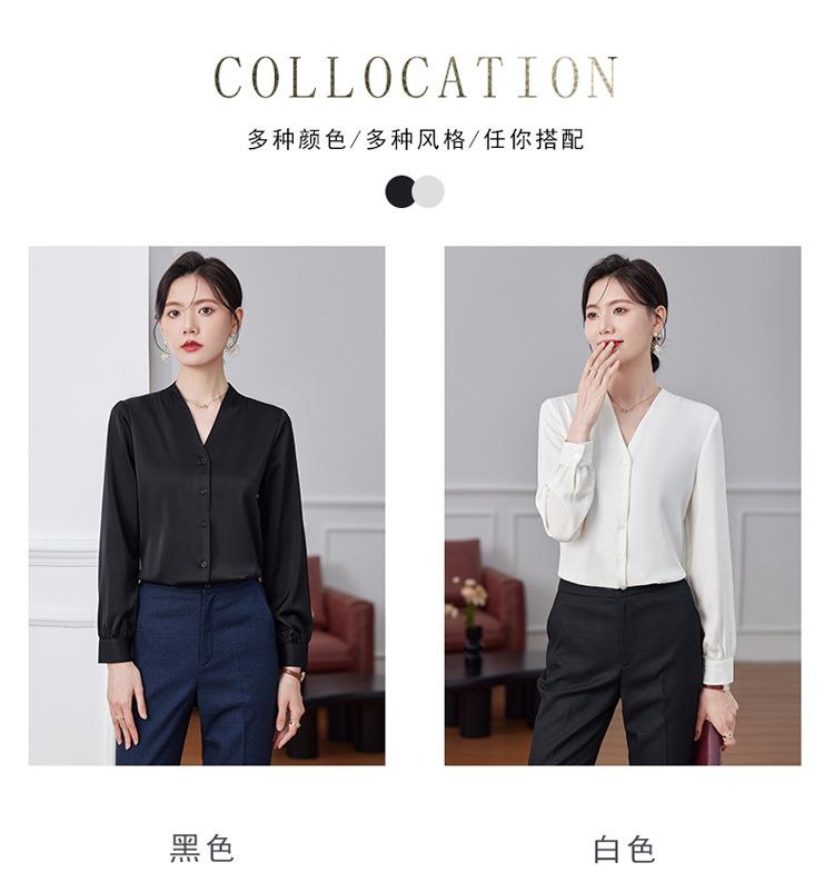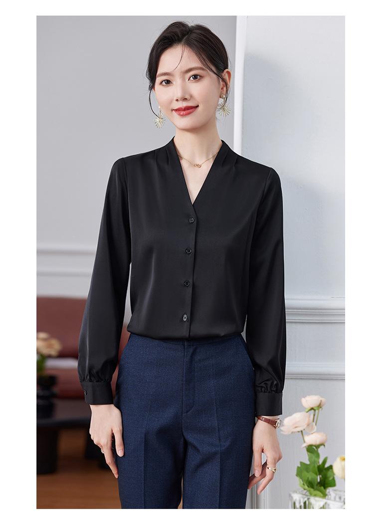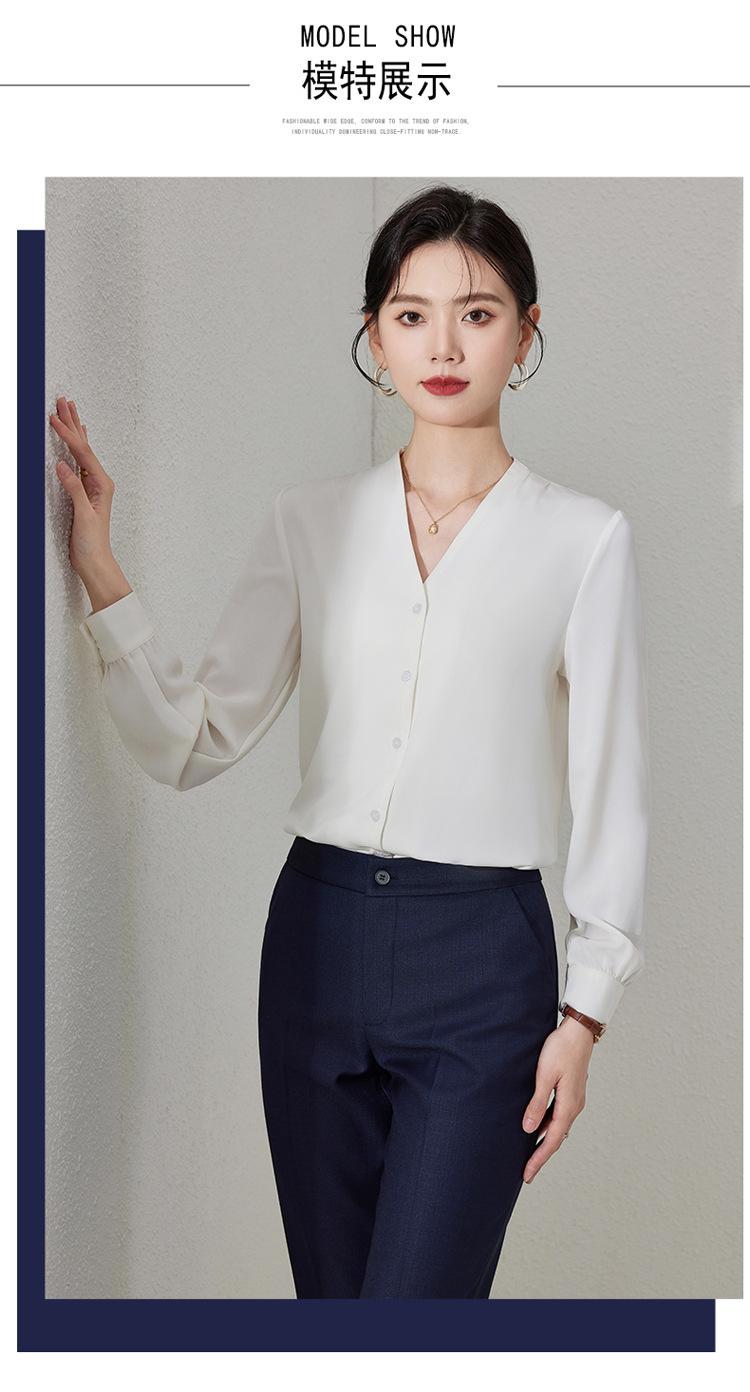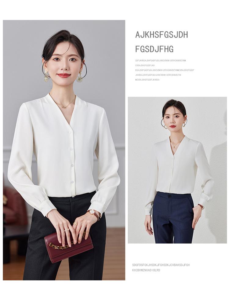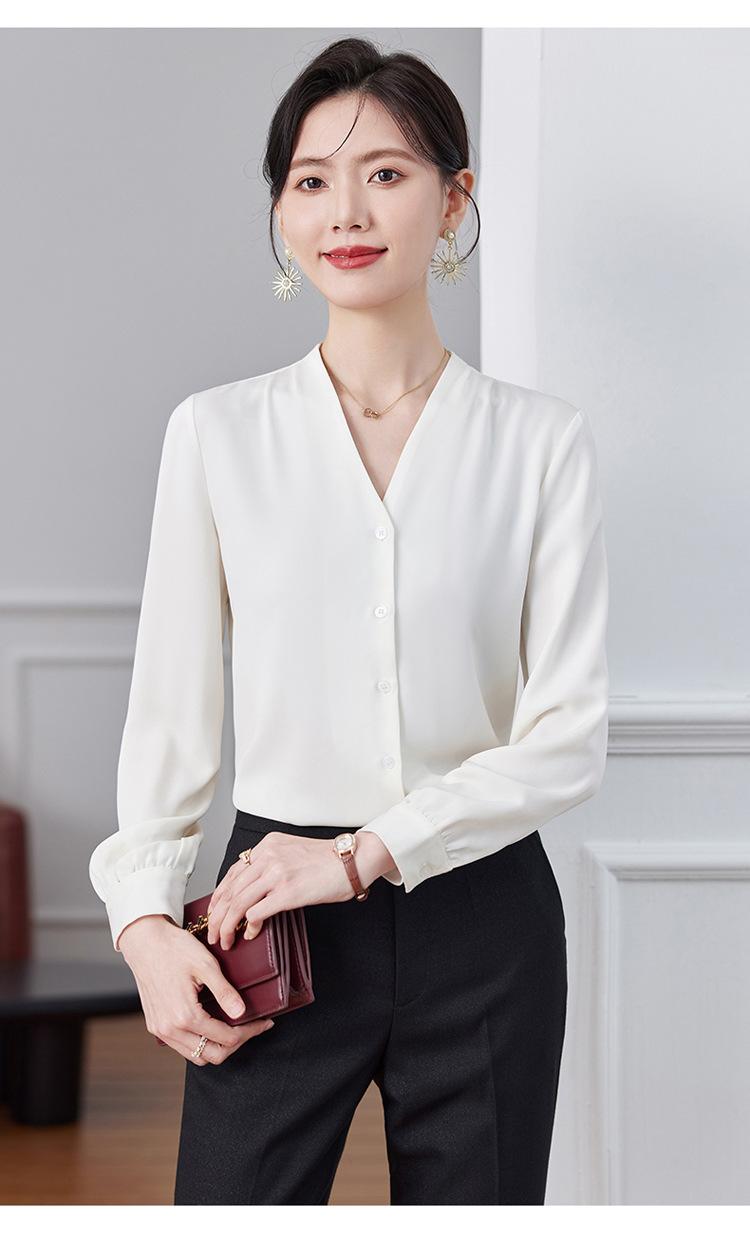 Ropa de Trabajo Nueva de Otoño al Por Mayor Ropa Interior Camisa Holgada de Gasa Cuello en V Camisa de Mujer Camisa de Moda de Manga Larga Ropa de Otoño para Mujer