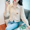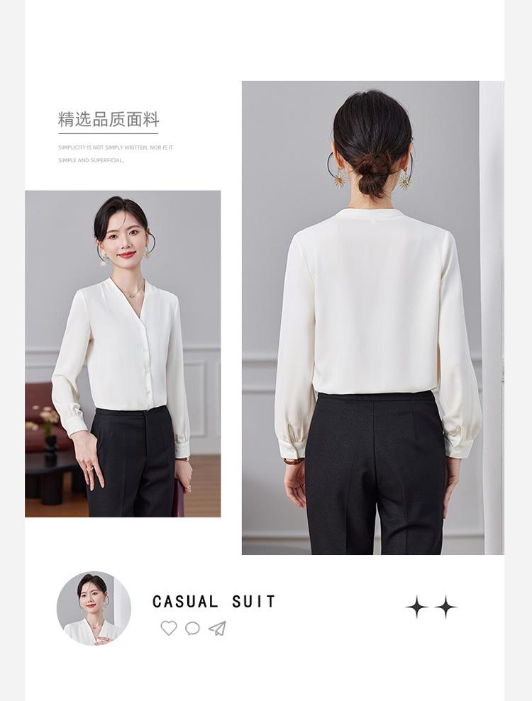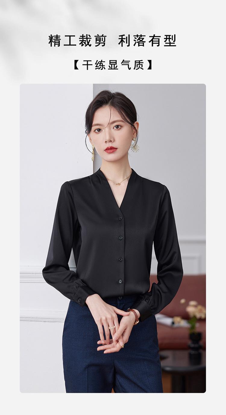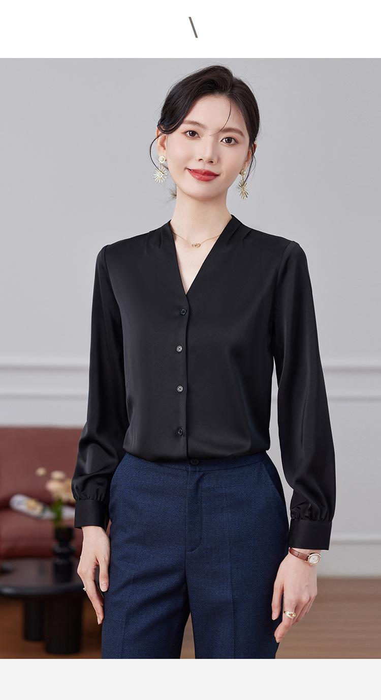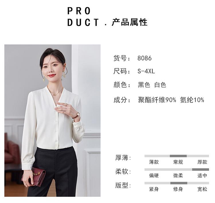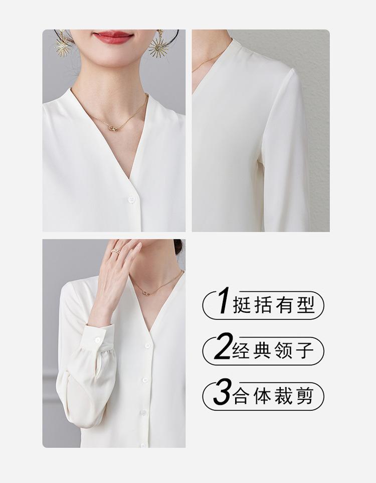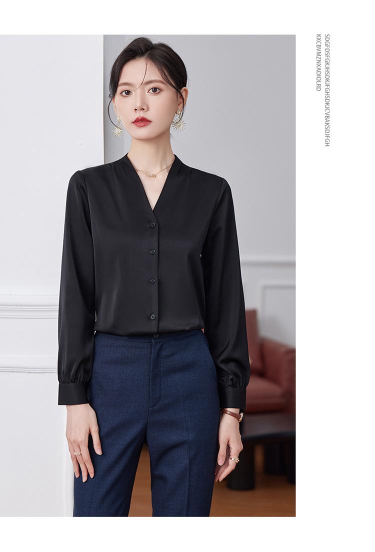 Ropa de Trabajo Nueva de Otoño al Por Mayor Ropa Interior Camisa Holgada de Gasa Cuello en V Camisa de Mujer Camisa de Moda de Manga Larga Ropa de Otoño para Mujer