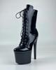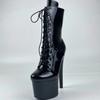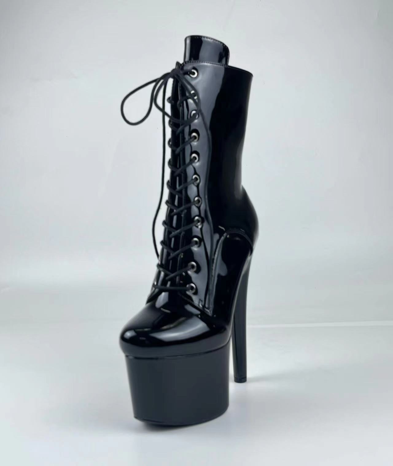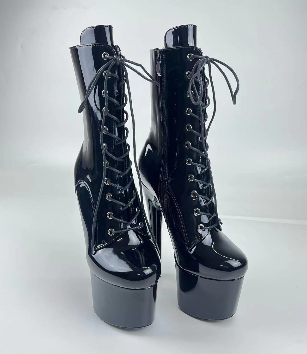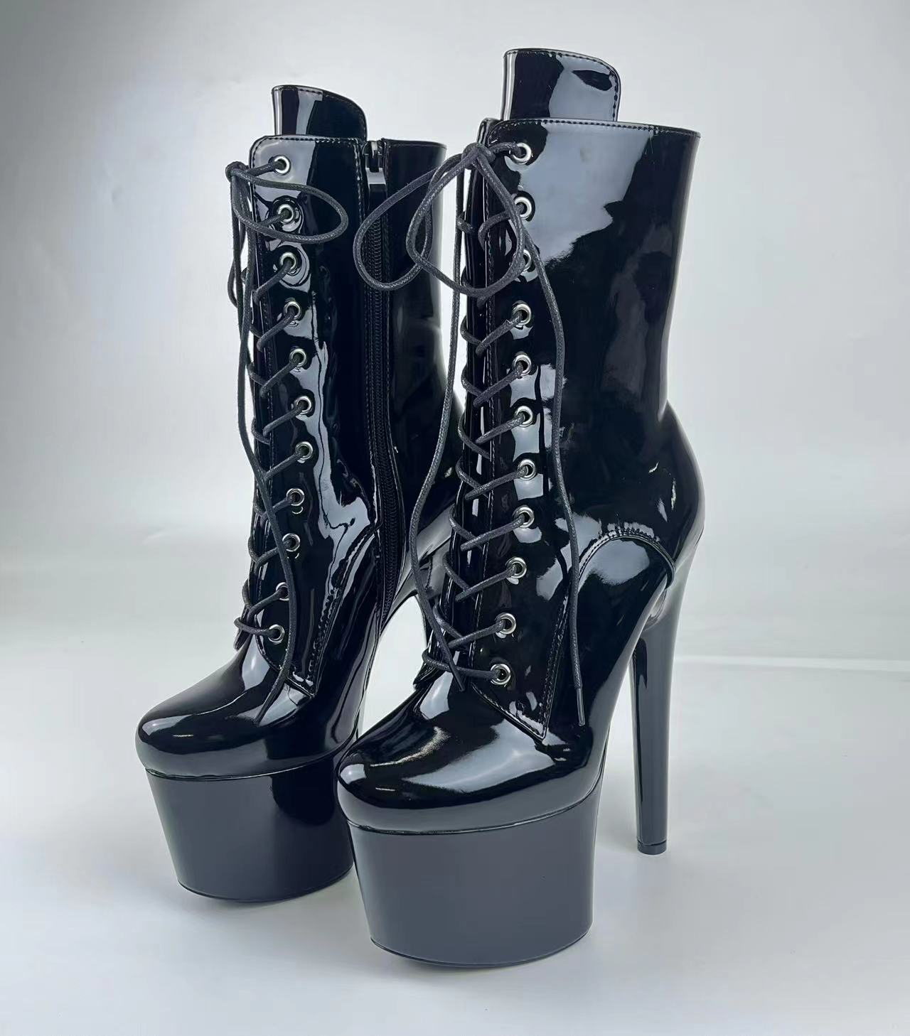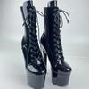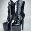 Botas de Moda para Mujer de Estilo Europeo y Americano con Tacón Alto de 17cm de Charol Negro, Botas de Pasarela con Tubo de Acero para Baile