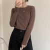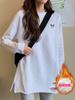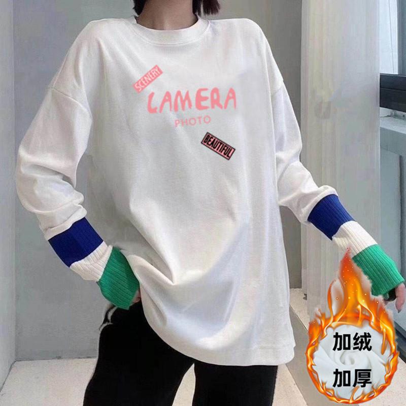 Camiseta de manga larga de polar de doble cara para mujer, talla grande, con forro polar grueso, estilo occidental, de longitud media y base cepillada interior, para otoño e invierno.