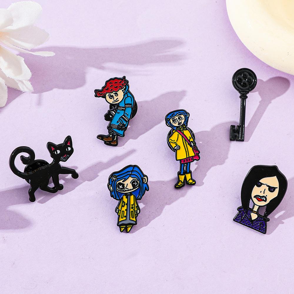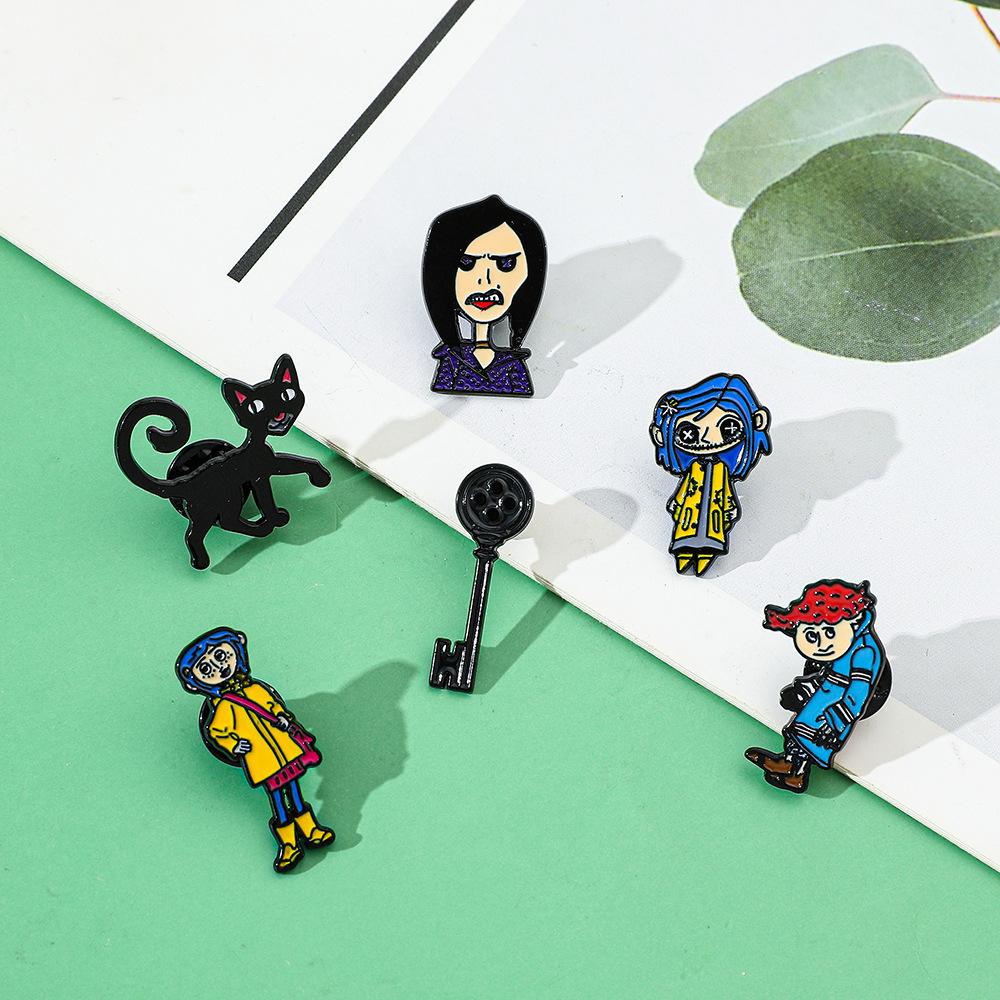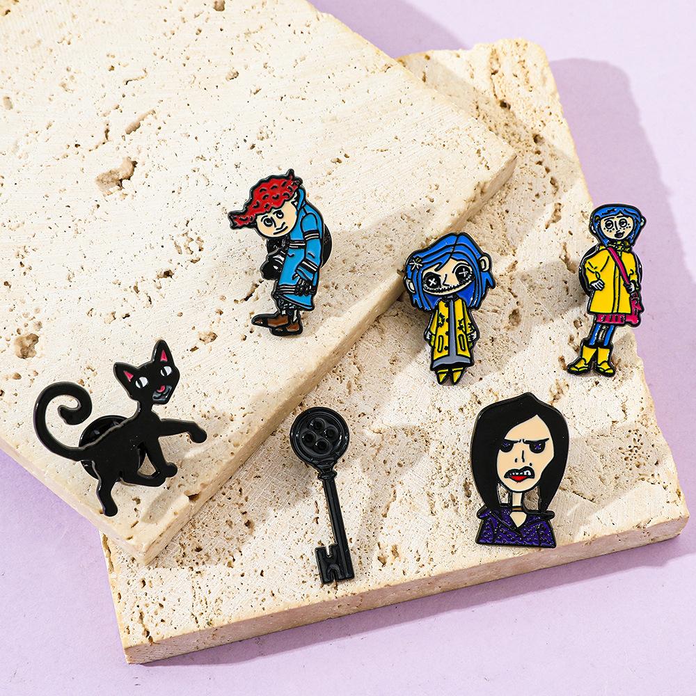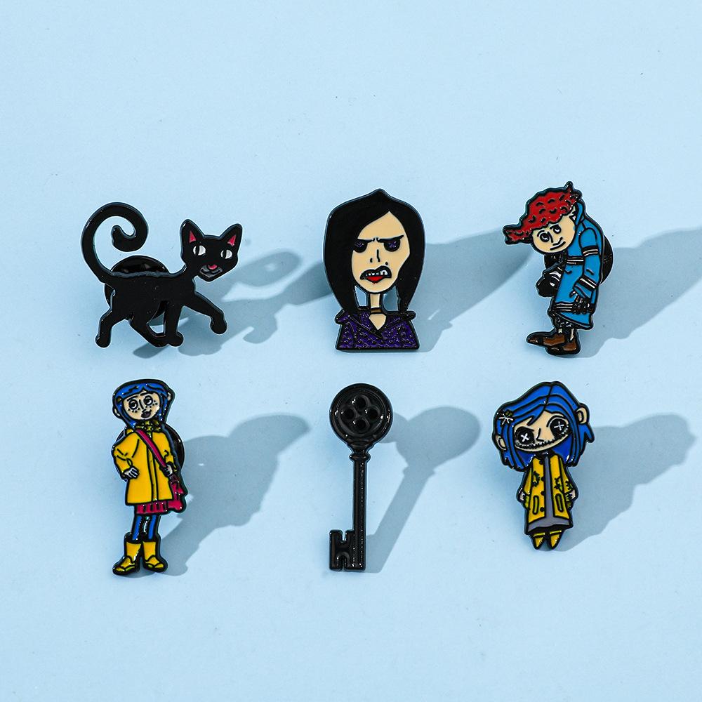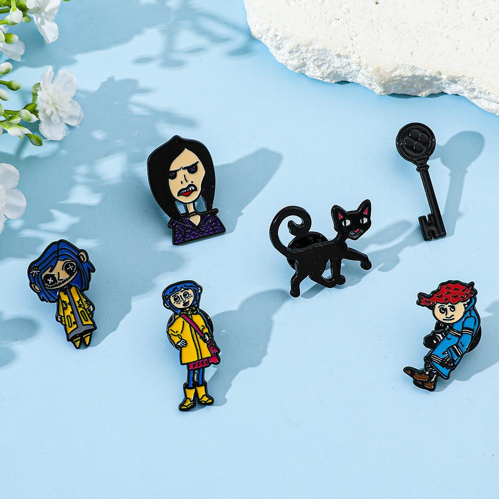 Insignia de metal de personaje de película creativa de dibujos animados madre fantasma gato negro llave aleación gota de aceite broche accesorios decoración