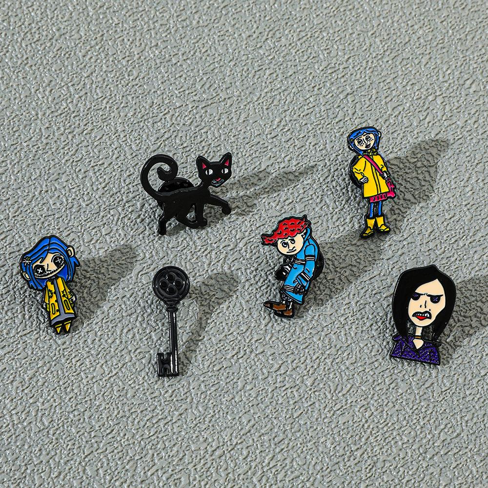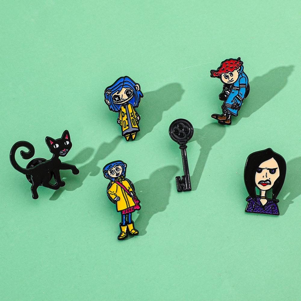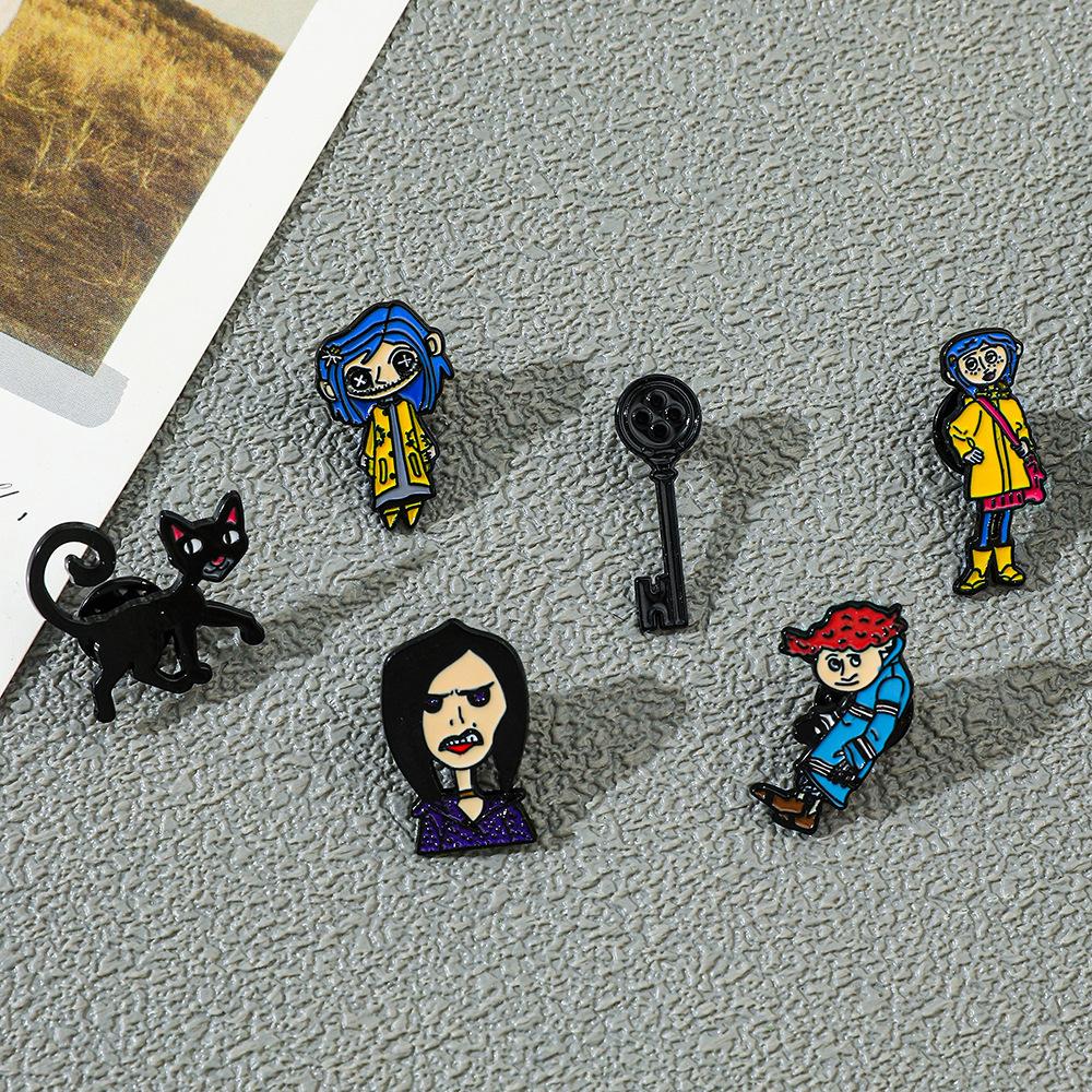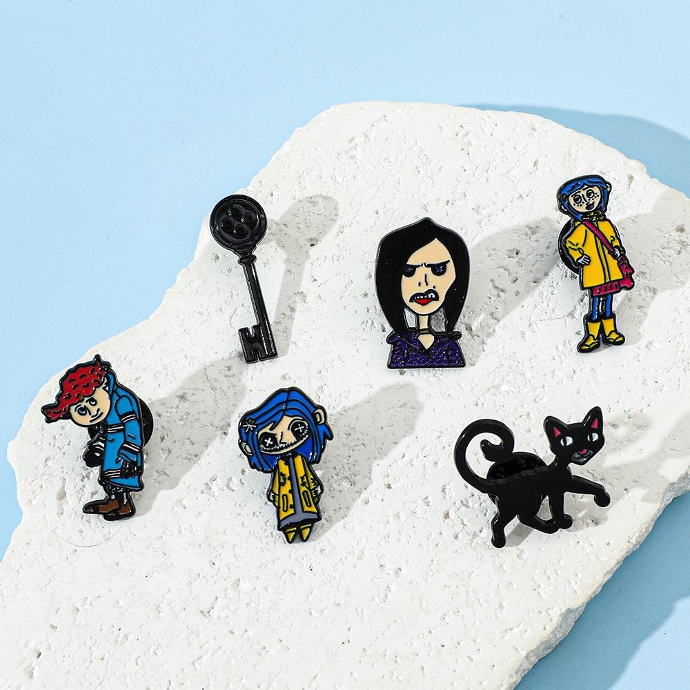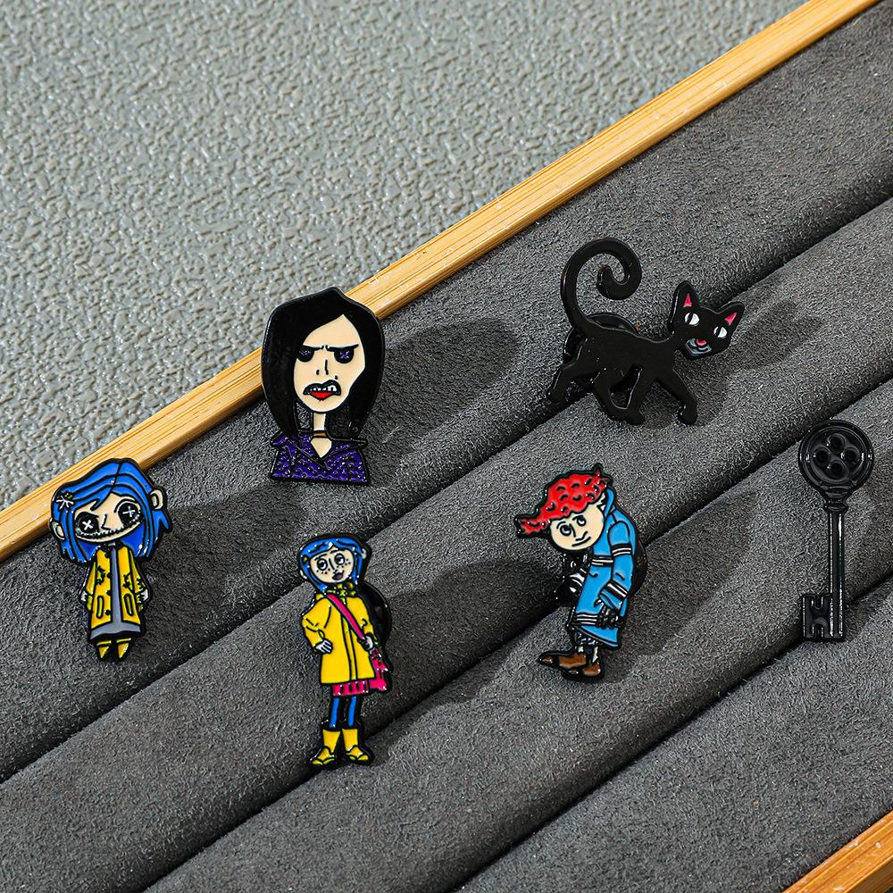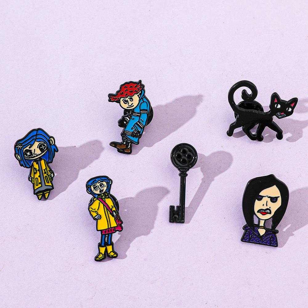 Insignia de metal de personaje de película creativa de dibujos animados madre fantasma gato negro llave aleación gota de aceite broche accesorios decoración