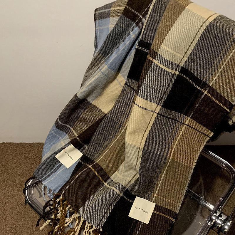 Bufanda a cuadros clásica para mujer, chal de cachemira cálido para otoño e invierno, para niñas estudiantes coreanas, con borlas, venta al por mayor