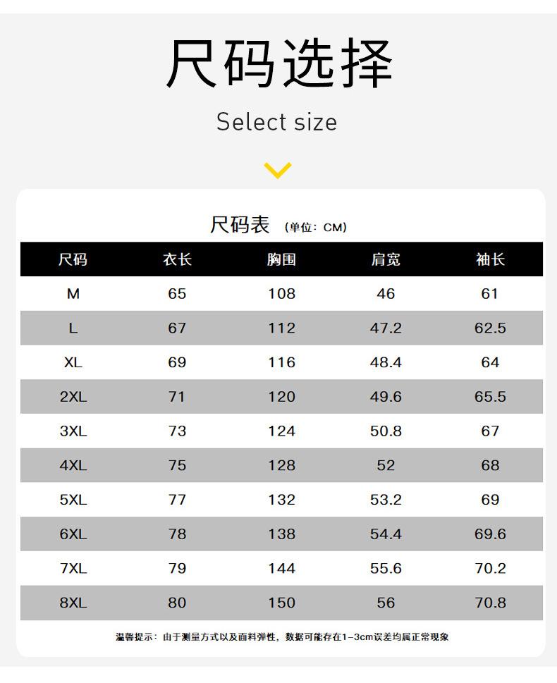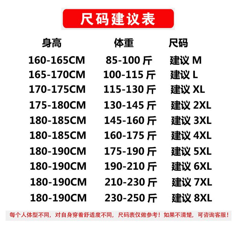 M, L, XL, 2XL, 3XL, 4XL, 5XL, 6XL, 7XL, 8XL