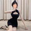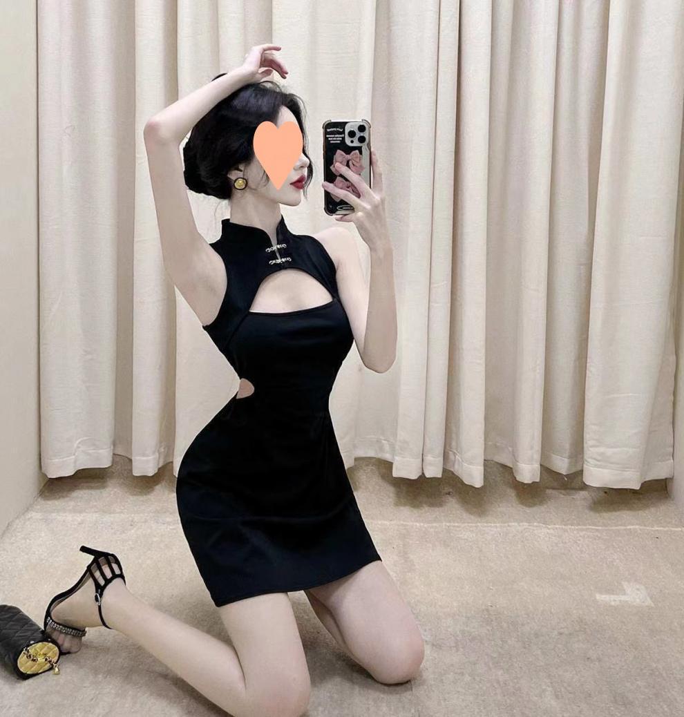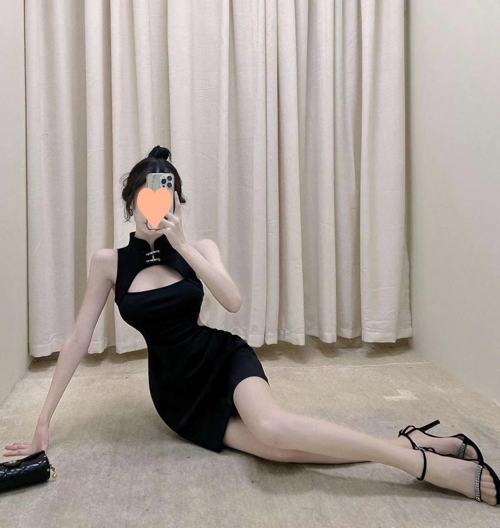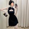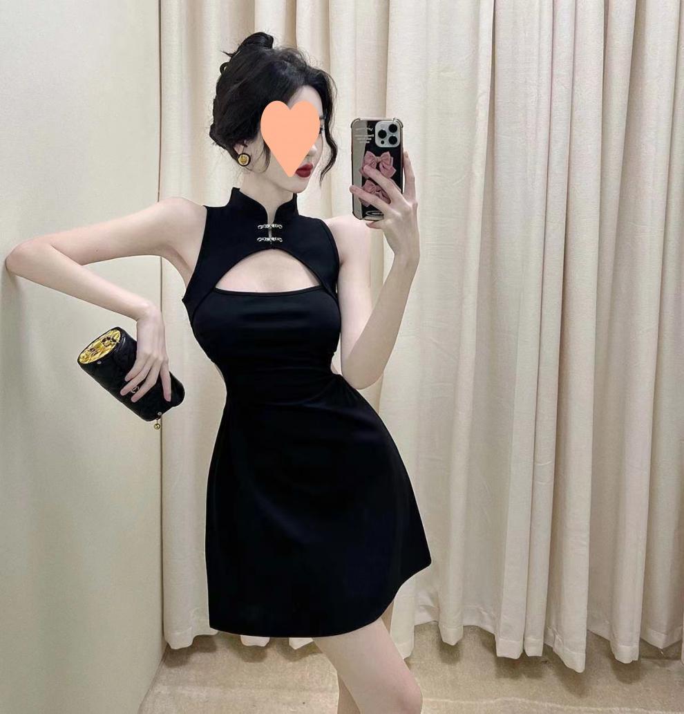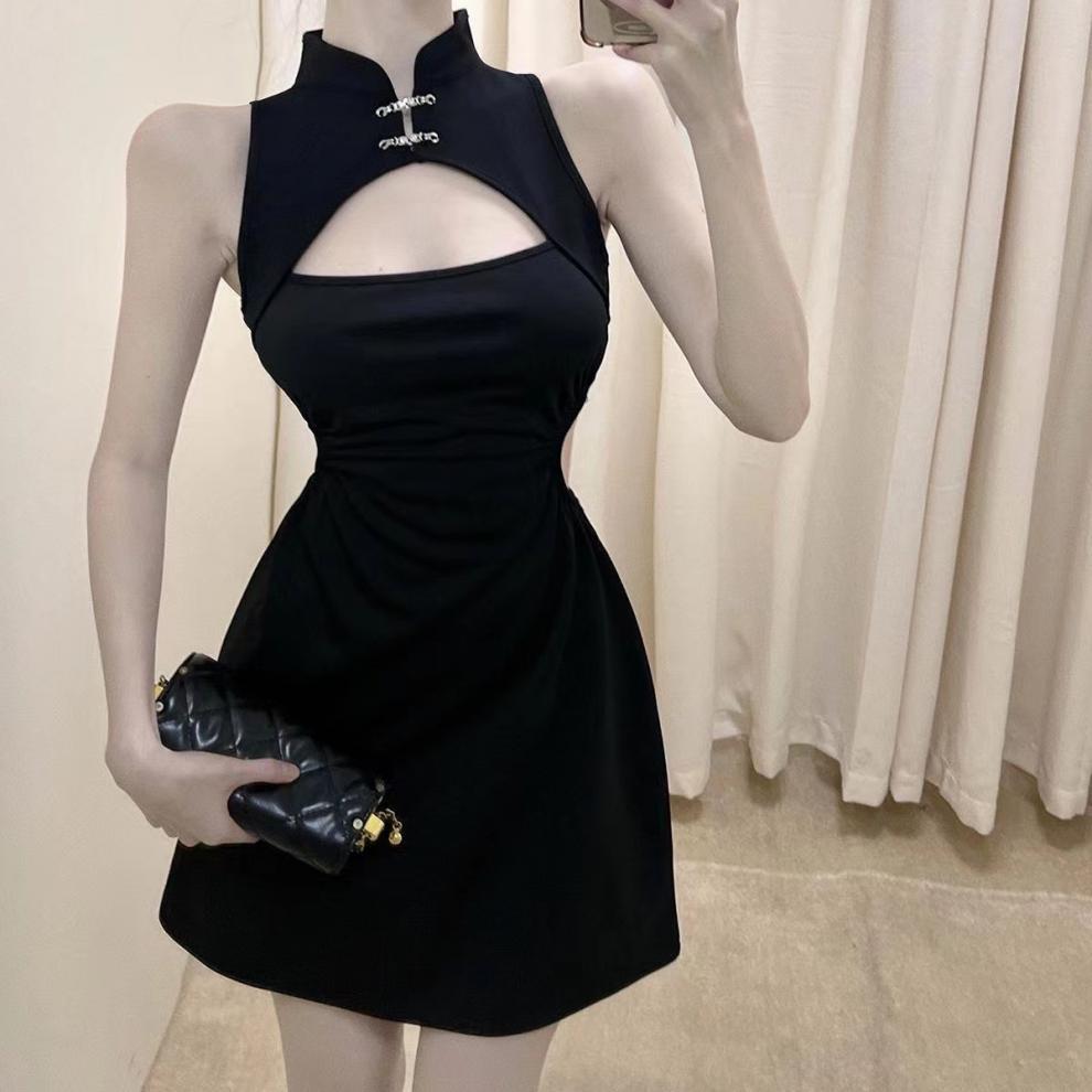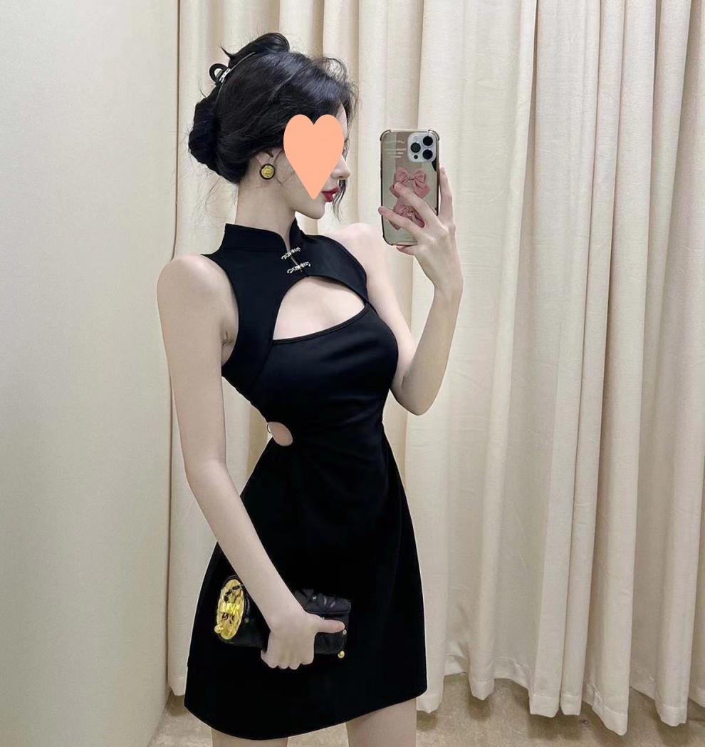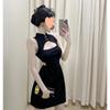 Nuevo vestido cheongsam ajustado de línea A con ancla mejorado y corto negro para chicas jóvenes, elegante y retro.