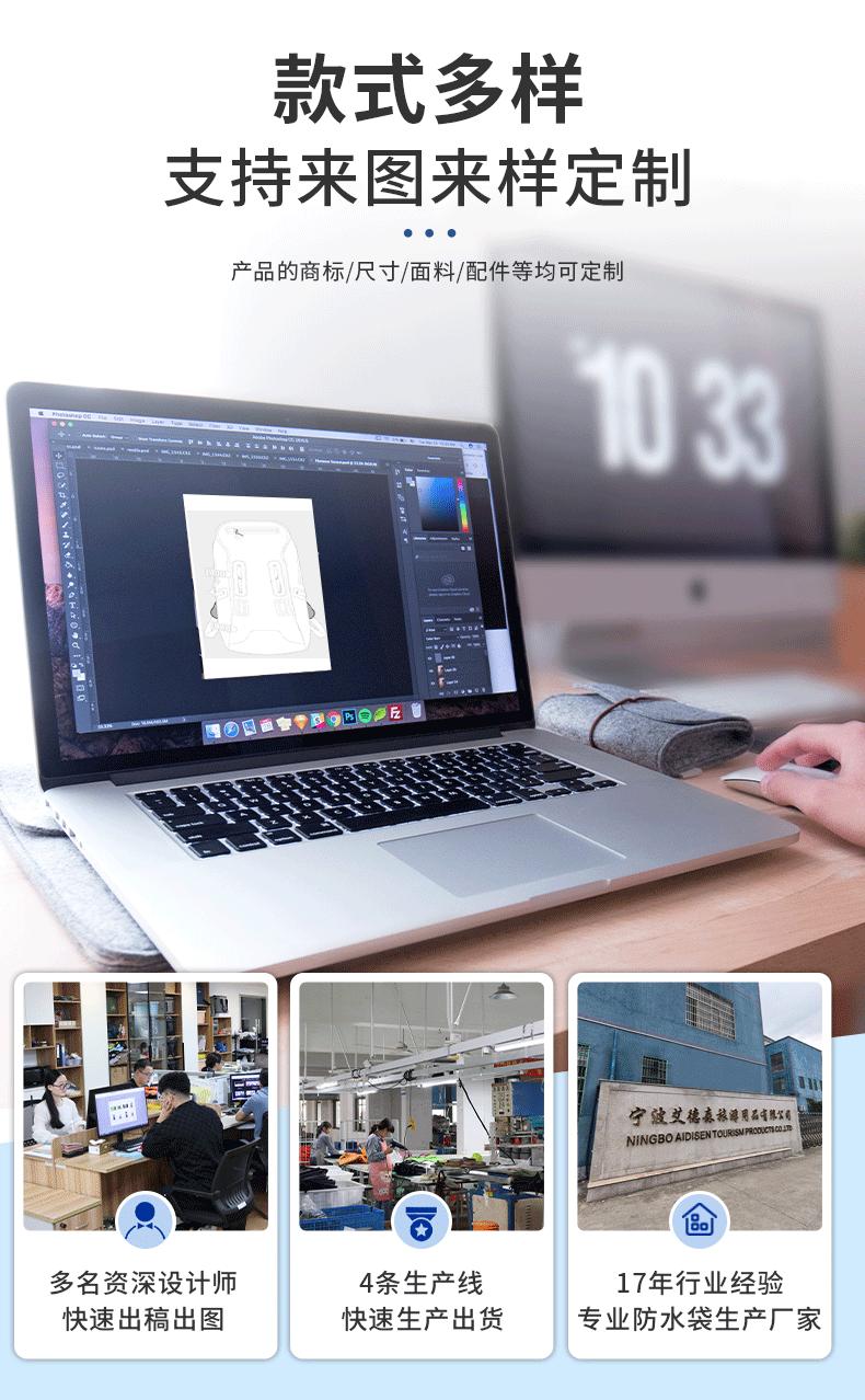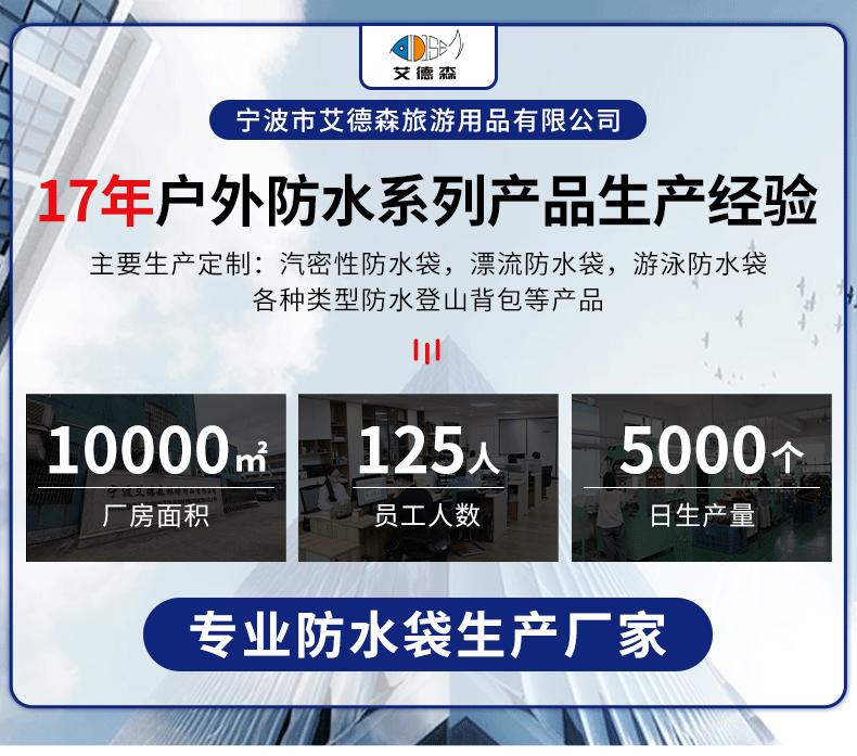 Ningbo Aidesen Tourism Products Co., Ltd. se especializa en la producción de productos impermeables, para acampar y actividades al aire libre, fitness y deportes.Productos. Los principales productos son: diversas bolsas impermeables, mochilas impermeables, boyas de natación, cubos plegables y aislantes térmicos.Bolsas, bolsas térmicas, bolsas de ducha para camping, bolsas de agua para fitness, bolsas de agua para boxeo, bolsas impermeables para bicicletas, bolsas de techo, etc.Cubre un área de más de 10.000 metros cuadrados, tiene más de 125 empleados y cuenta con un equipo de desarrollo técnico profesional.Experiencia en la industria, con capacidades de desarrollo e innovación de productos, la producción anual puede alcanzar más de 5 millones y brindar a los clientesServicio de inspección. La empresa cuenta con la certificación BSCI, sus productos cumplen con las normas REACH de la UE, tienen certificado de impermeabilidad y muchas otras...Patentes independientes, etc. La calidad de los productos de la empresa es estable y confiable, y sus productos se exportan a Alemania, Italia, Reino Unido, Japón y Corea del Sur.Los productos se exportan a Europa, América, Malasia, Singapur y otros países. También mantenemos una estrecha colaboración con numerosas marcas del sector.La empresa ha ganado una buena reputación en los mercados asiático, europeo y americano.