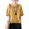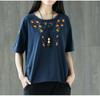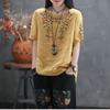 Camiseta de Manga Corta Holgada Bordada Retro de Buena Calidad con Cuello Redondo para Mujer 2025 Nuevo Top Casual de Verano