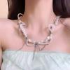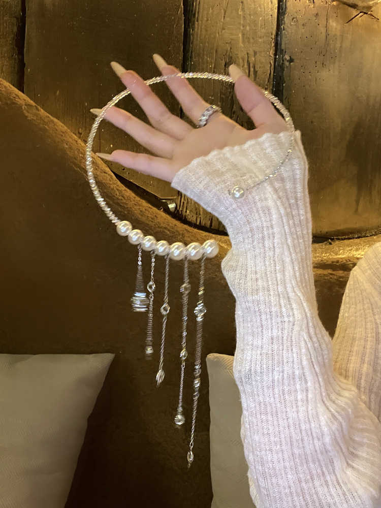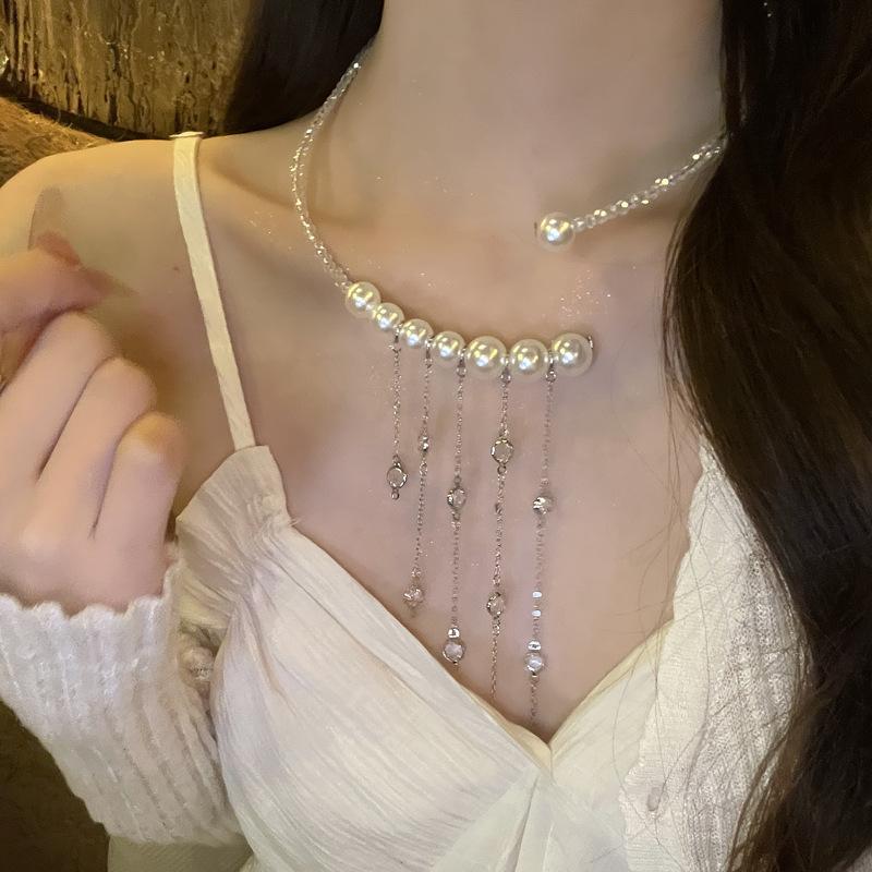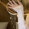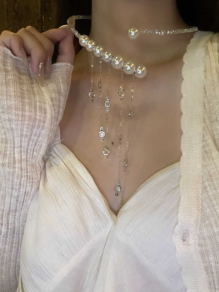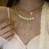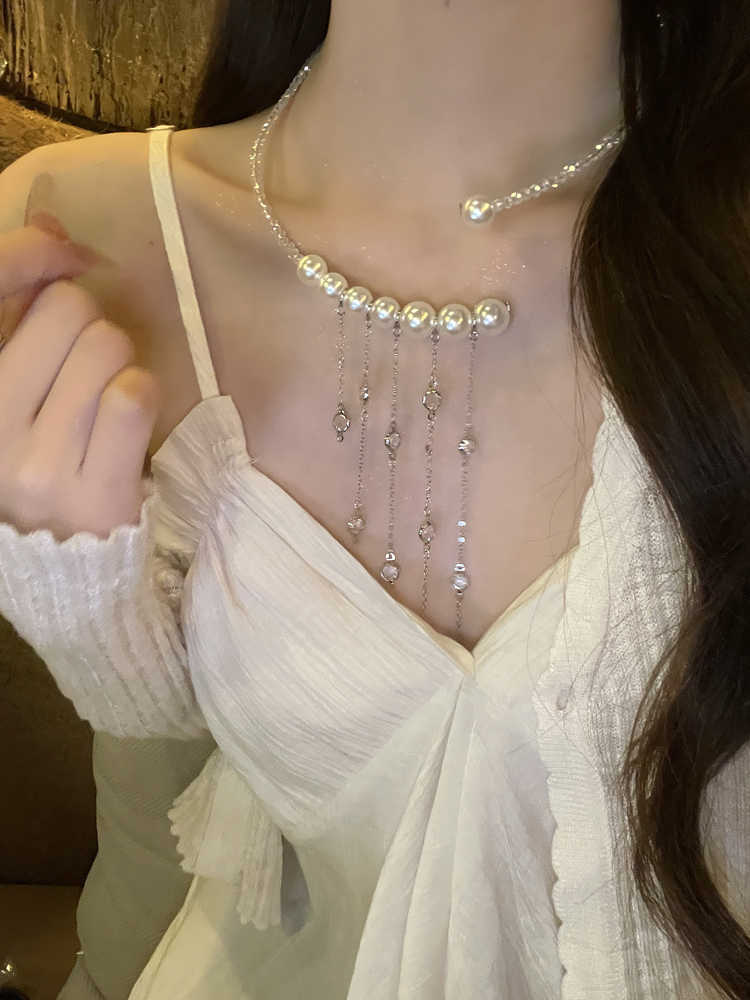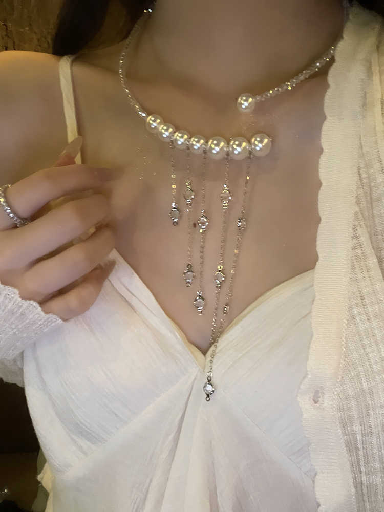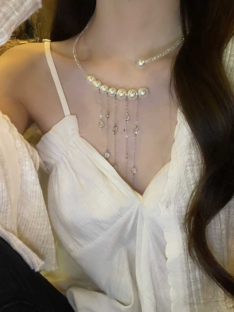 Collar de Borla de Cristal con Cuentas de Lujo Ligero para Mujer, Cadena de Clavícula Elegante Exagerada, Nicho de Alta Gama Único, Cadena de Lana