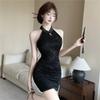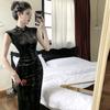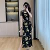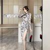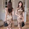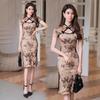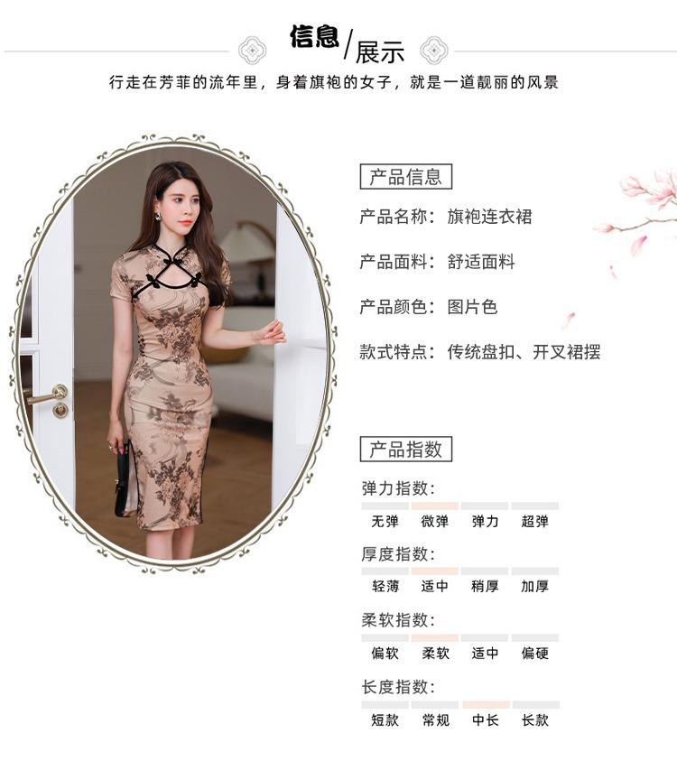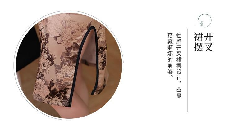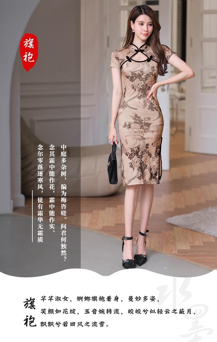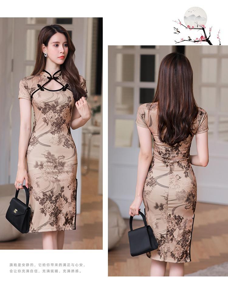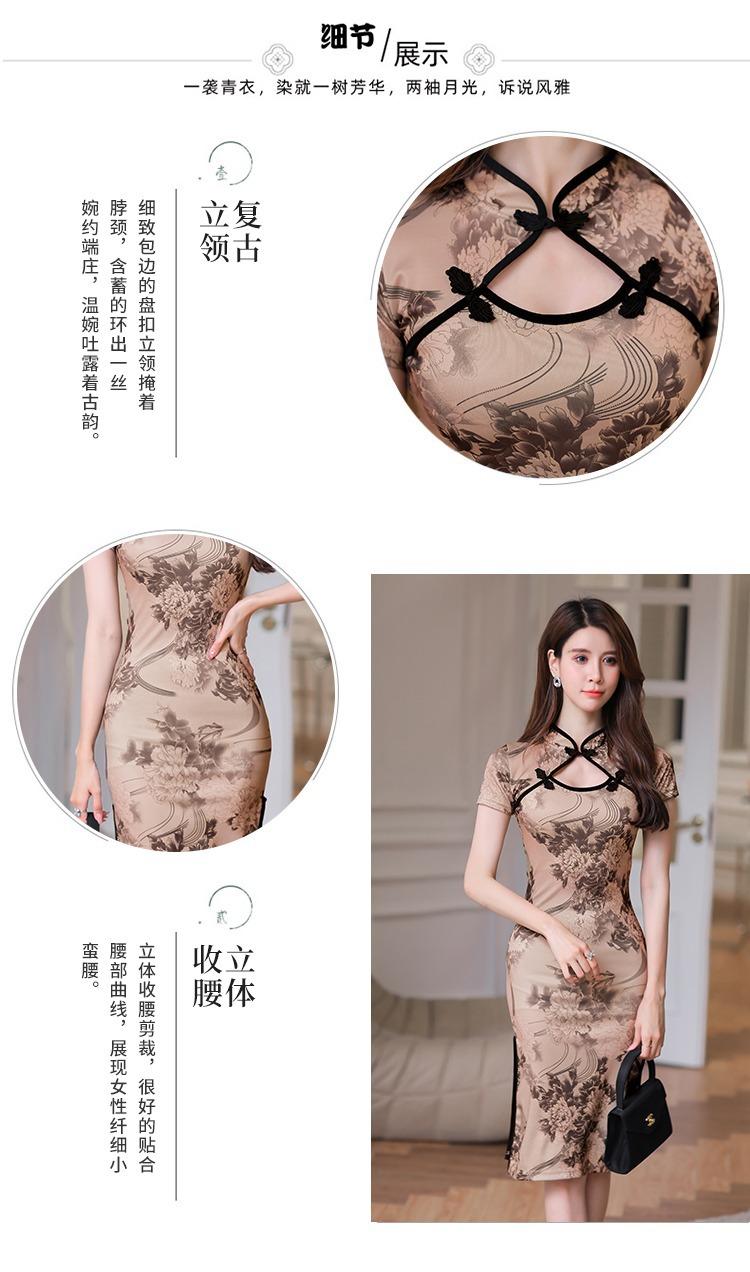 Vestido cheongsam vintage elegante de manga corta con estampado sexy, abertura en la parte delantera, con efecto desgastado, para mujer en verano.