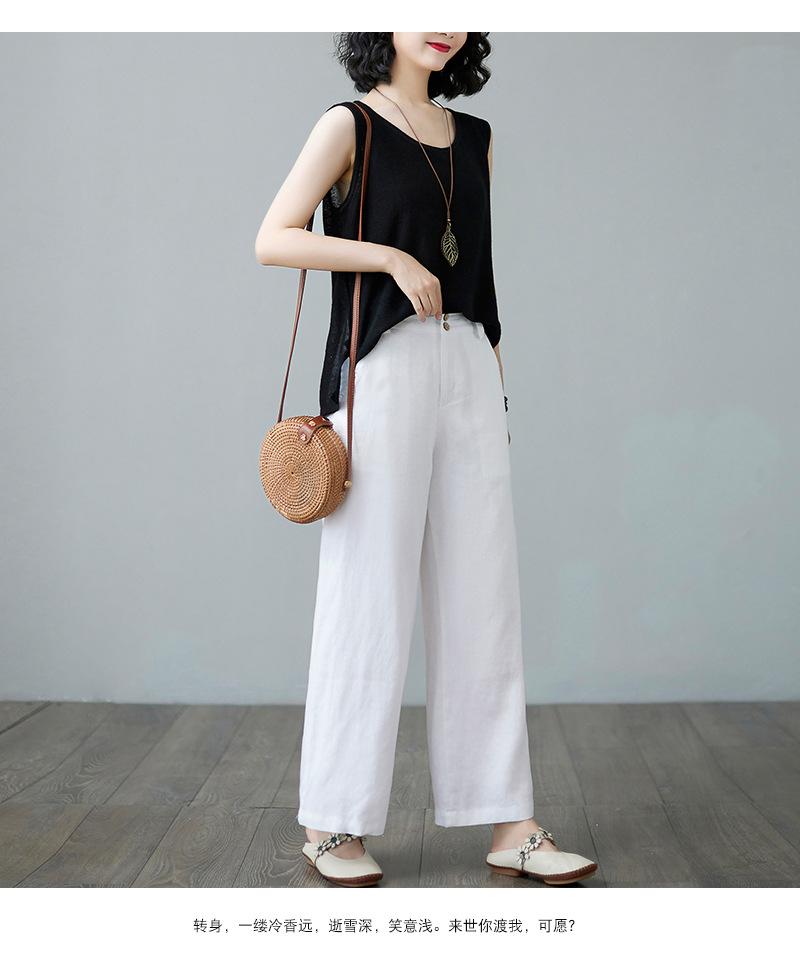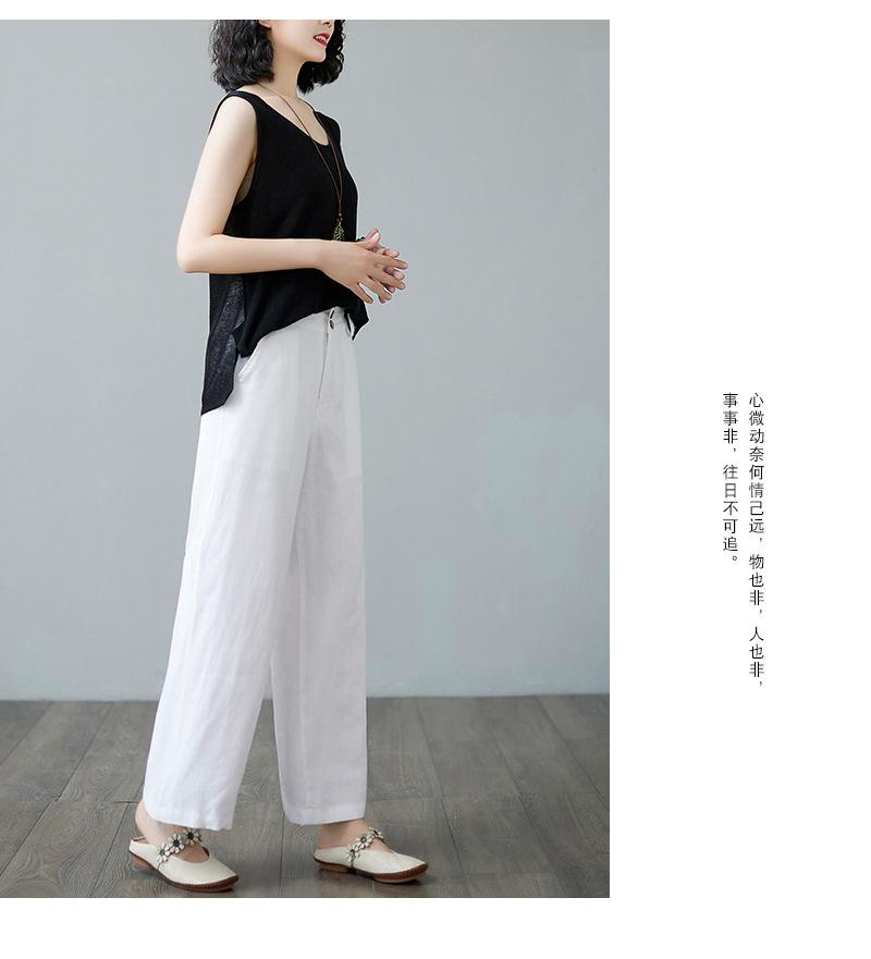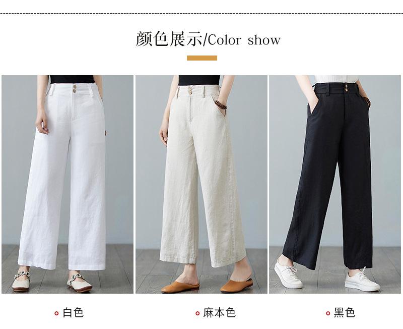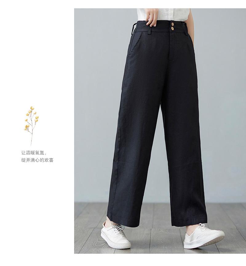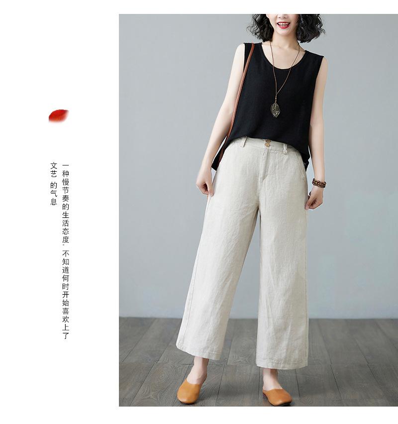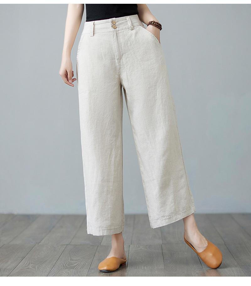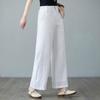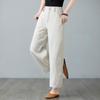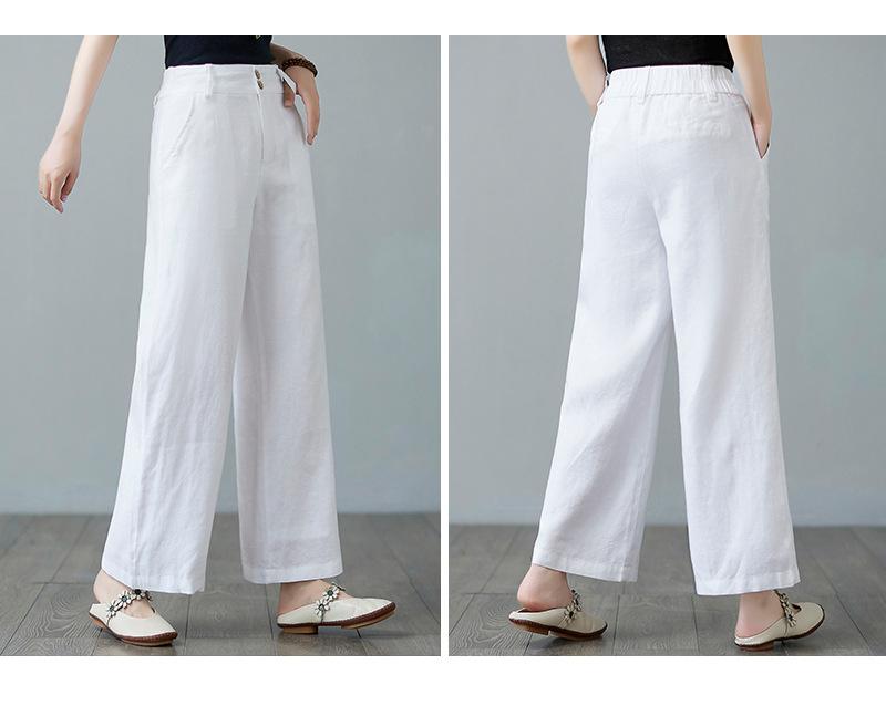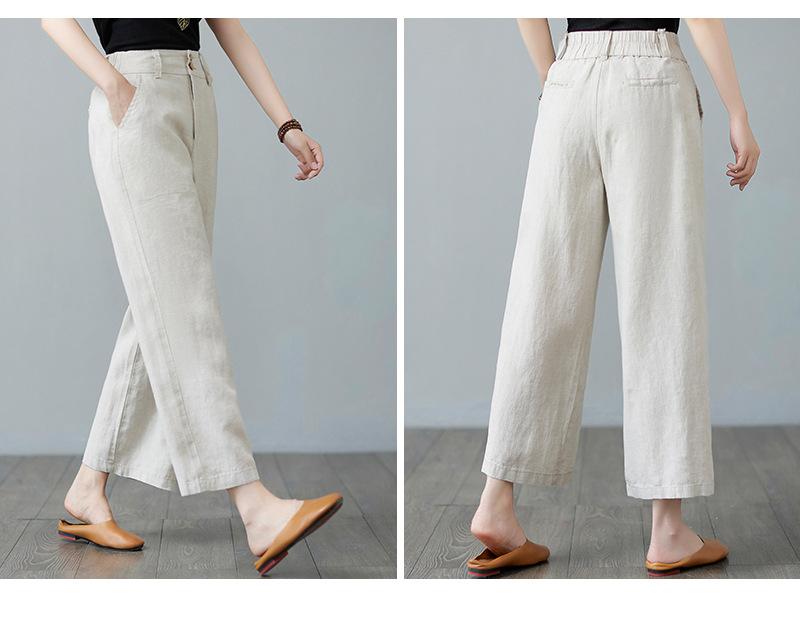 Pantalones rectos con cintura elástica de algodón y lino de color sólido, sueltos y literarios, de verano 2024, para mujer, informales, 9202