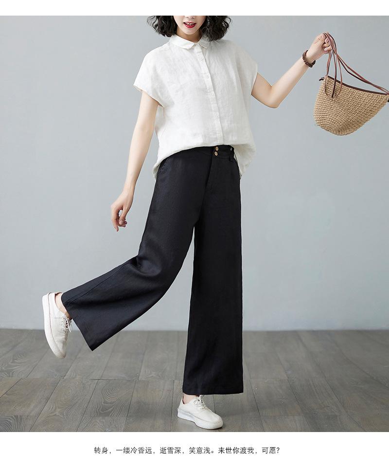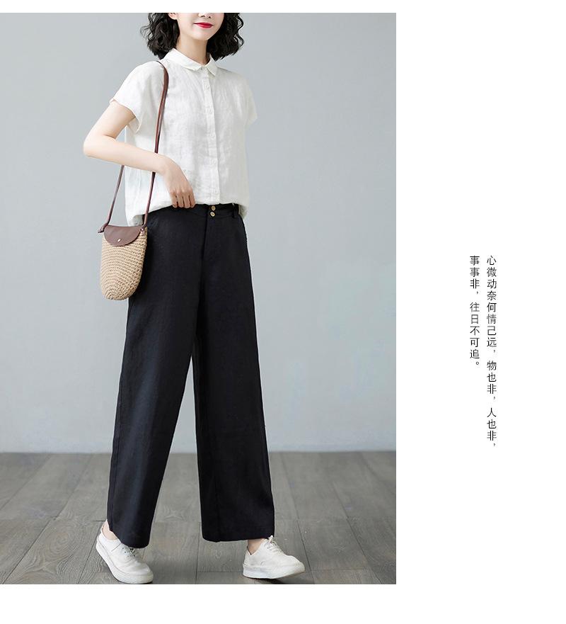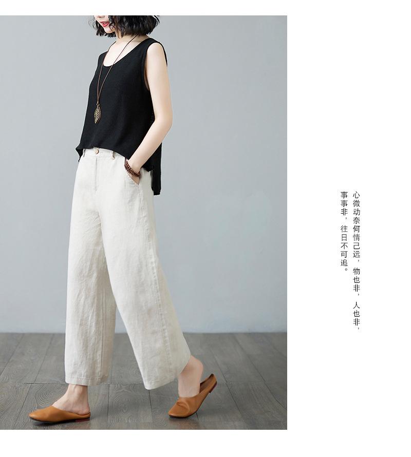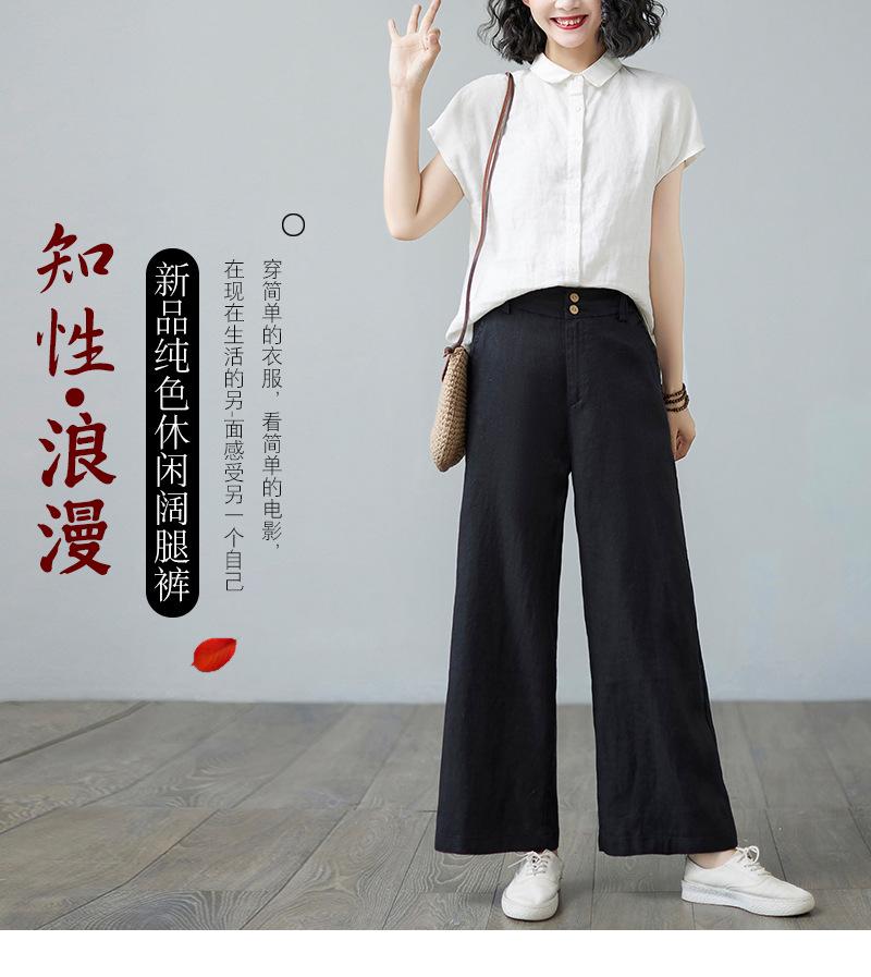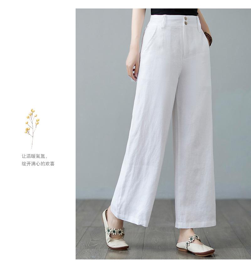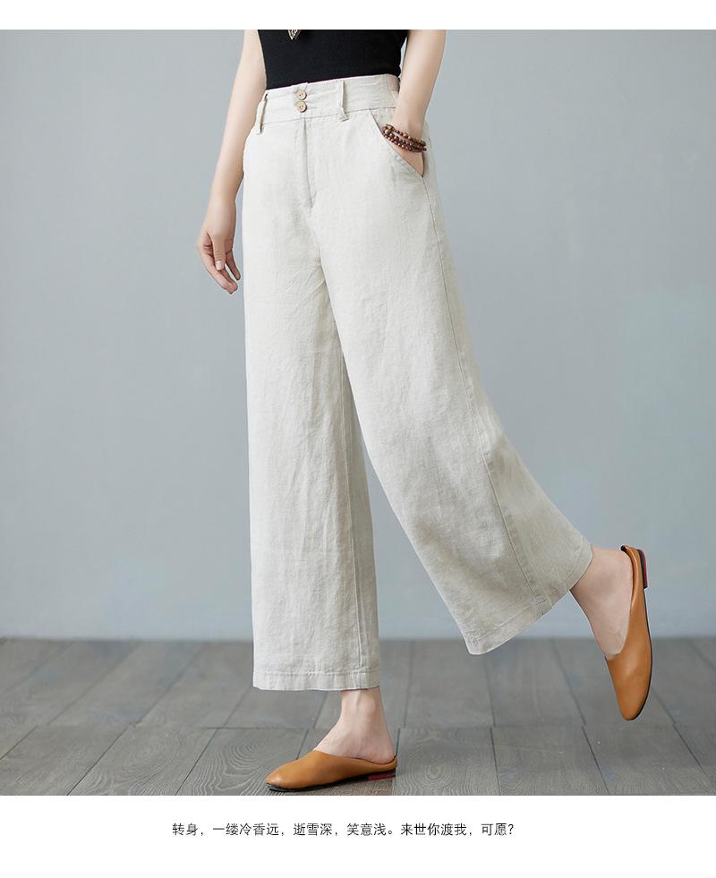 Pantalones rectos con cintura elástica de algodón y lino de color sólido, sueltos y literarios, de verano 2024, para mujer, informales, 9202