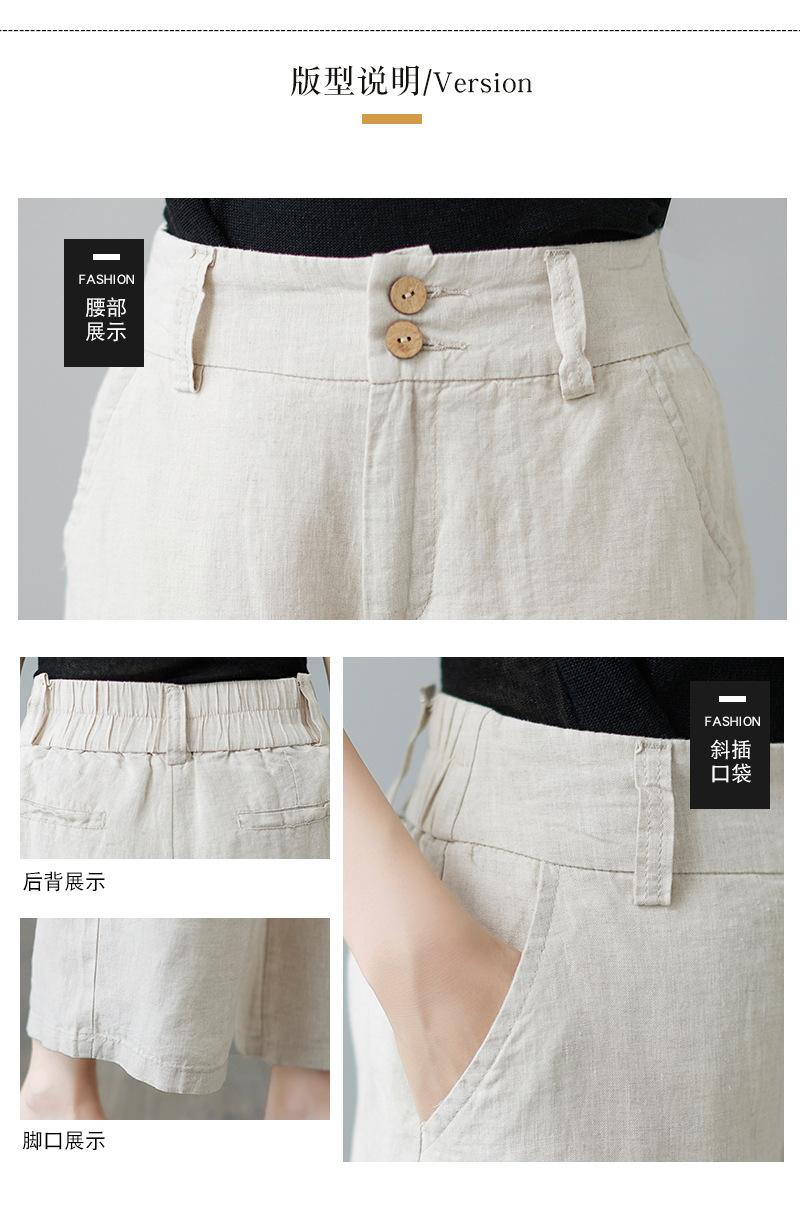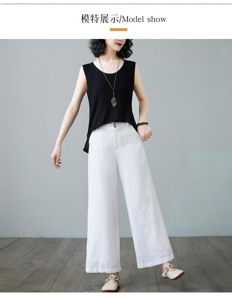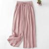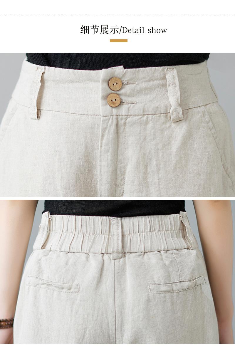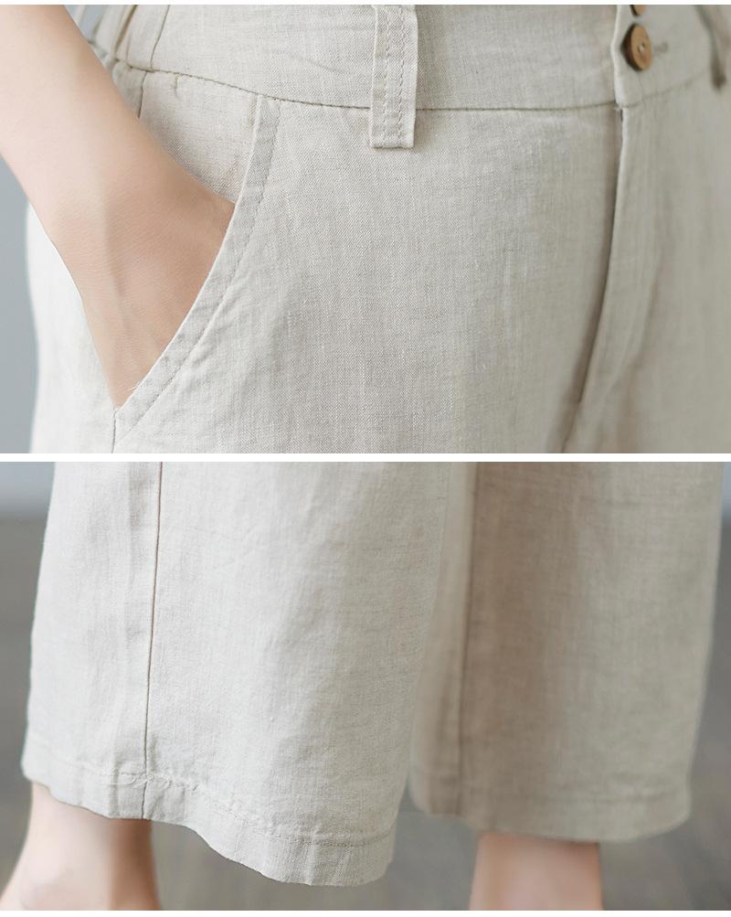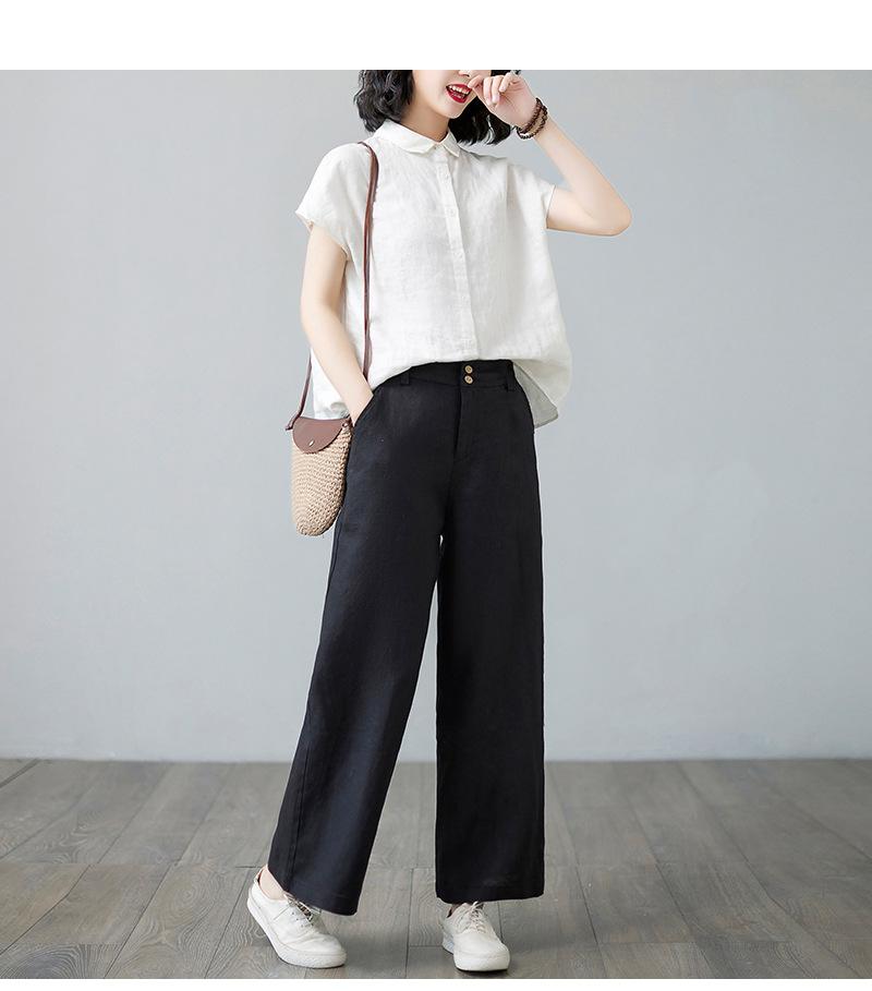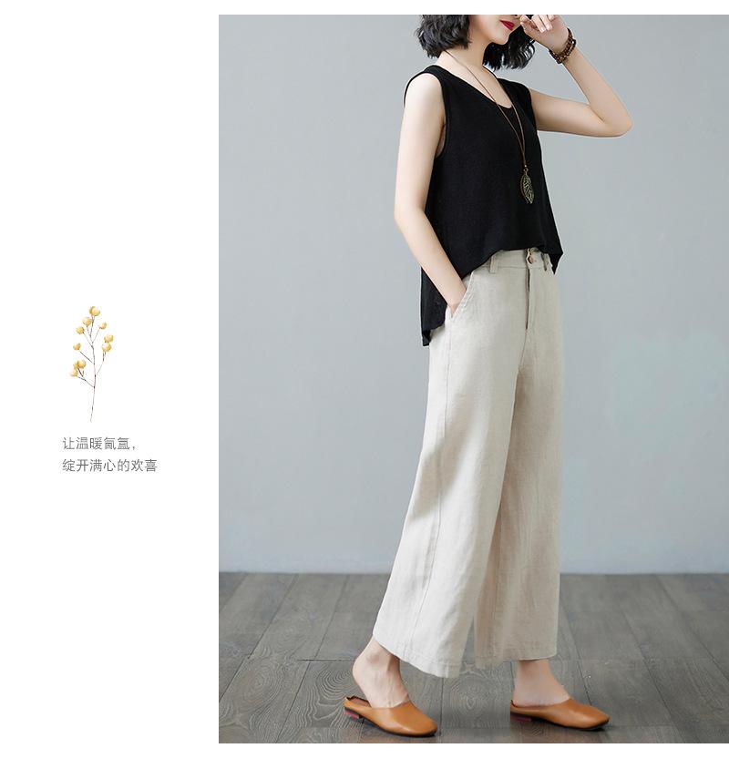 Pantalones rectos con cintura elástica de algodón y lino de color sólido, sueltos y literarios, de verano 2024, para mujer, informales, 9202