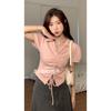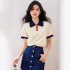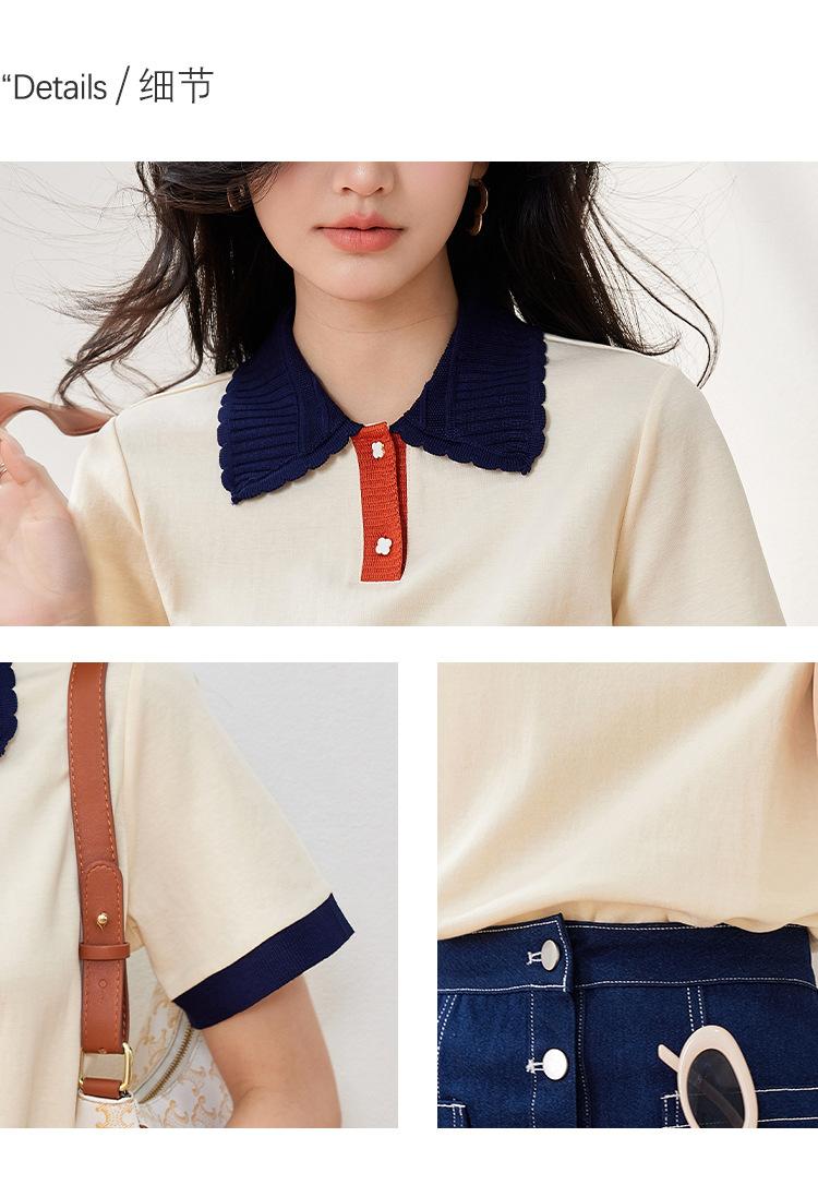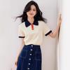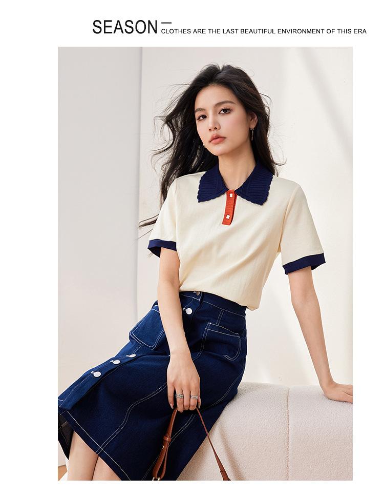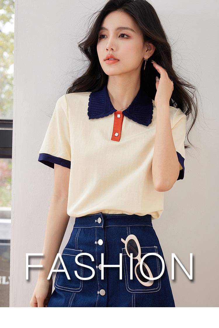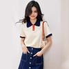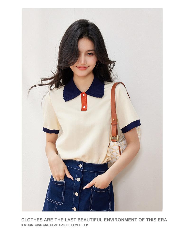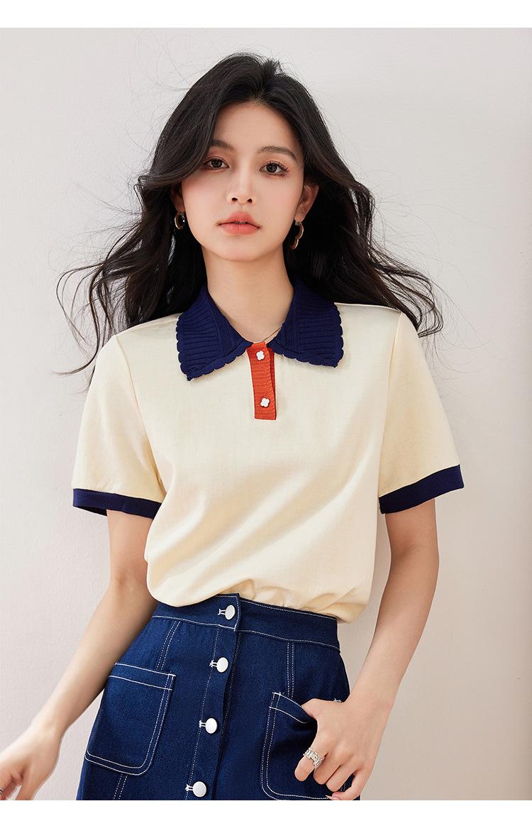 Camiseta tipo polo con contraste de color para mujer, diseño de moda coreana, solapa con costuras sensatas, manga corta, verano 2024