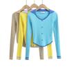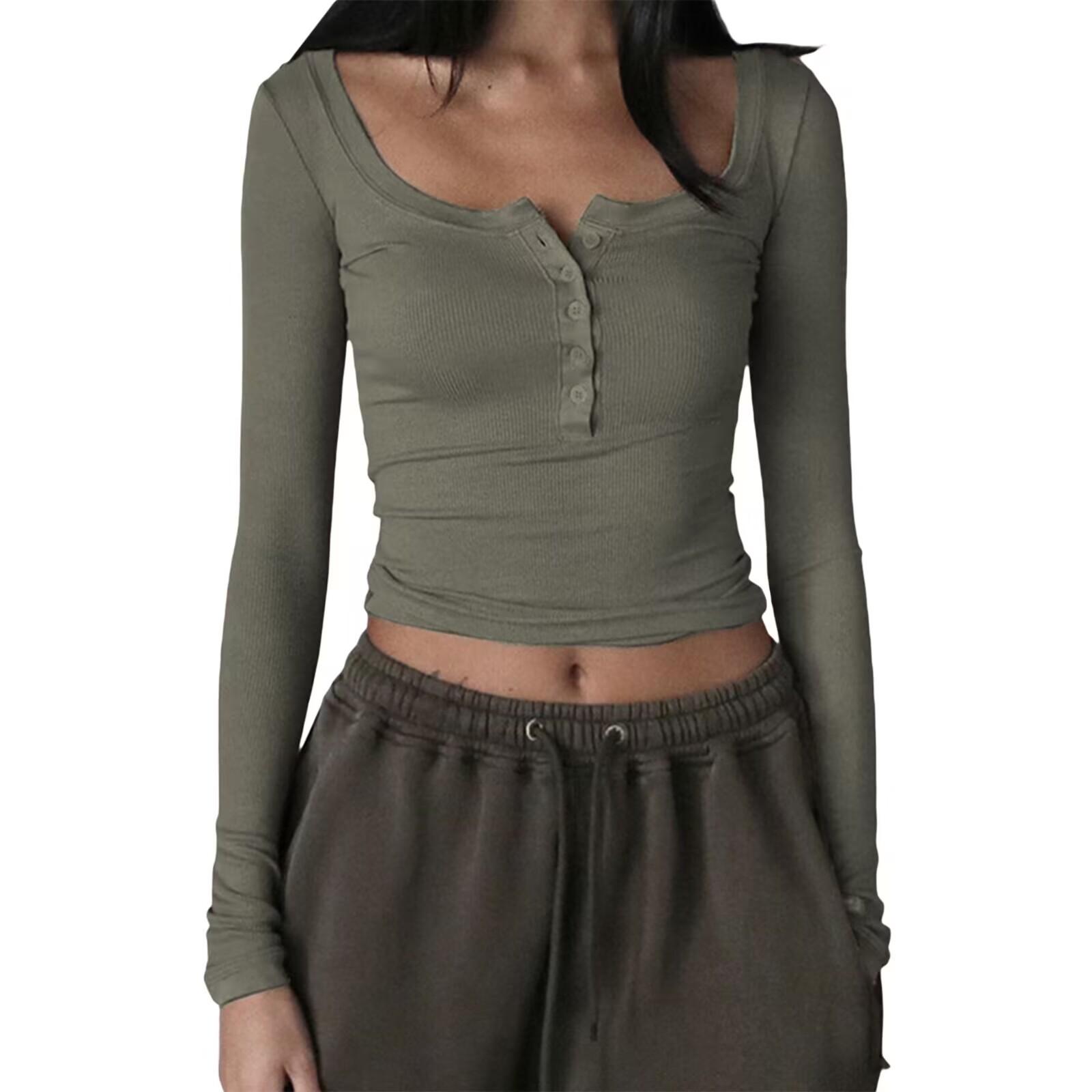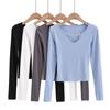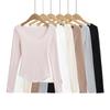 2025 Camiseta básica de cuello redondo grande con botones en el bajo Trbottomyy Estilo europeo y americano Ropa de mujer 2022 Nuevo Top de camiseta ajustada de puro deseo