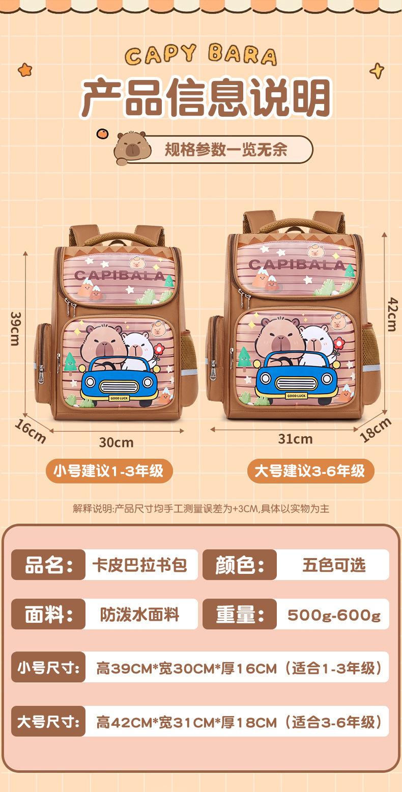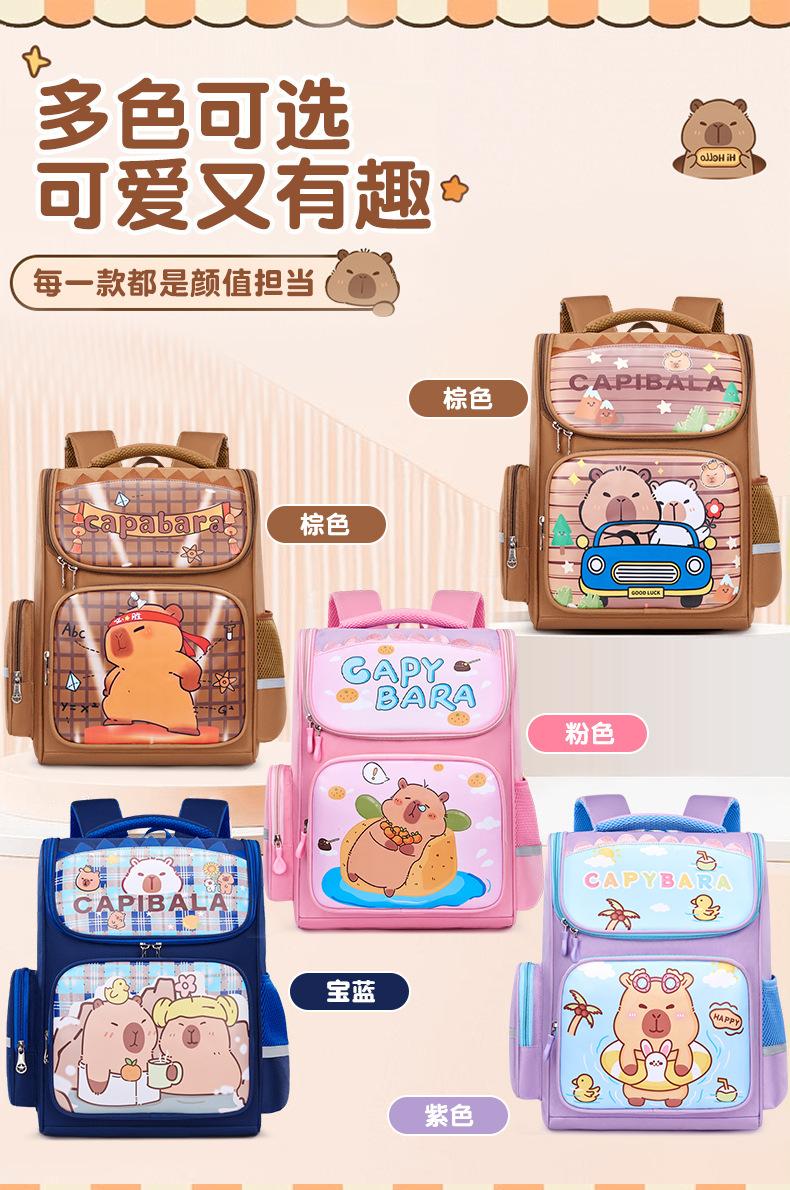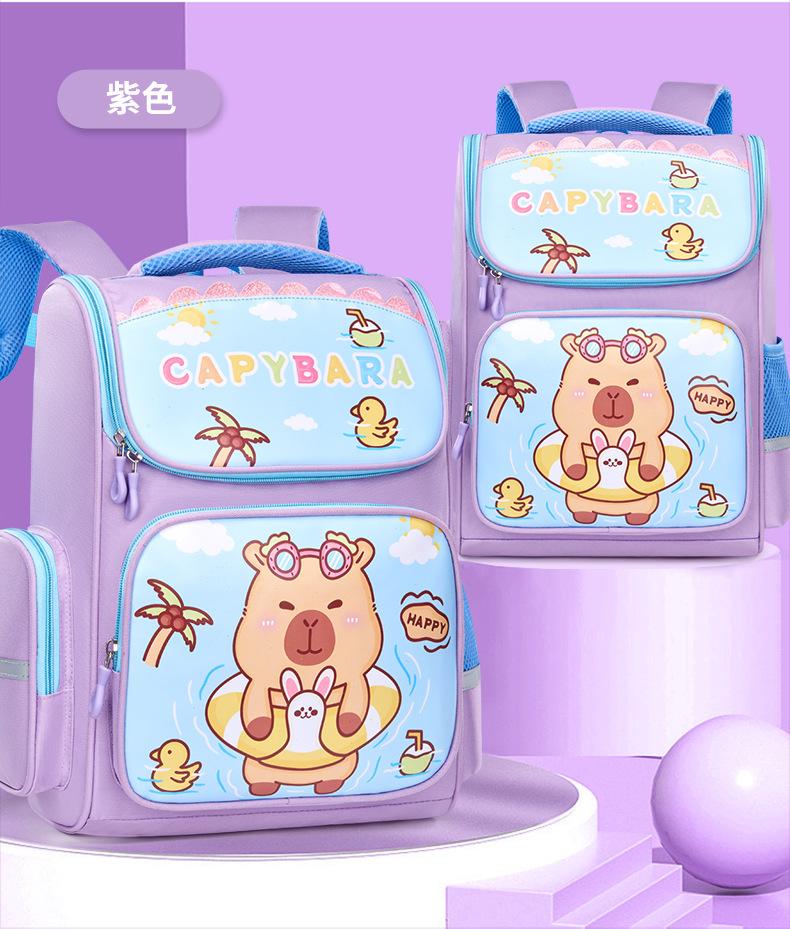 Mochila Escolar Nueva de Capibara para Estudiantes de Primaria para Niños y Niñas Grado 3-6 Gran Capacidad Mochila de Capibara Linda Resistente al Desgaste