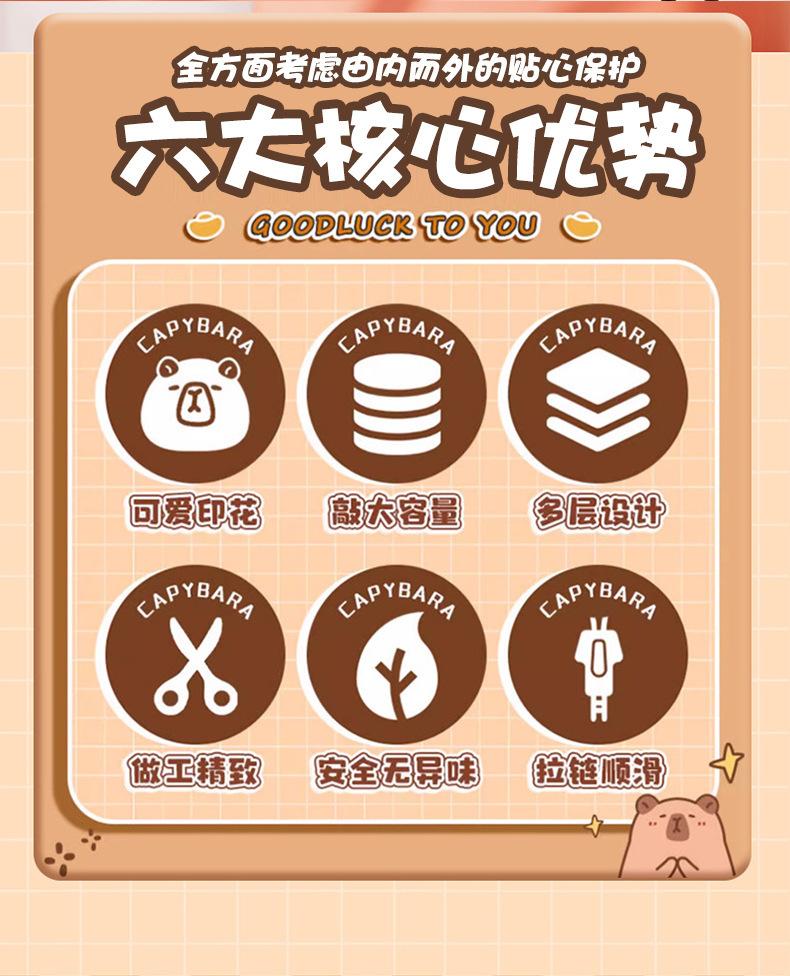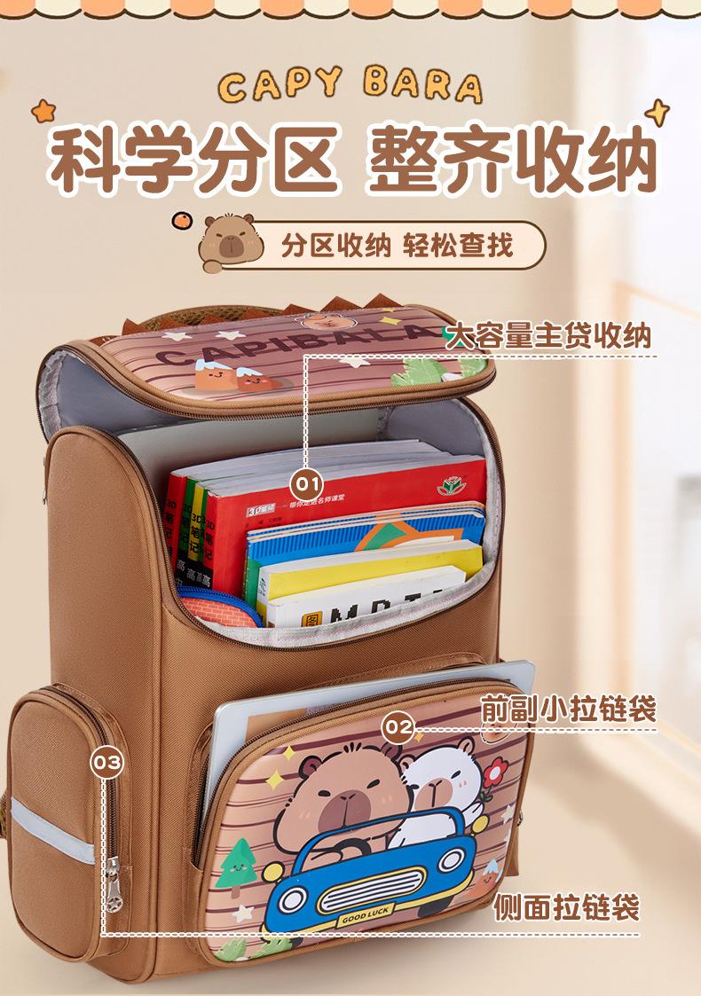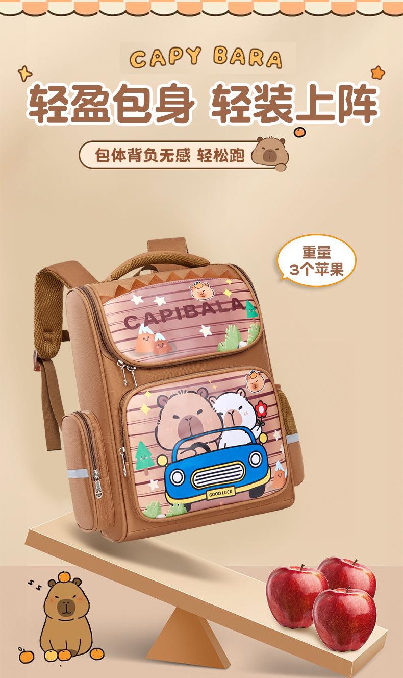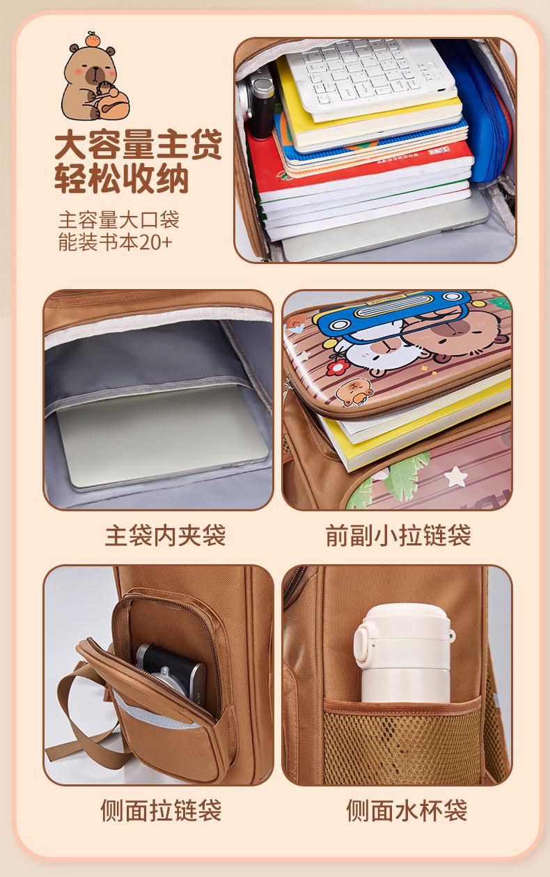 Mochila Escolar Nueva de Capibara para Estudiantes de Primaria para Niños y Niñas Grado 3-6 Gran Capacidad Mochila de Capibara Linda Resistente al Desgaste