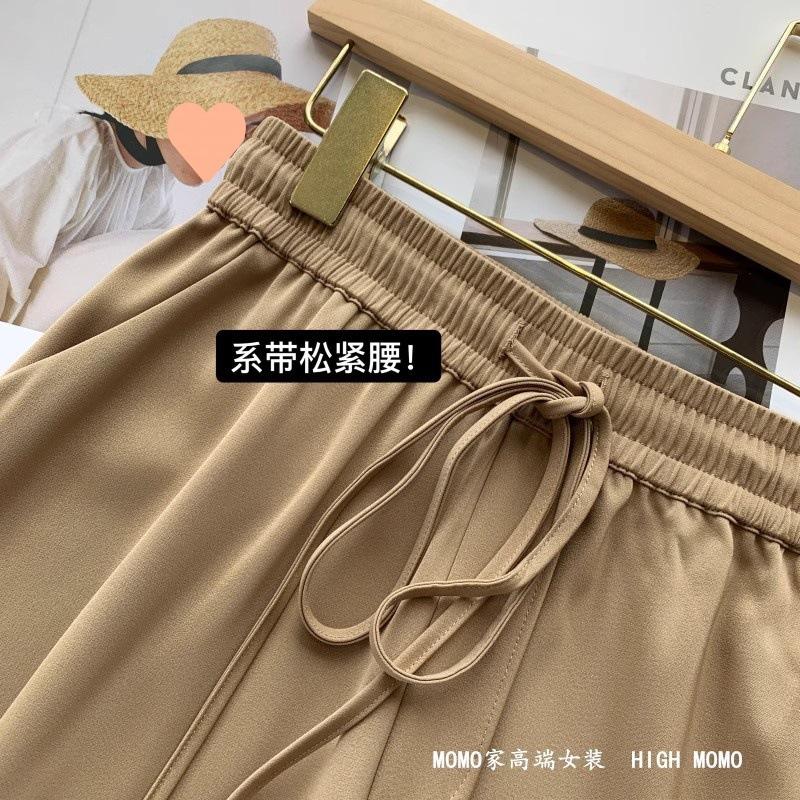 Pantalones anchos informales de talla grande para mujer, novedad de verano, con forma de pera, adelgazantes, holgados, de cintura alta, con cordón ajustable