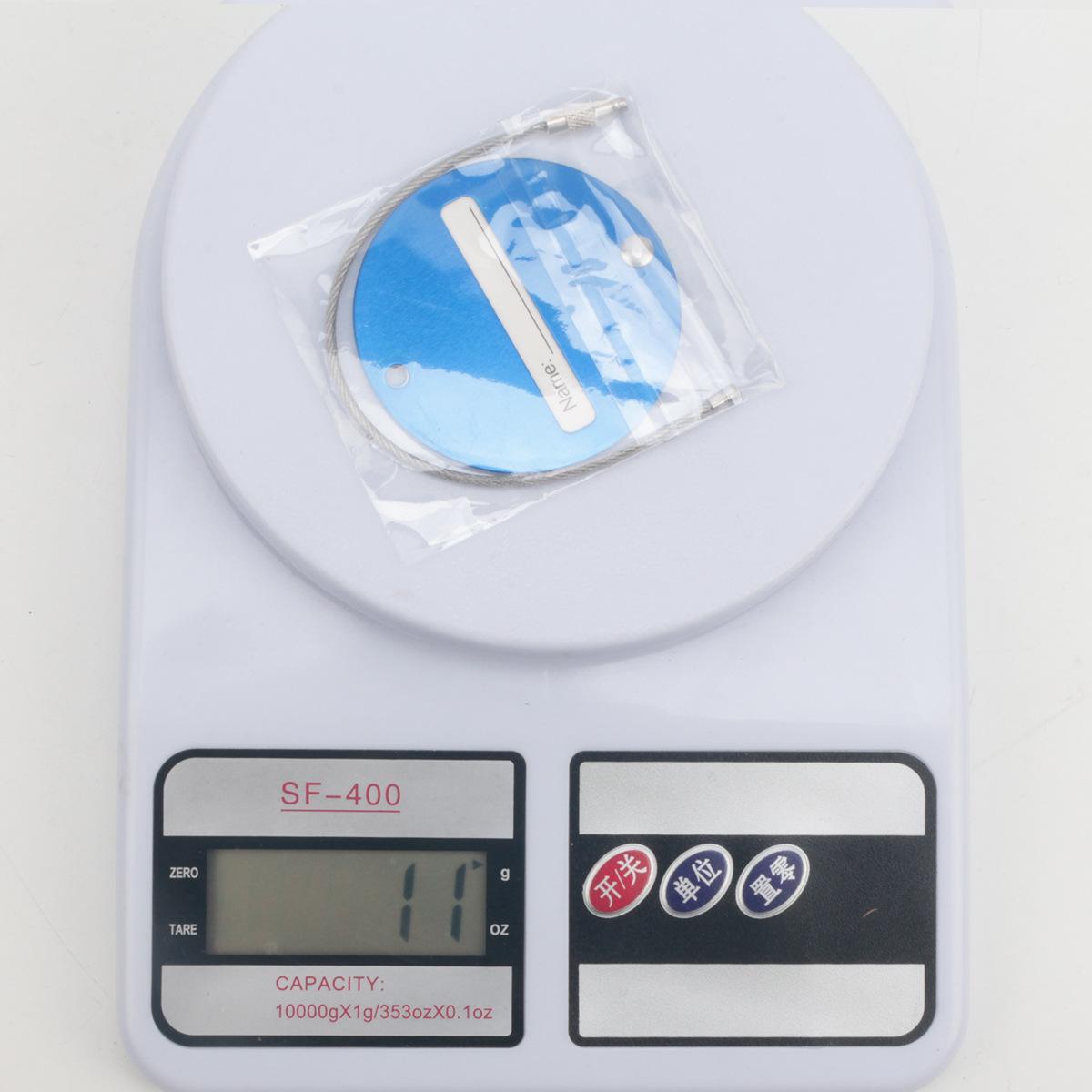 Etiqueta de equipaje redonda de aleación de aluminio Diseño redondo y moderno, conectado por remaches de acero inoxidable, fácil de abrir y cerrar.
