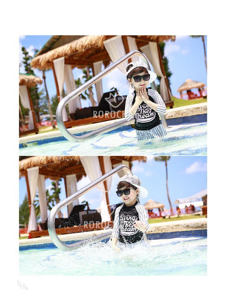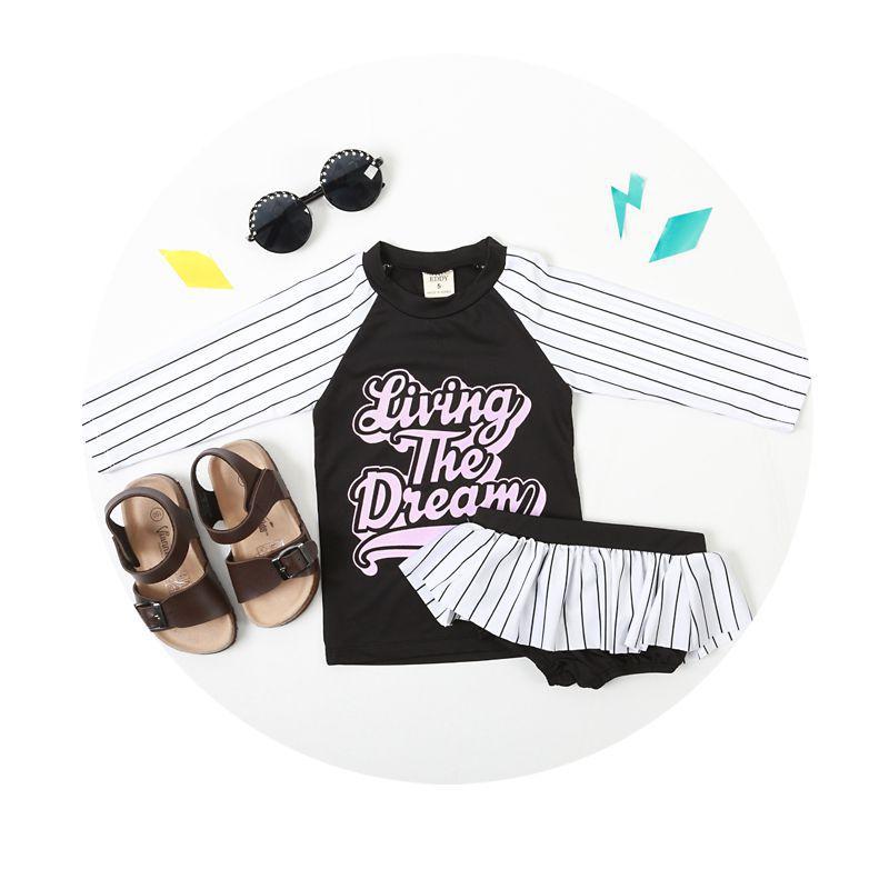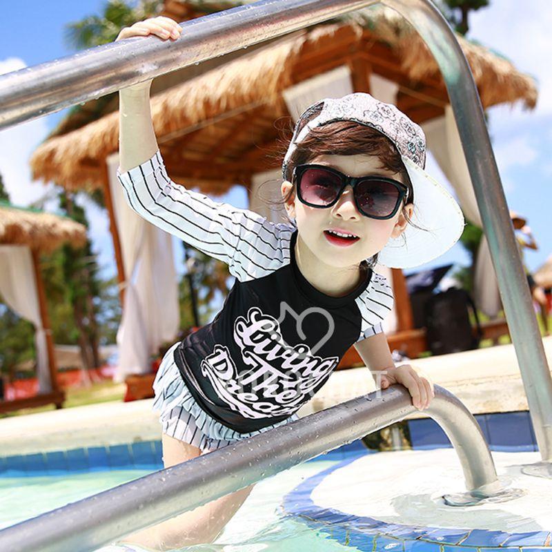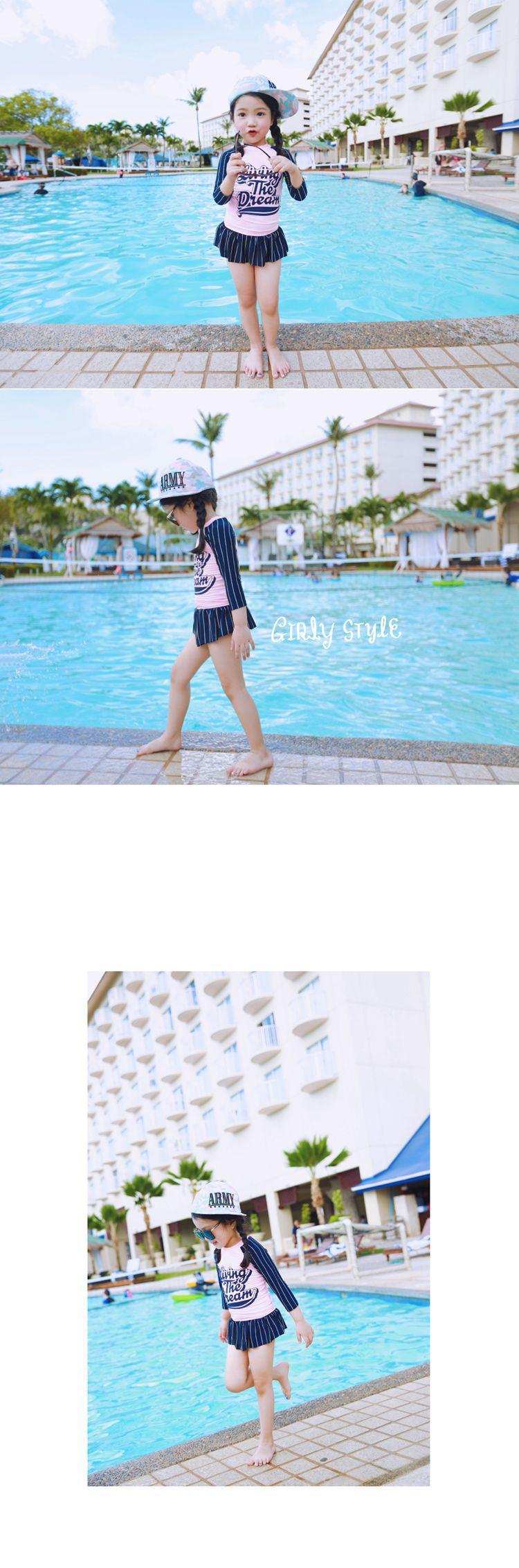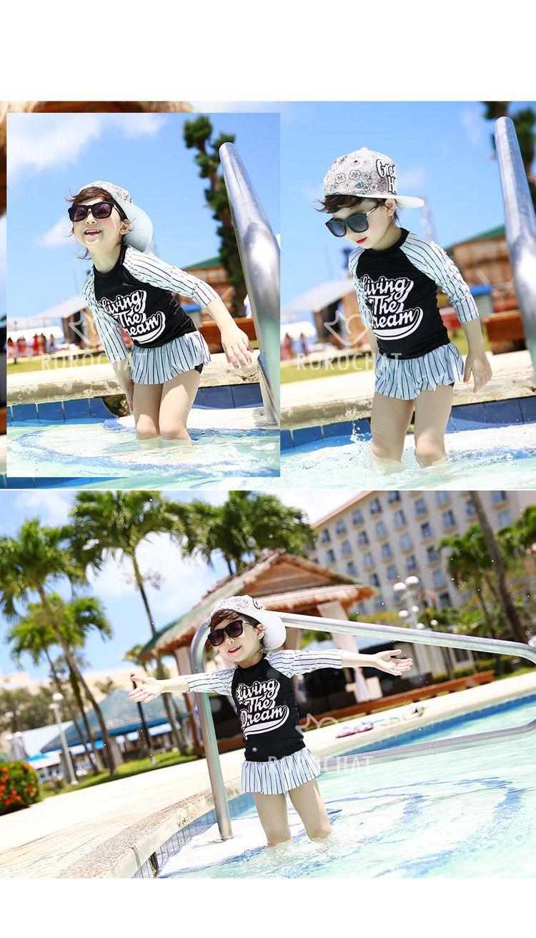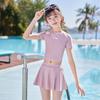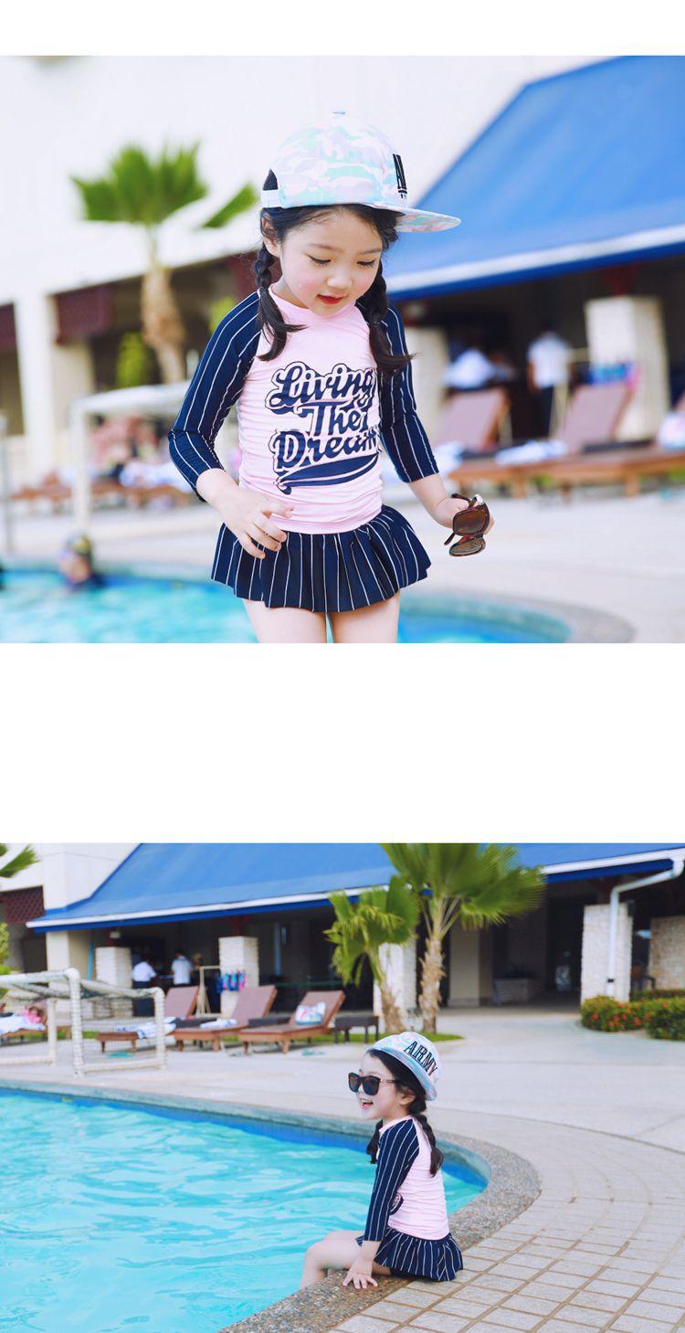 Traje de baño para niña pequeña, falda dividida, manga larga, protección solar, lindo traje de baño de princesa estudiante para niña bebé