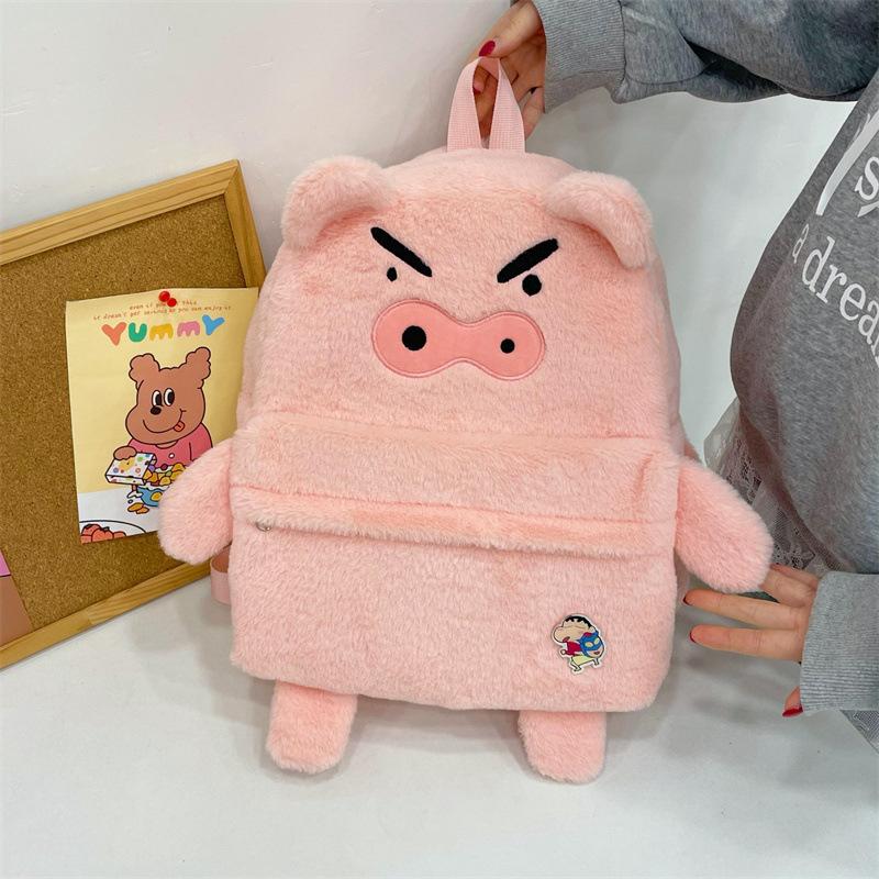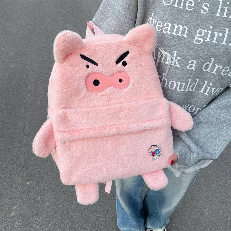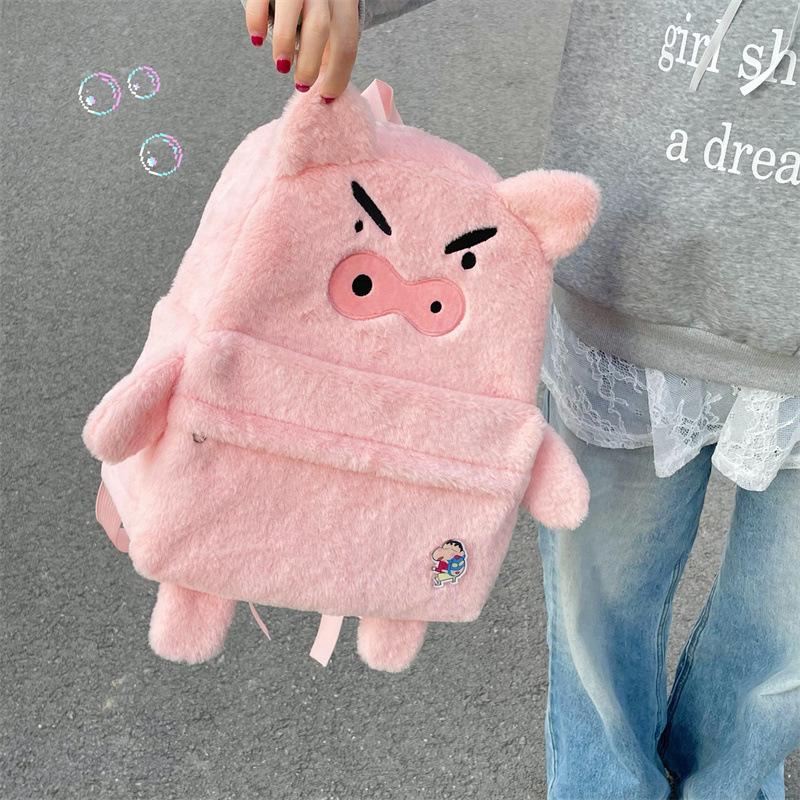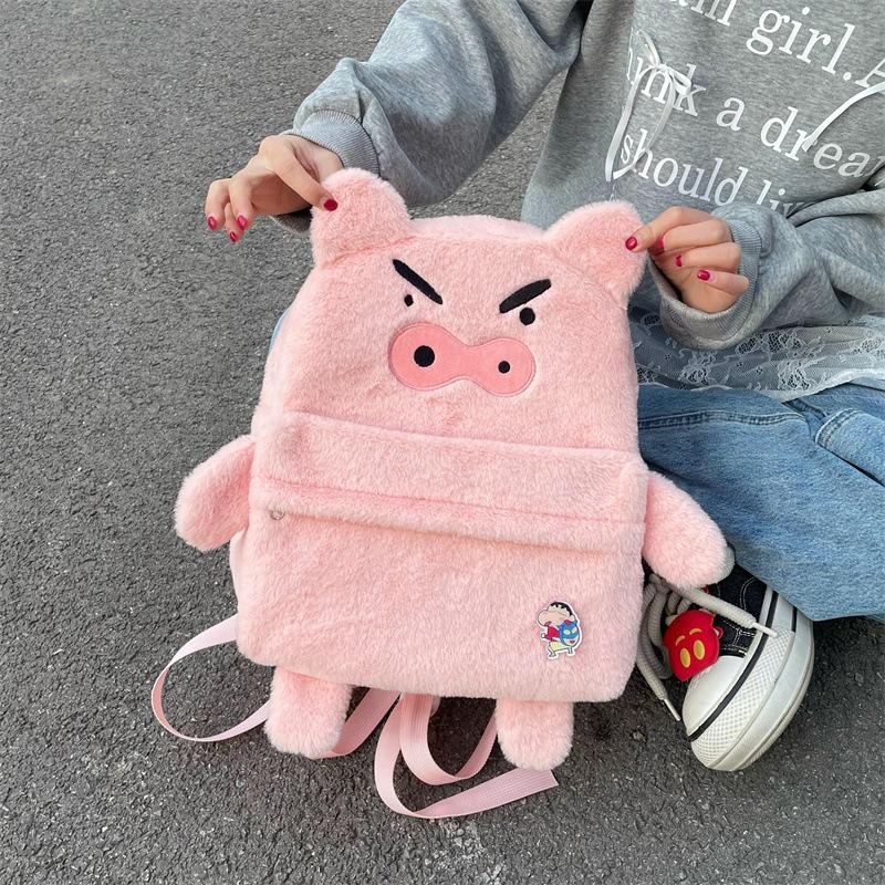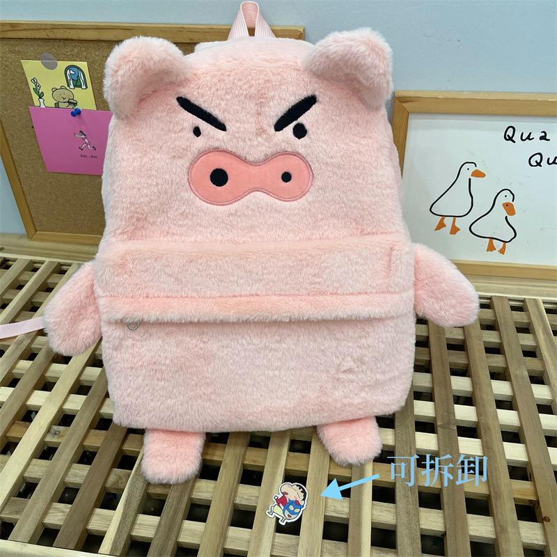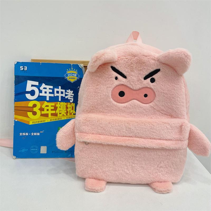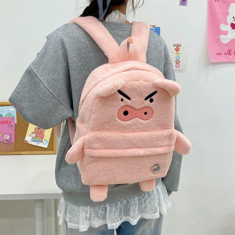 Mochila de peluche de cerdito rosa para mujer, bonita mochila de estudiante de otoño e invierno, peluda y combinable.