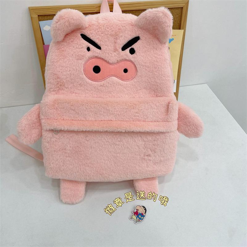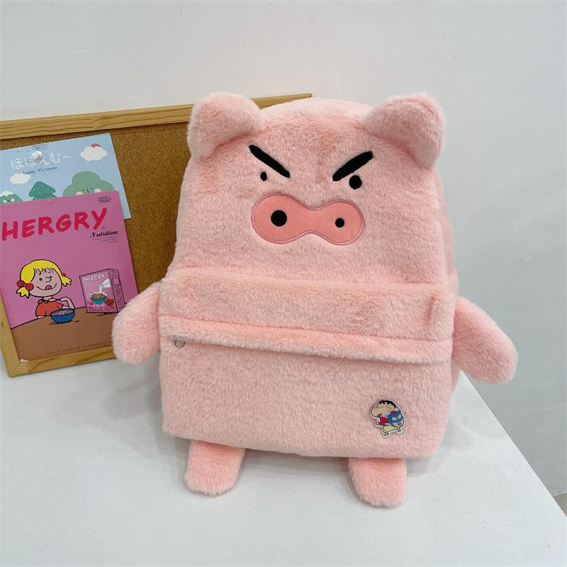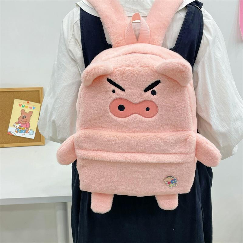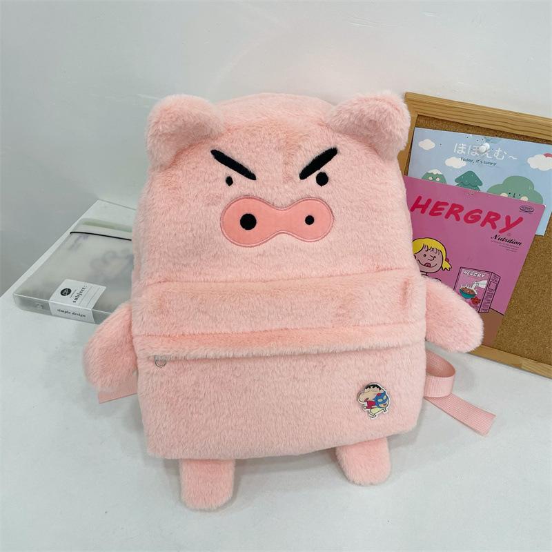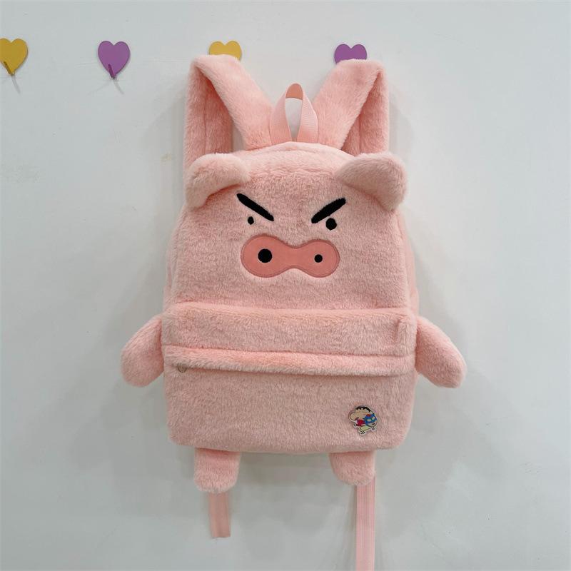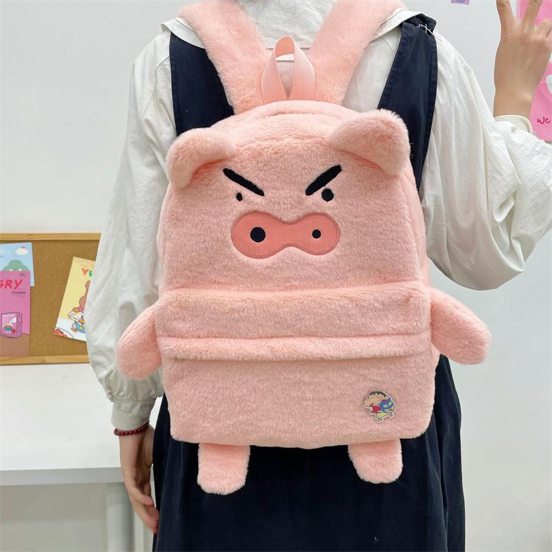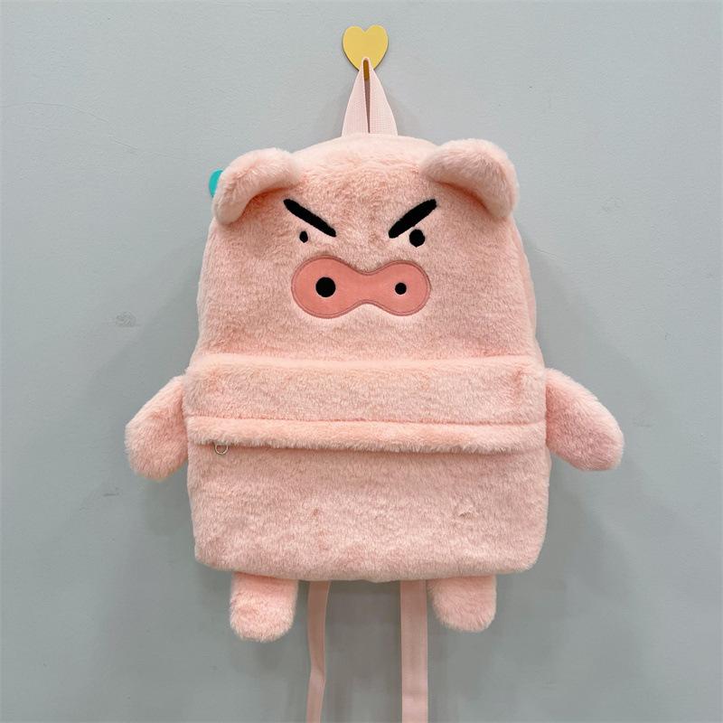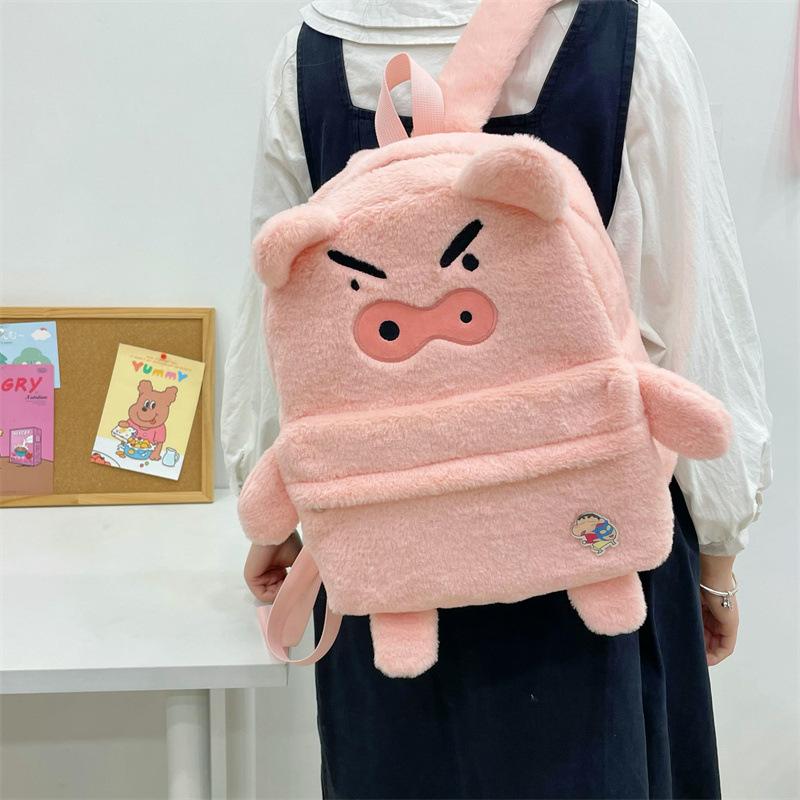 Mochila de peluche de cerdito rosa para mujer, bonita mochila de estudiante de otoño e invierno, peluda y combinable.