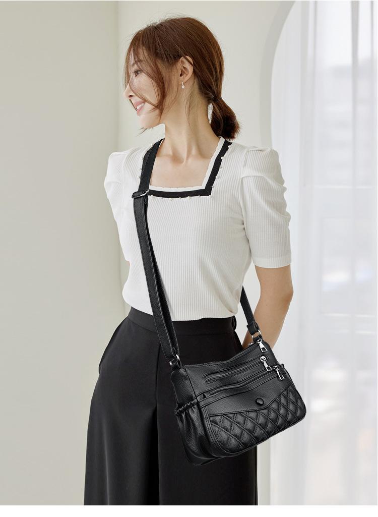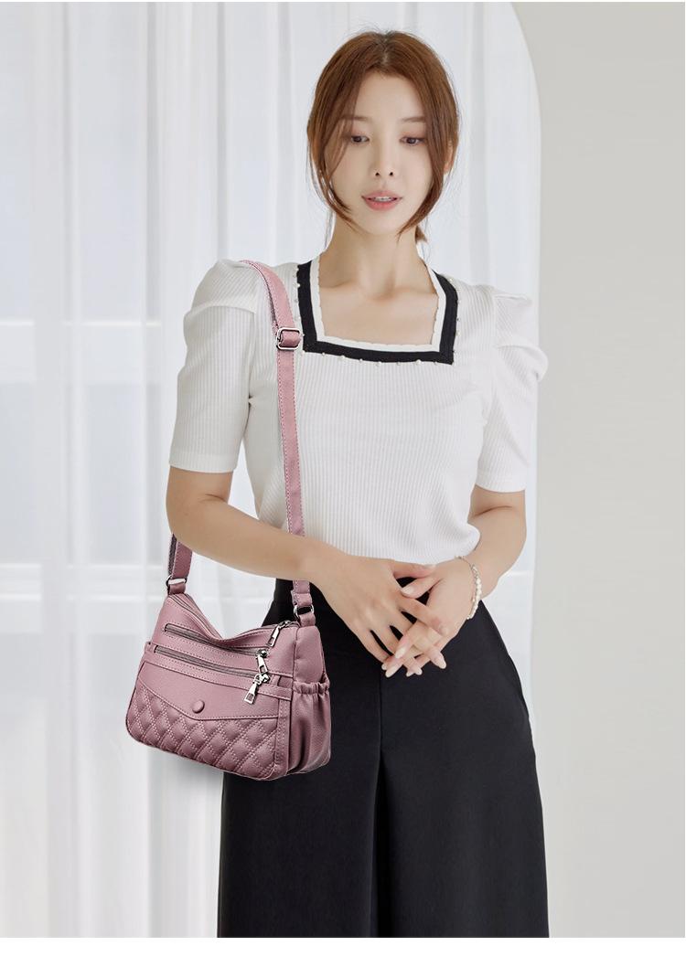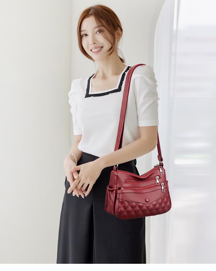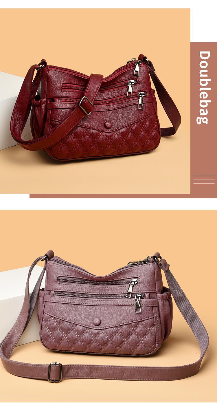 Bolso Romboidal Multicapa para Mujer 2024 Nuevo Bolso Cruzado de Cuero Suave a la Moda Bolso Elegante de Hombro para Mamás