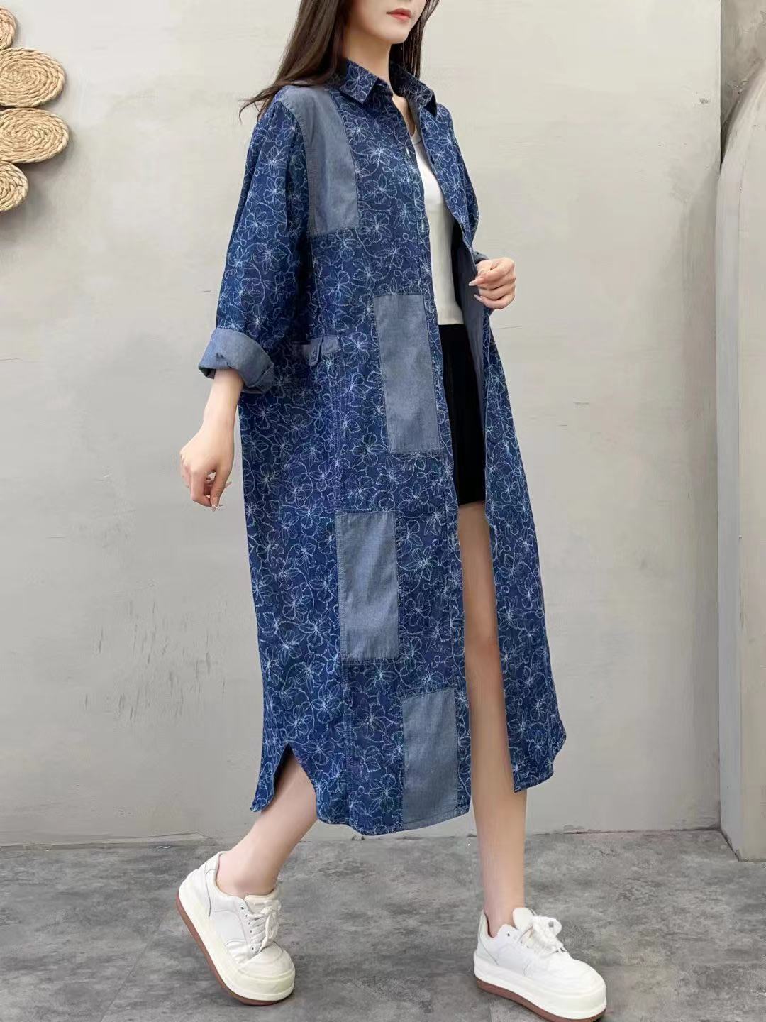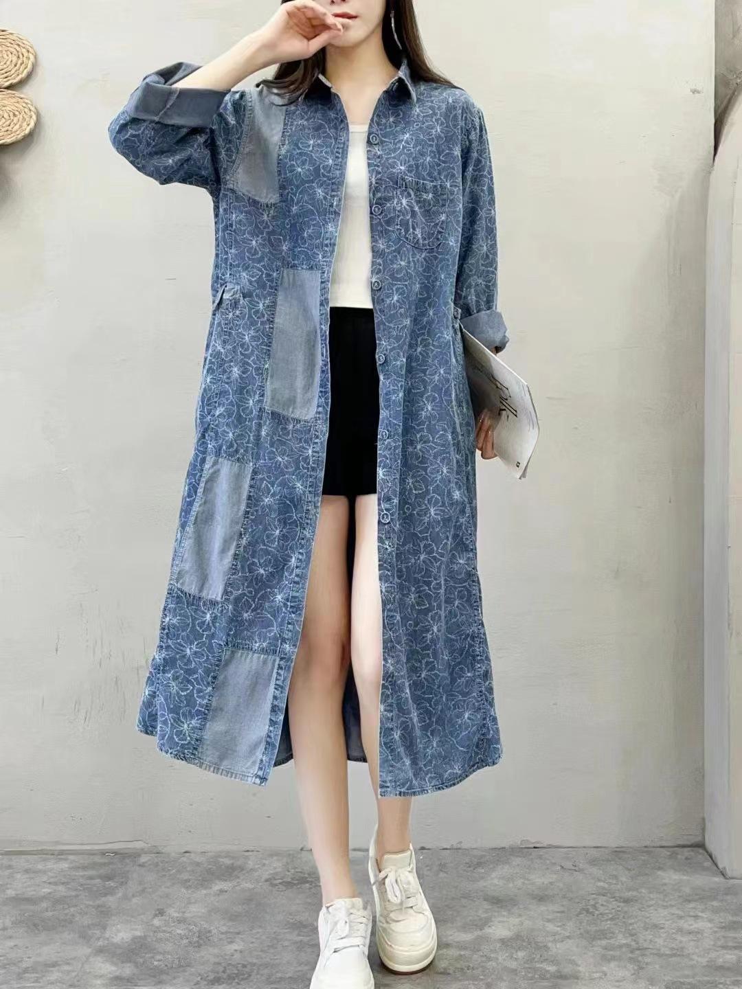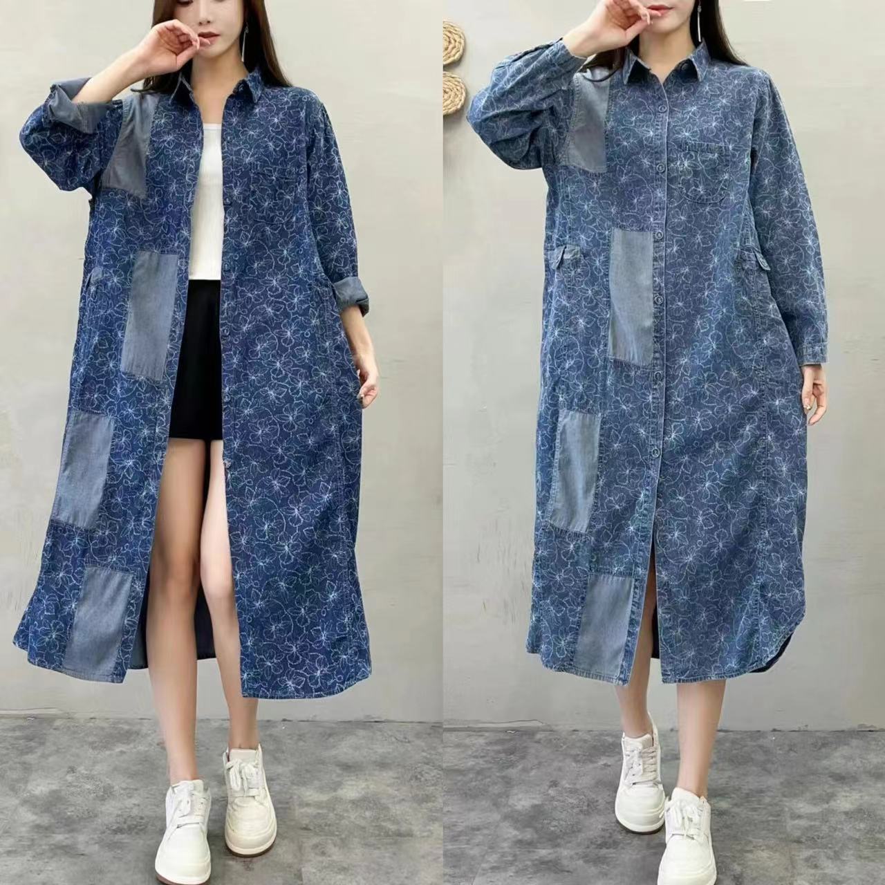 Gabardina holgada de longitud media para mujer, nueva prenda de primavera con estampado adelgazante, cárdigan de manga larga de talla grande, reductor de edad